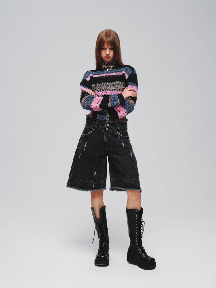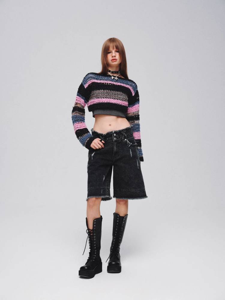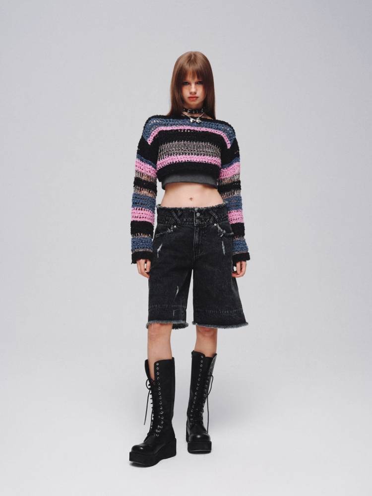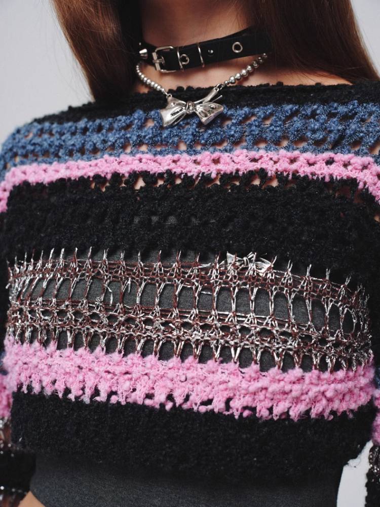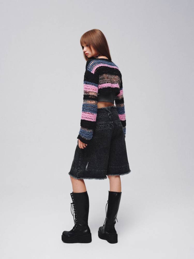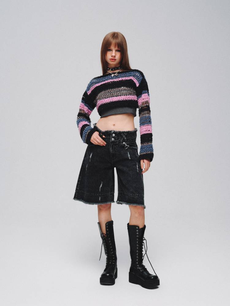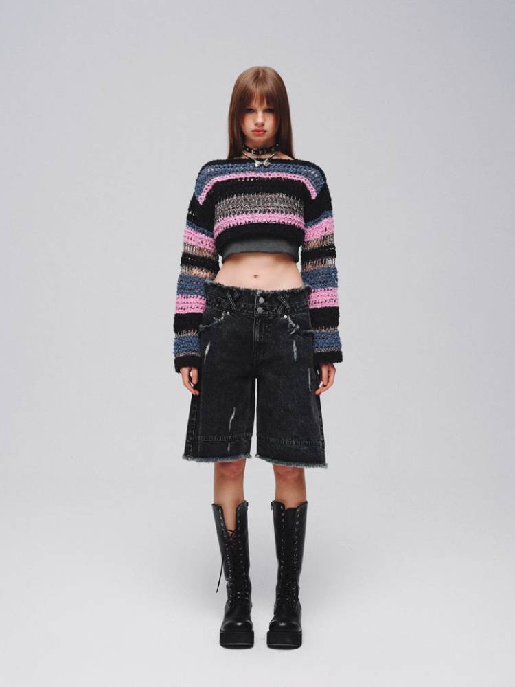 Mixed color striped short sweater【s0000008380】