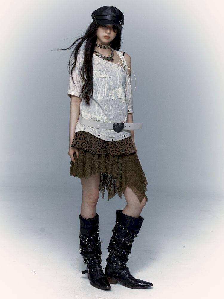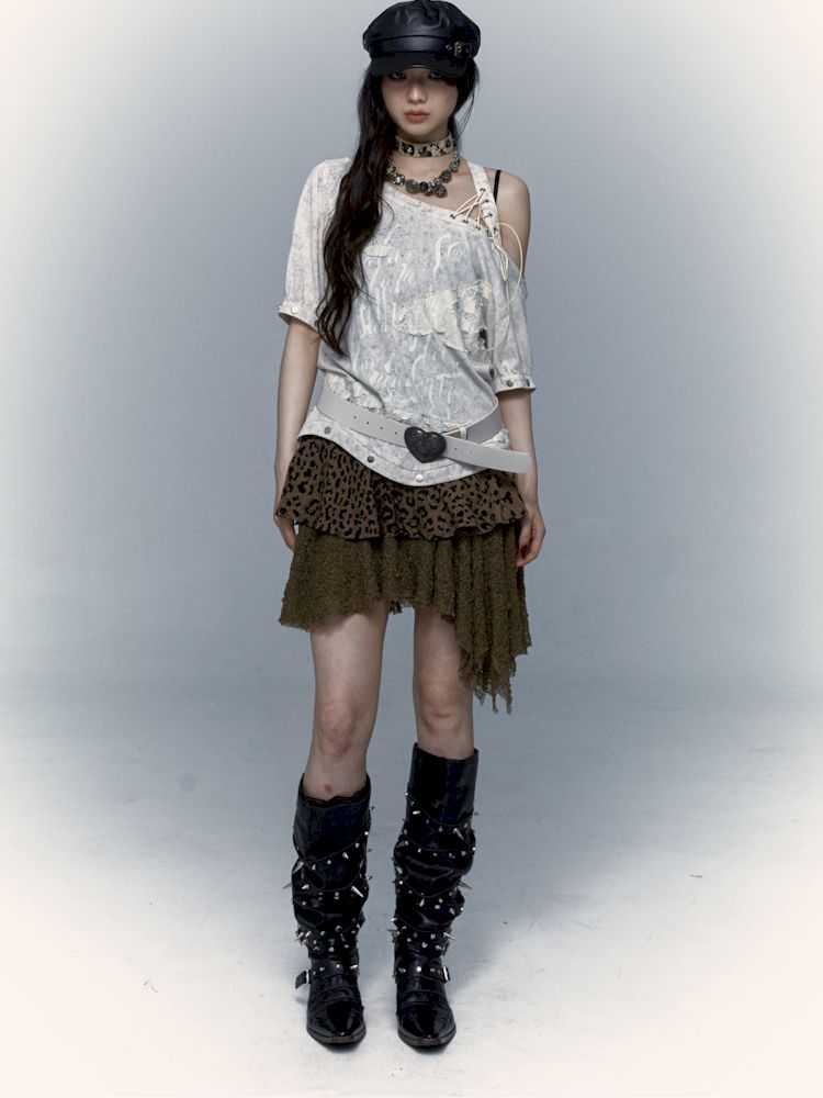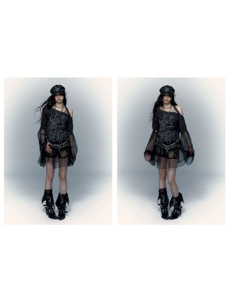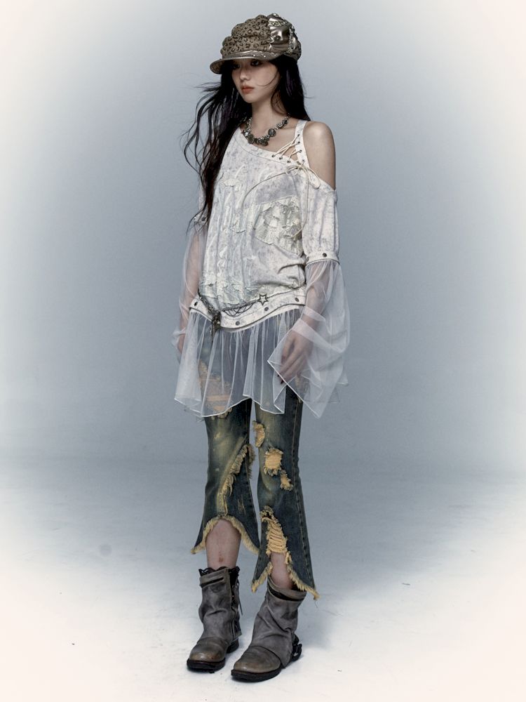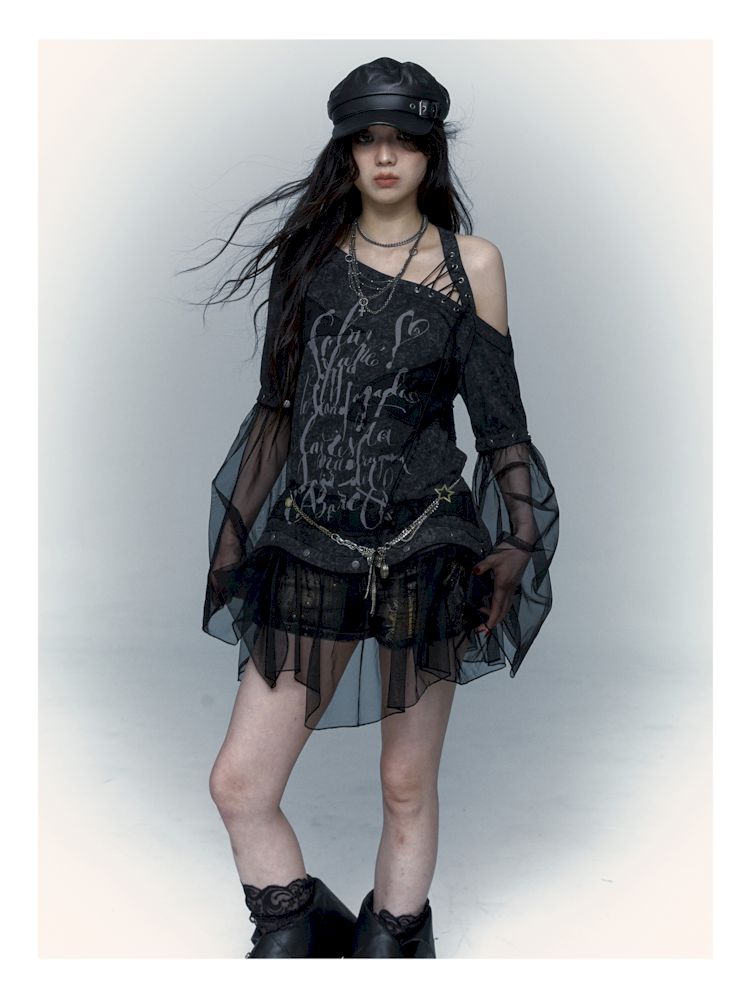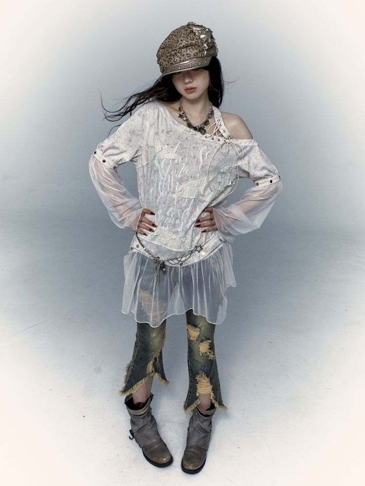 Spliced Mesh Removable Sleeve Strapless T-Shirt【s0000008399】
