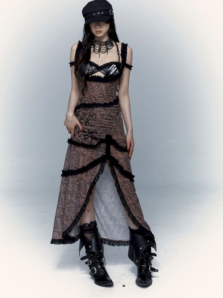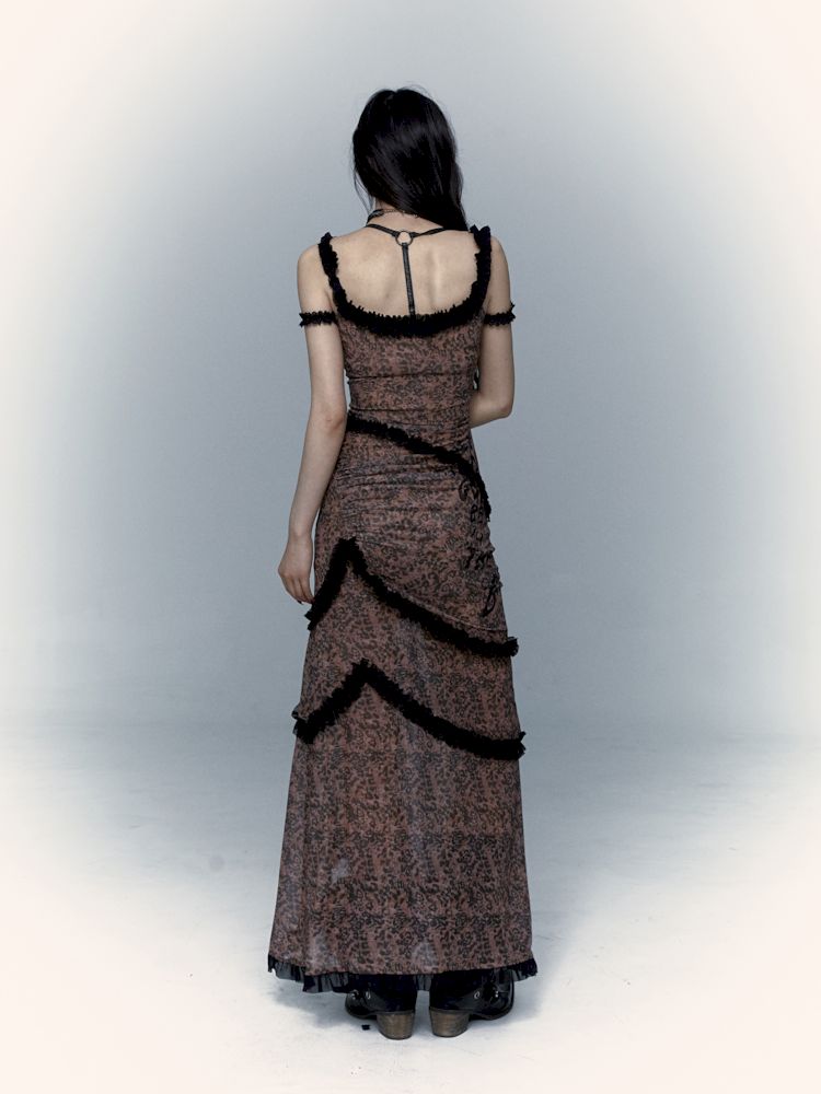 Street Rock Reversible Slim Leopard Mesh Long Dress【s0000008403】