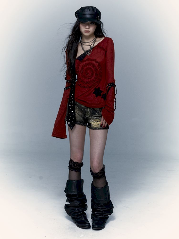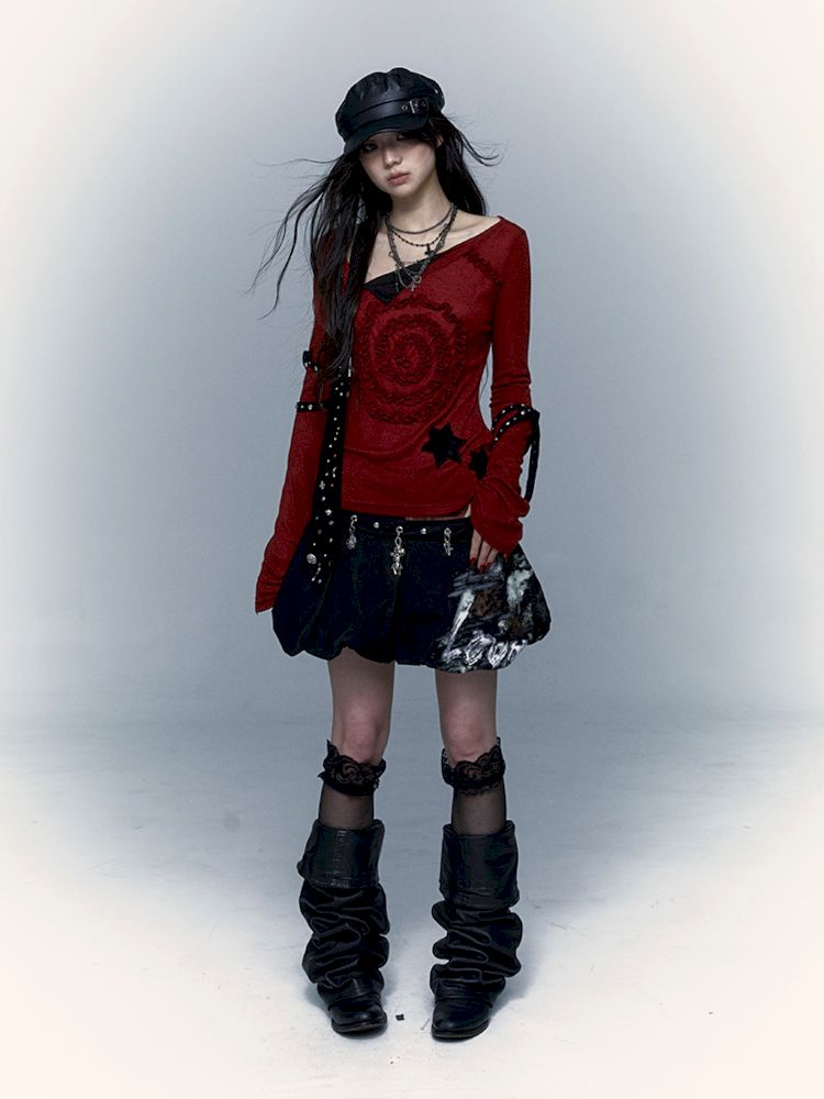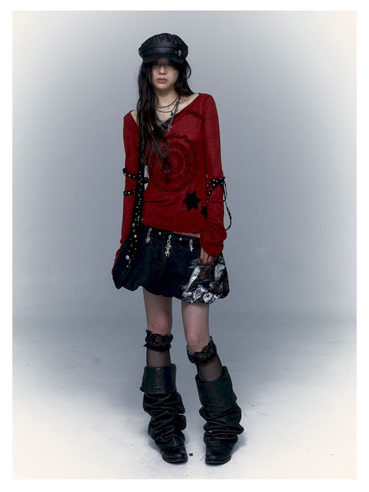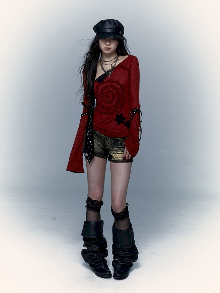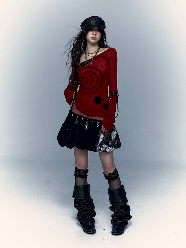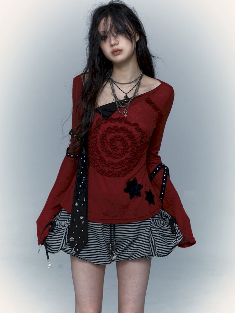 Drawstring Flared Sleeve Knit Top【s0000008407】