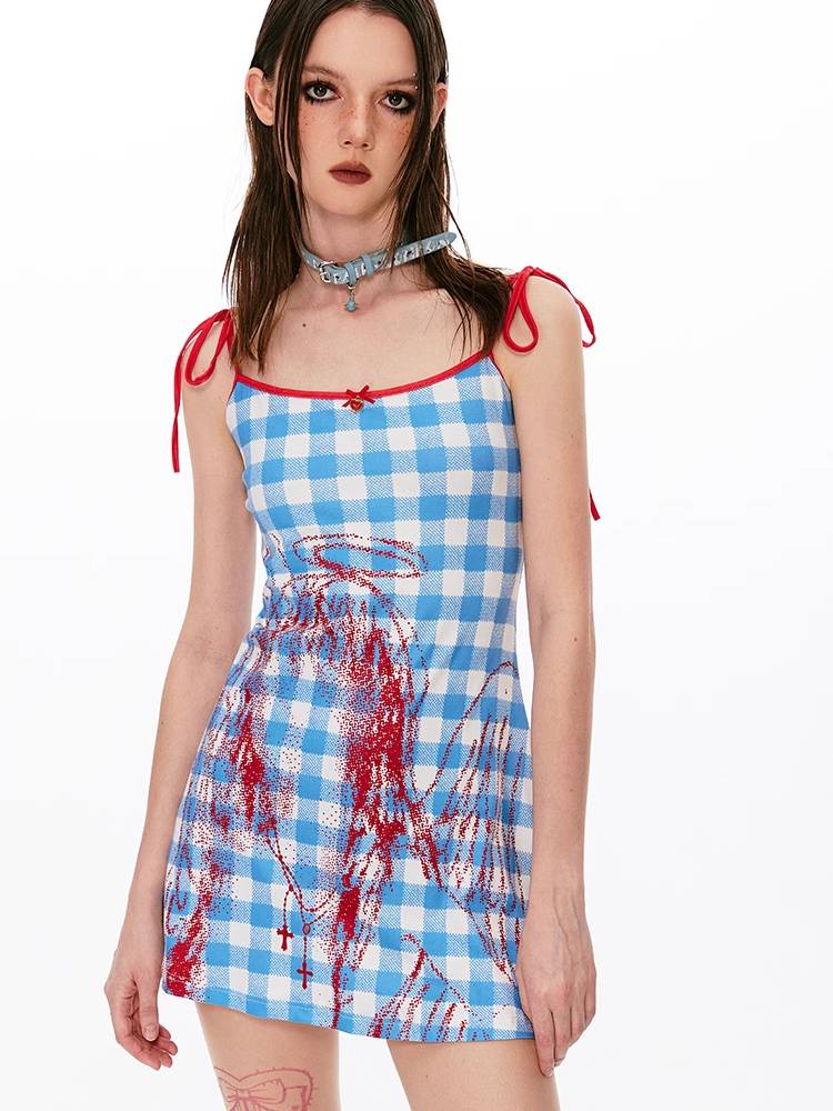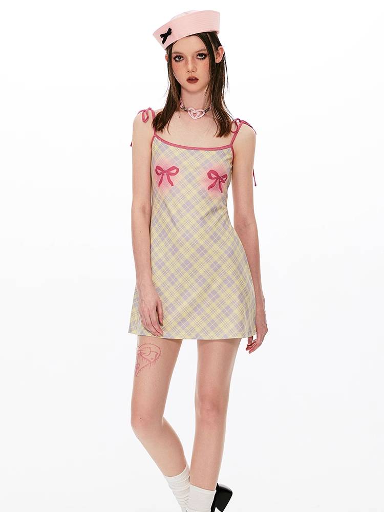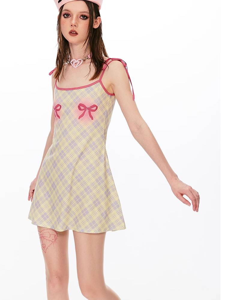 Plaid trap waist dress【s0000008431】