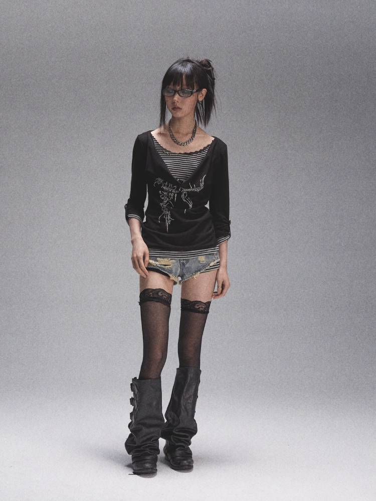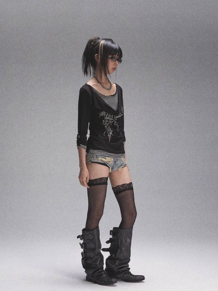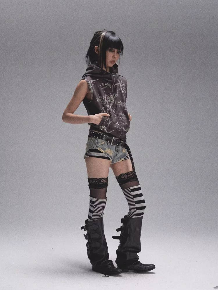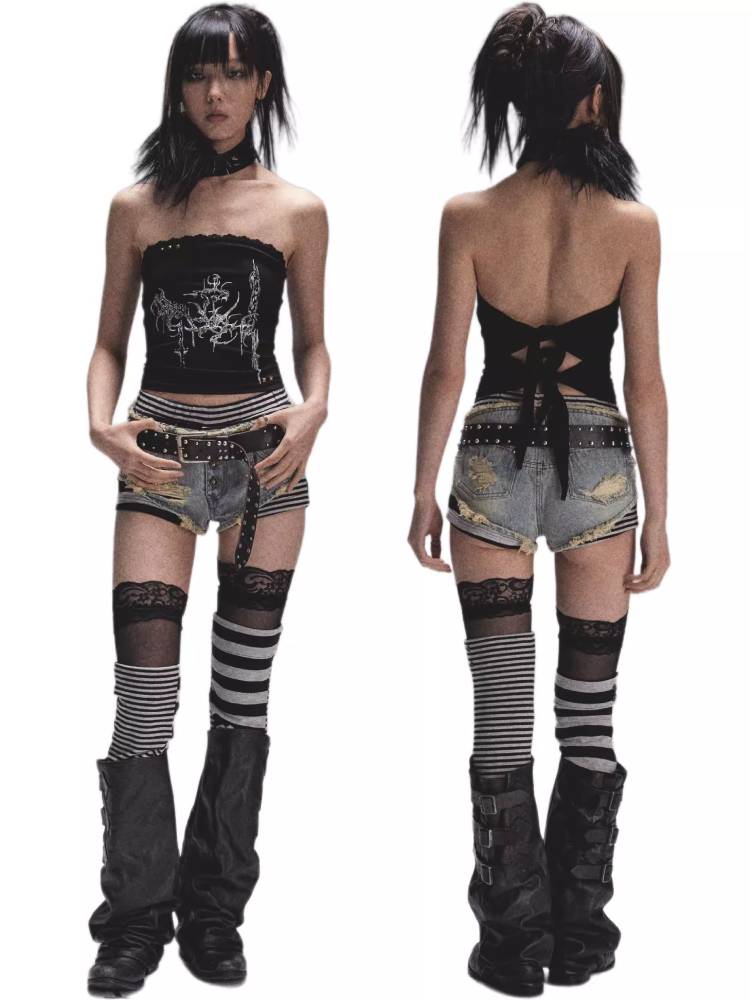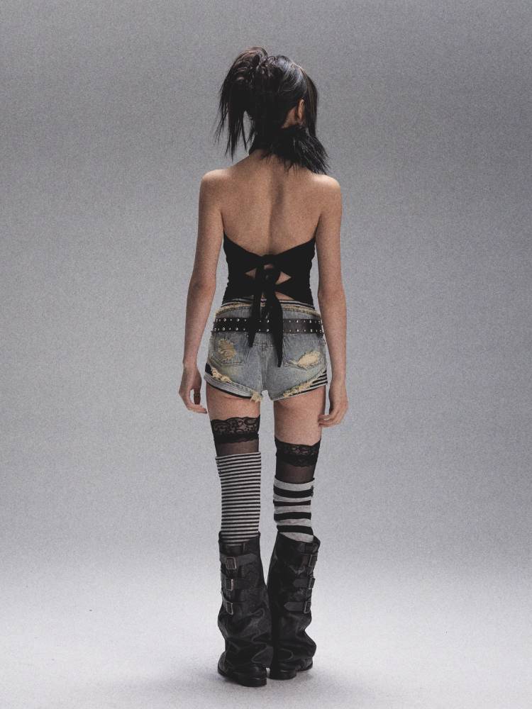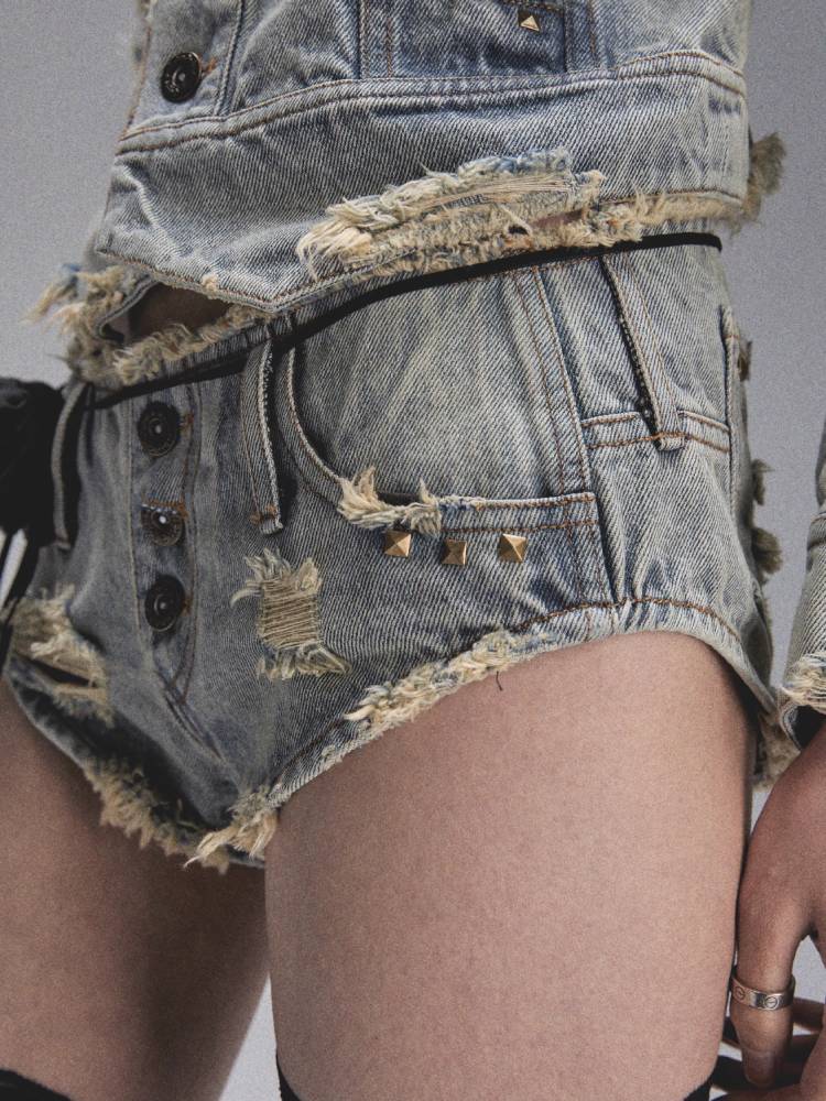 Distressed denim shorts【s0000008447】