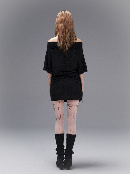Bat Short Sleeve One Neck Top Dress【s0000008462】