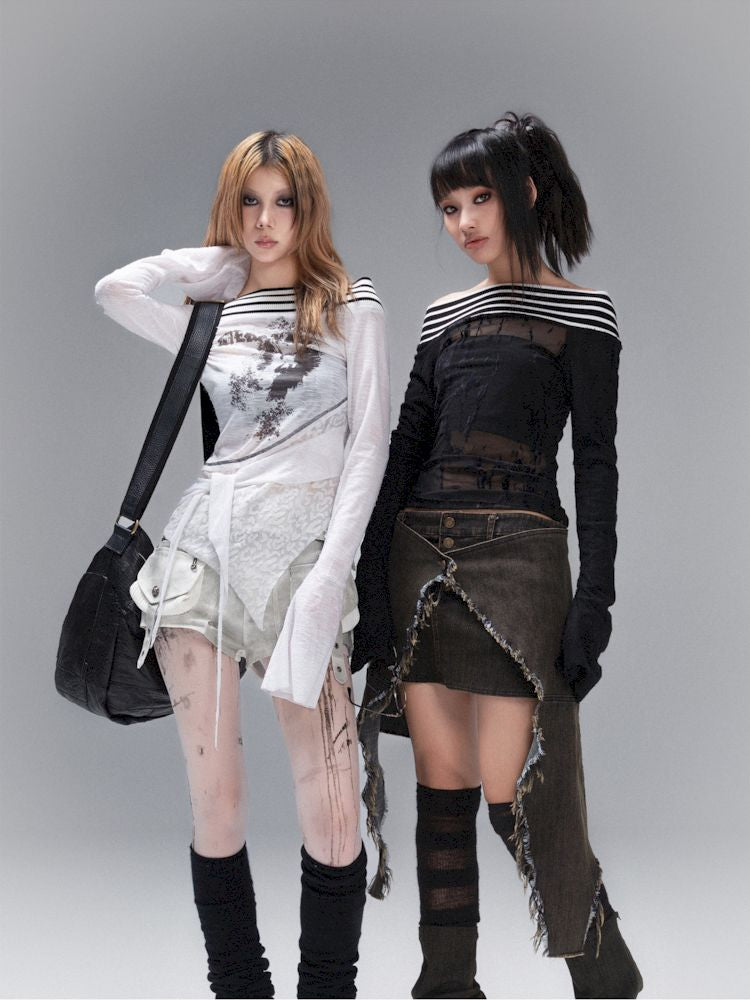 Long Sleeve Two Wear One Strapless Top【s0000008463】