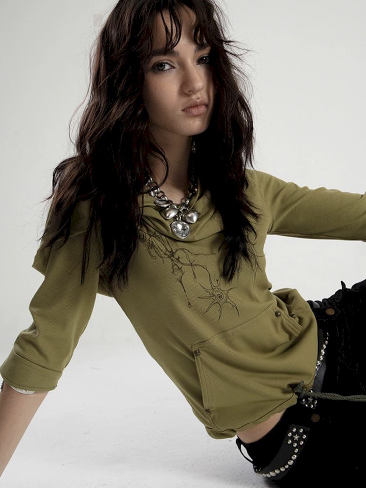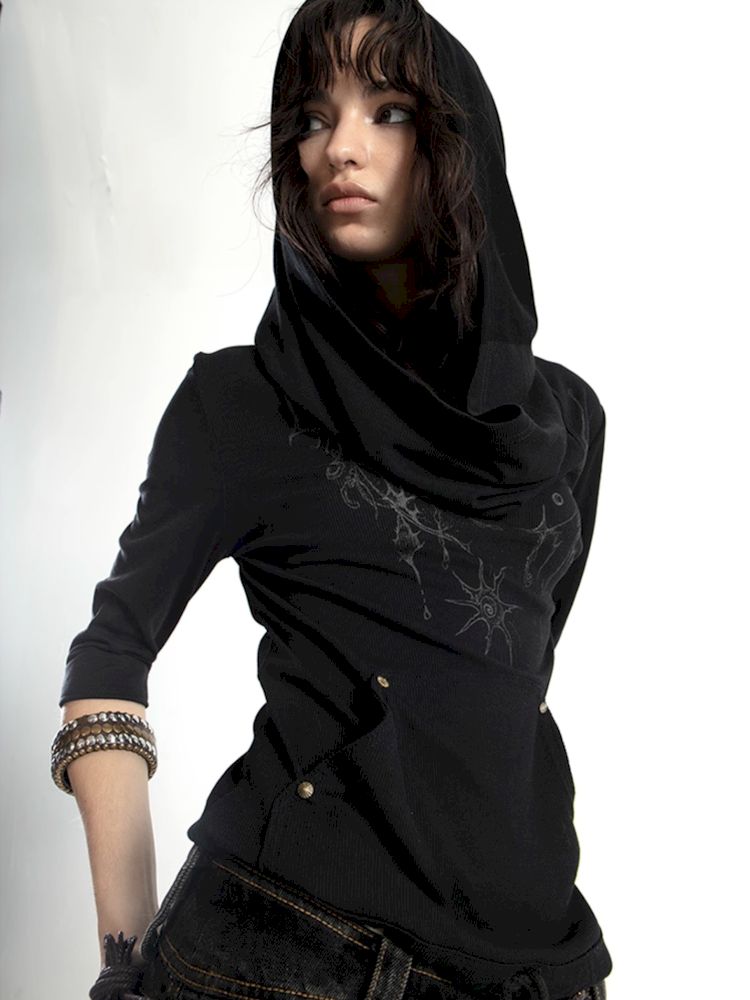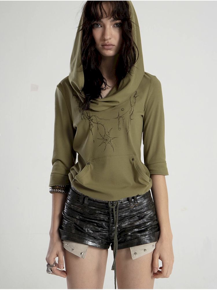 Hooded Mid Sleeve Hand Painted Mystic Sea Shell Print T-Shirt【s0000008476】