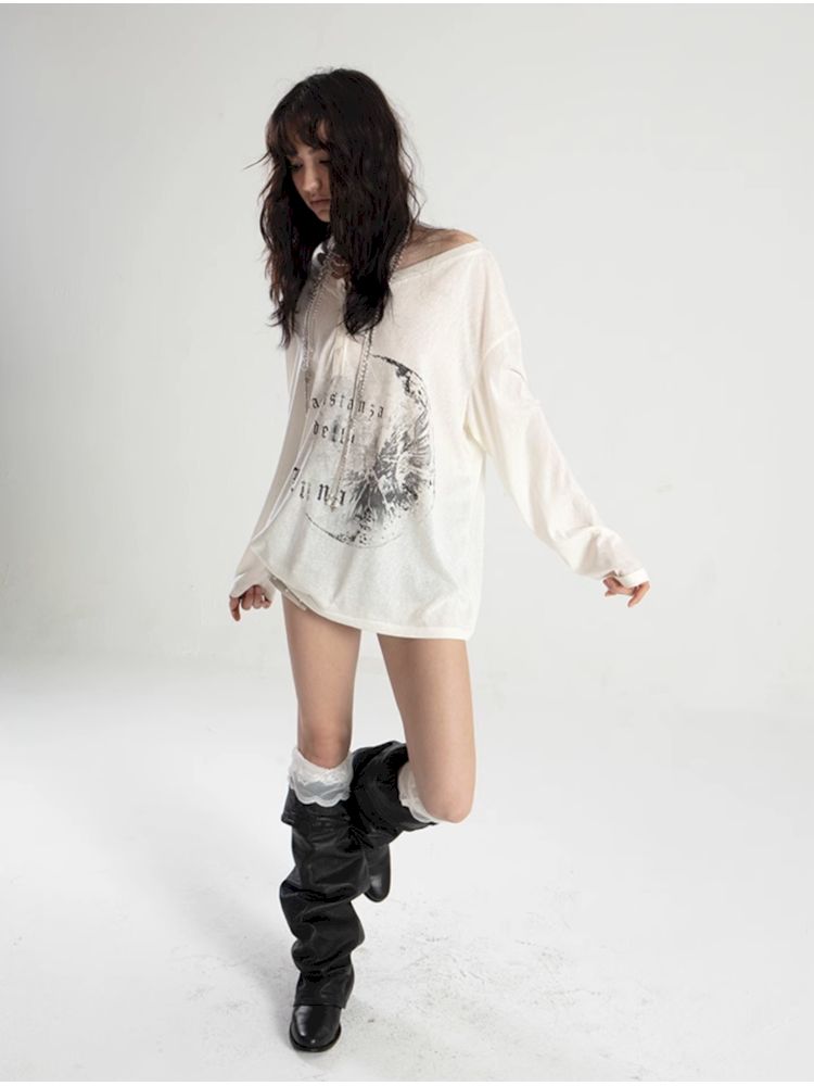 Loose Asymmetric Neckline T-Shirt【s0000008481】
