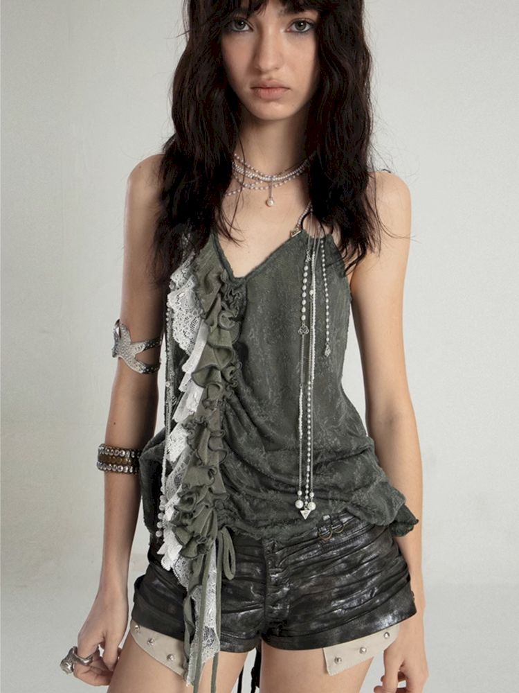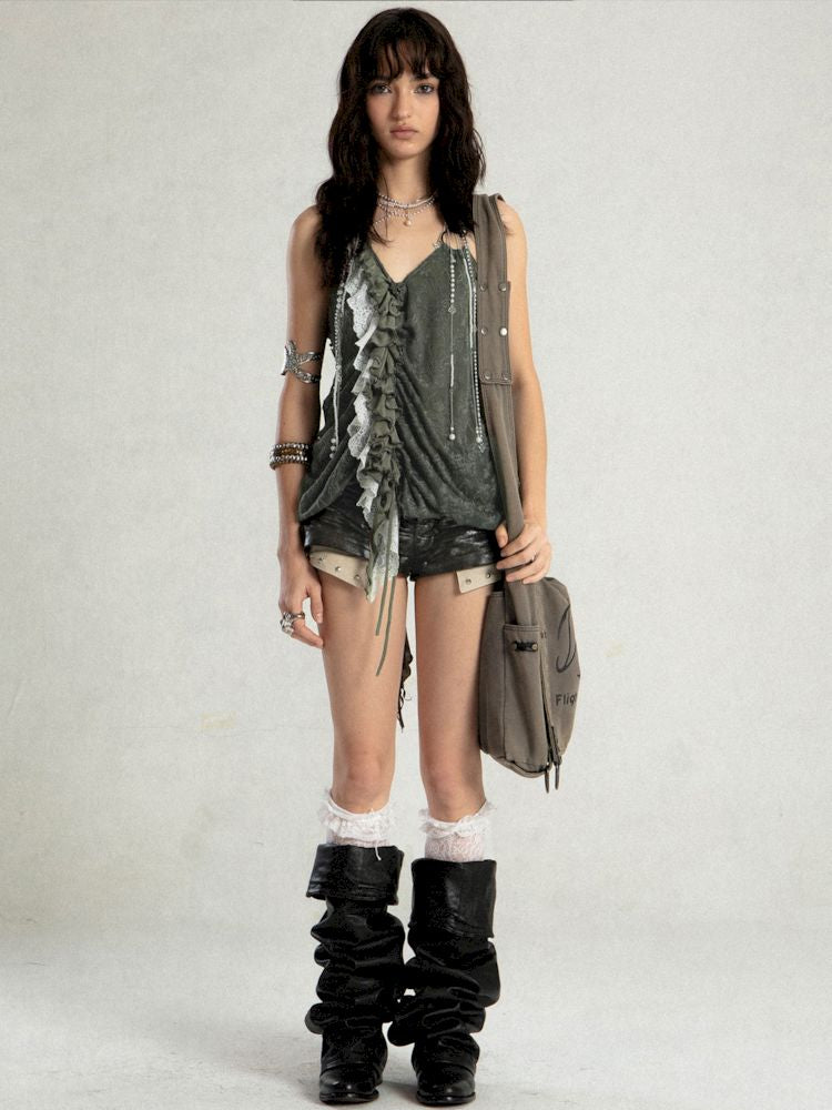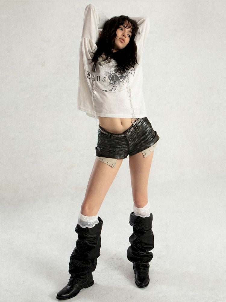Drill Button Pleated Hottie Low Rise Shorts【s0000008483】