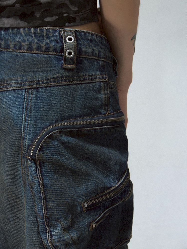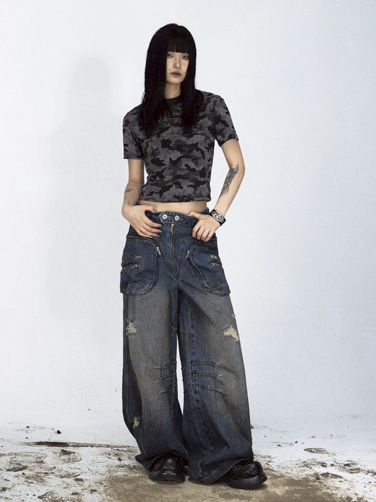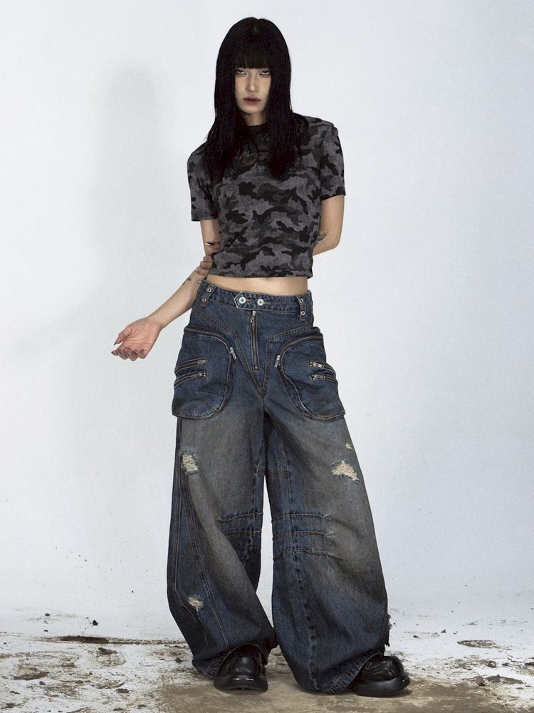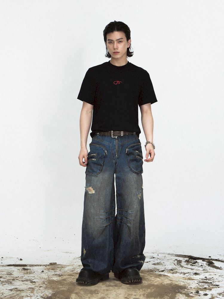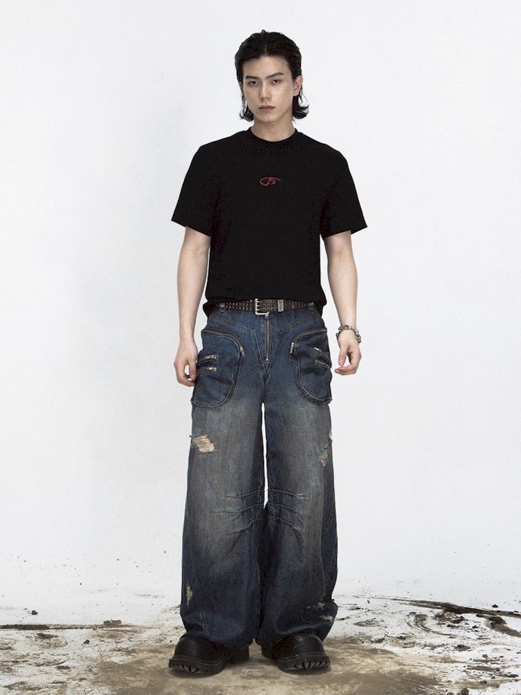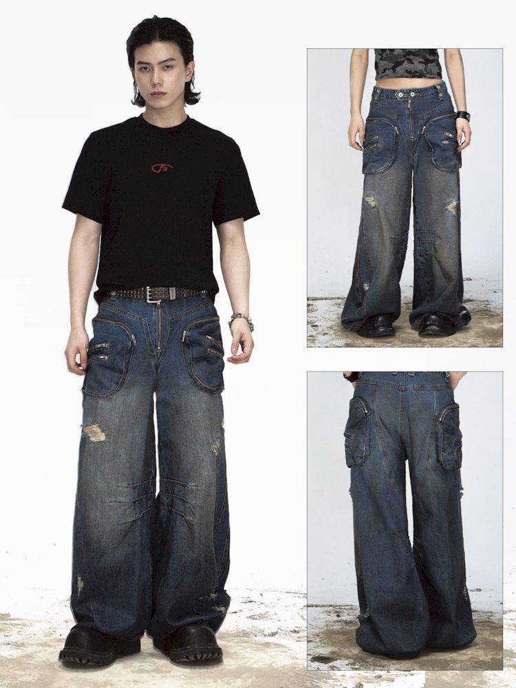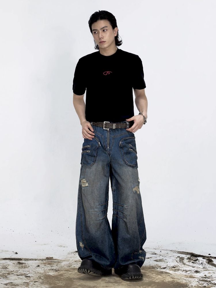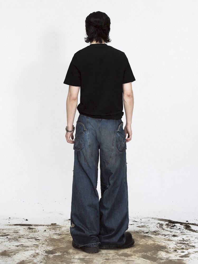 Shaped Structure Stain Brushed Colour Ripped Jeans【s0000008485】