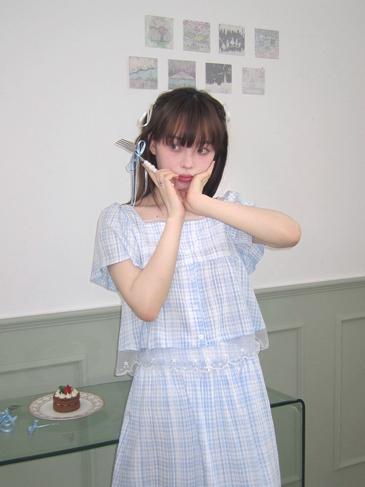 Ruffle sleeve short sleeve shirt and sweet skirt【s0000008544】