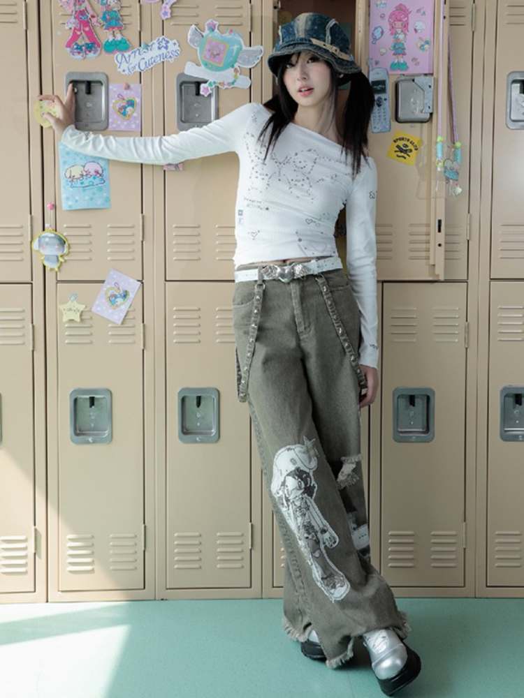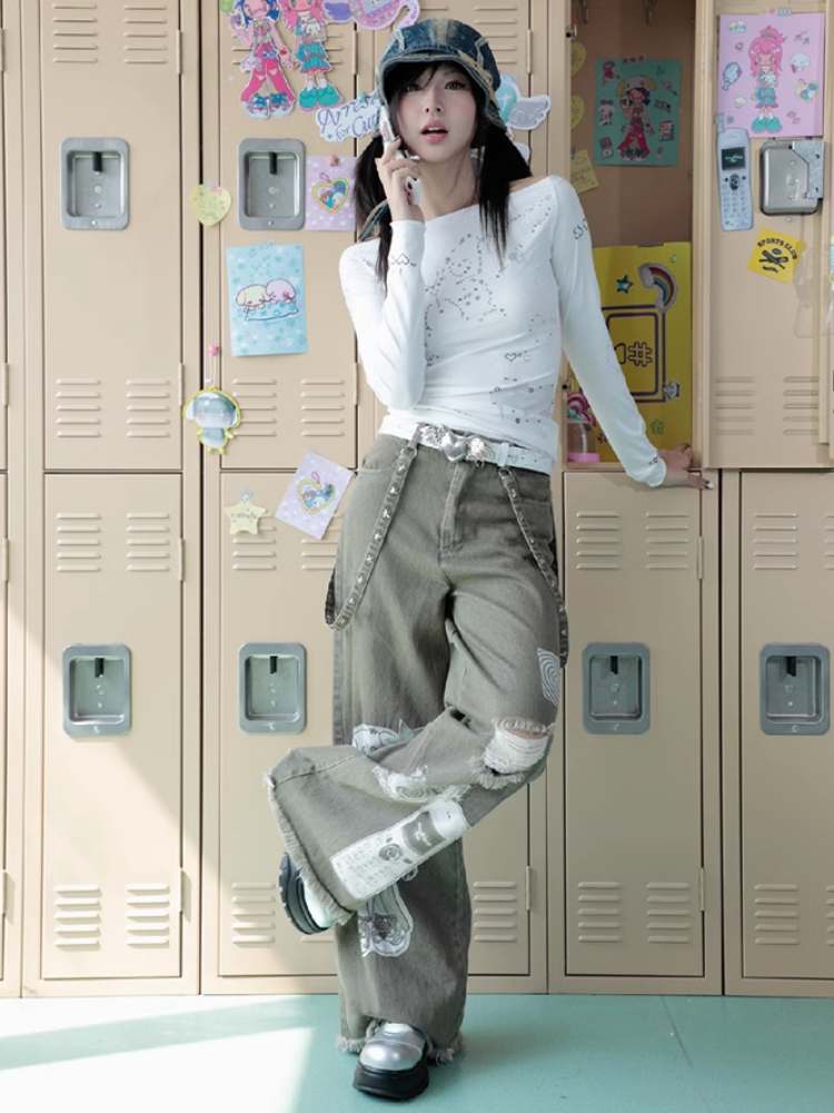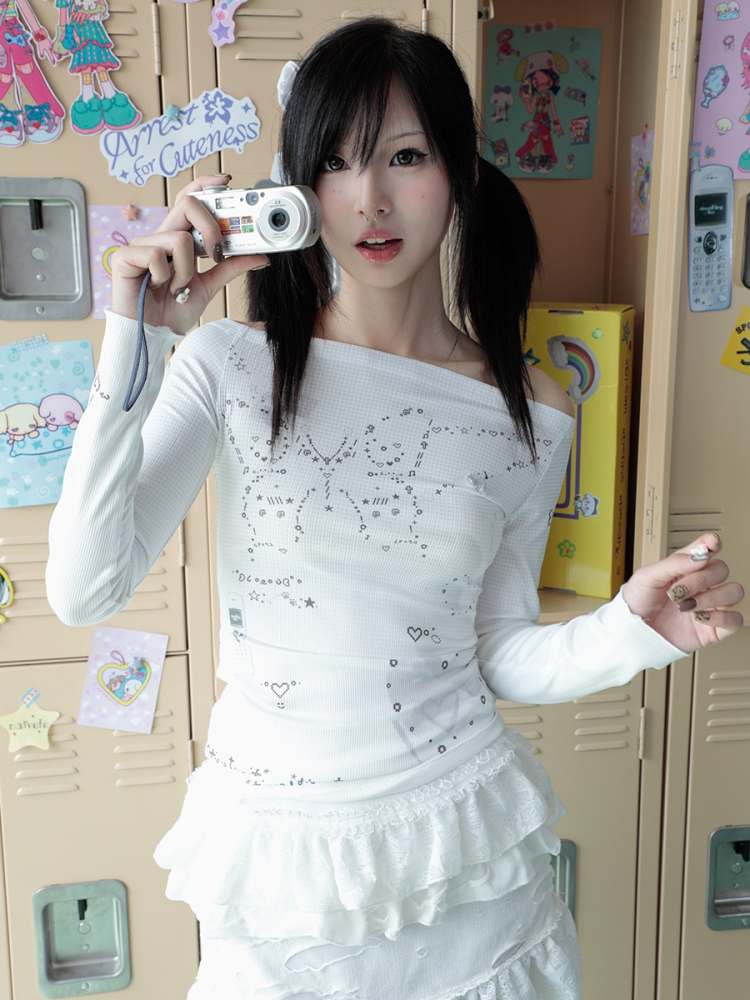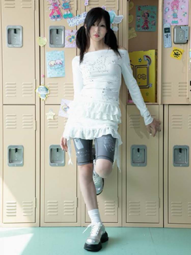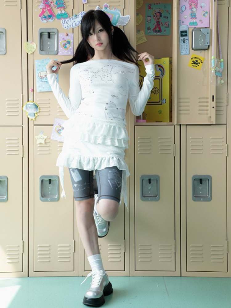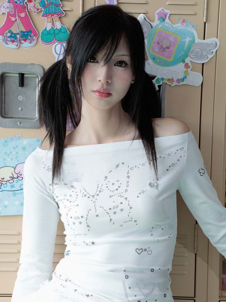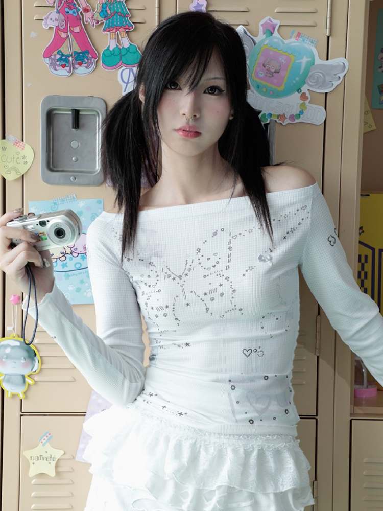 Y2K Sweet Spicy Butterfly Off Shoulder Long Sleeve Tee【s0000008548】