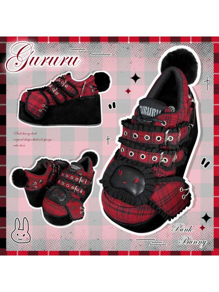 Y2K Black Rabbit Plaid Platform Shoes【s0000008557】