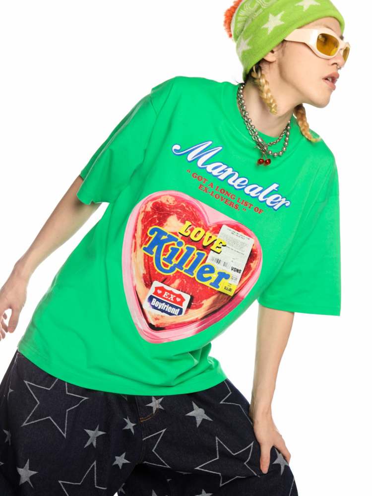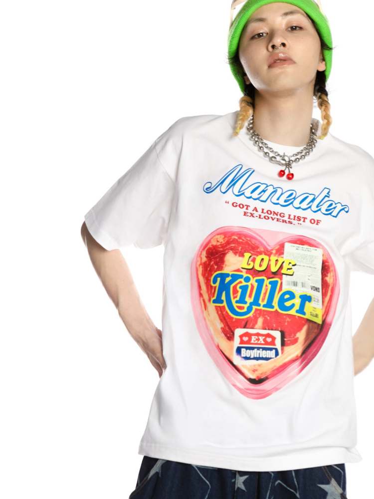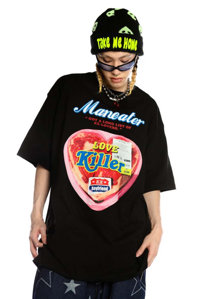 Niche Love Killer Print Short Sleeve Over Size T-Shirt【s0000008560】