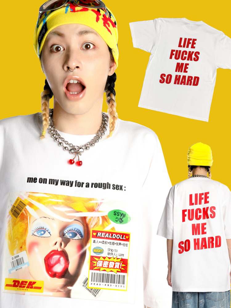 “Life Fucks Me So Hard" Culture Over Size Short Sleeve T-Shirt【s0000008564】