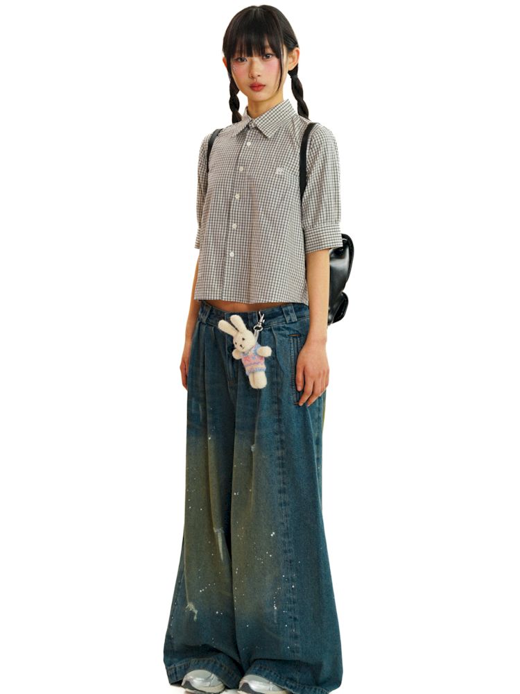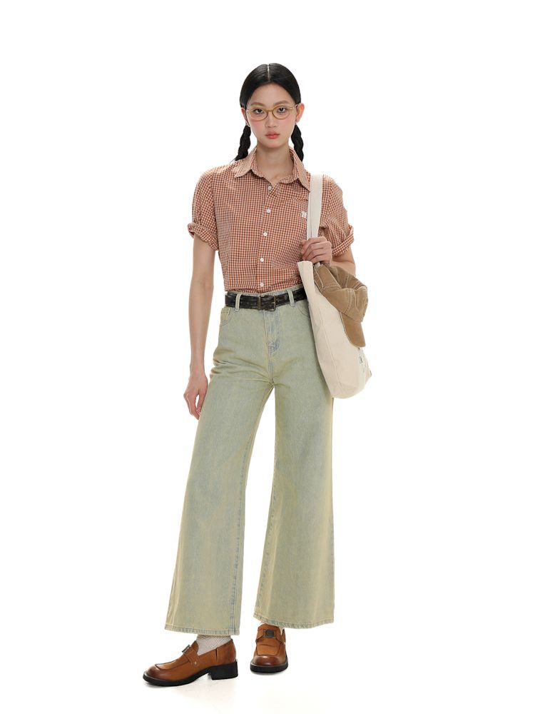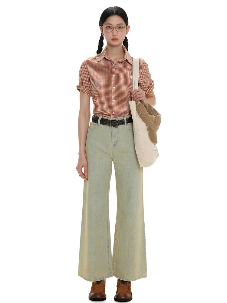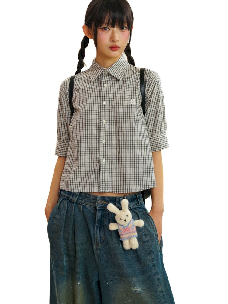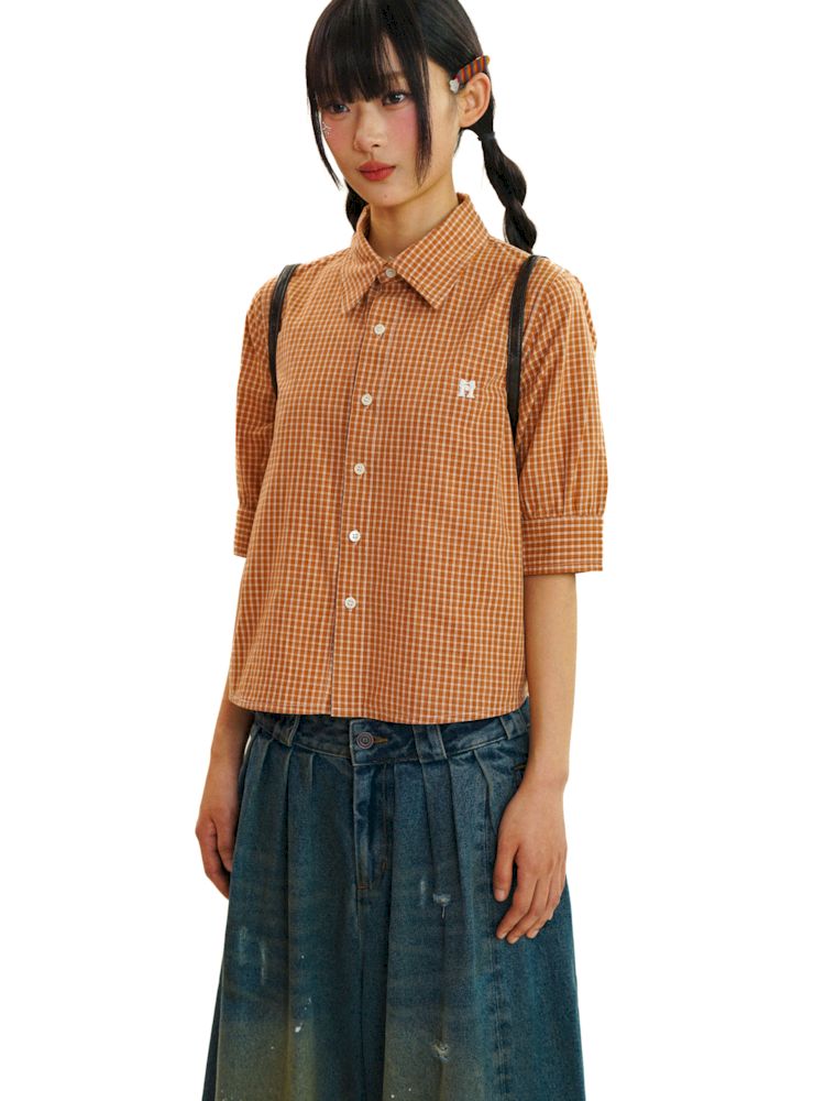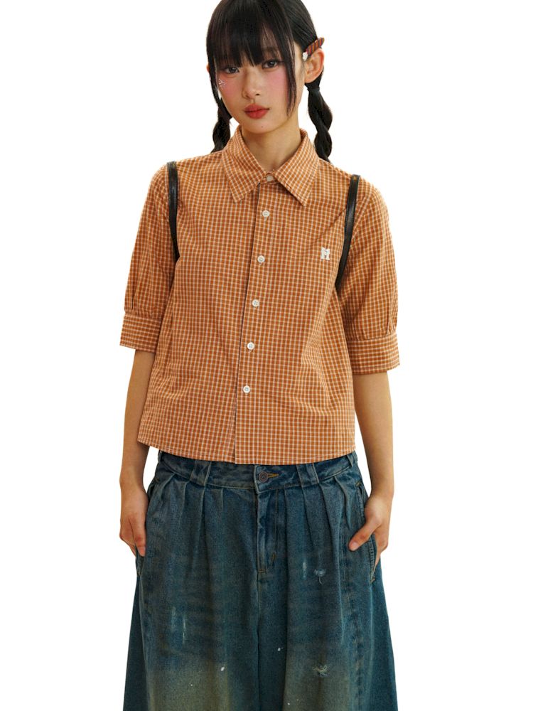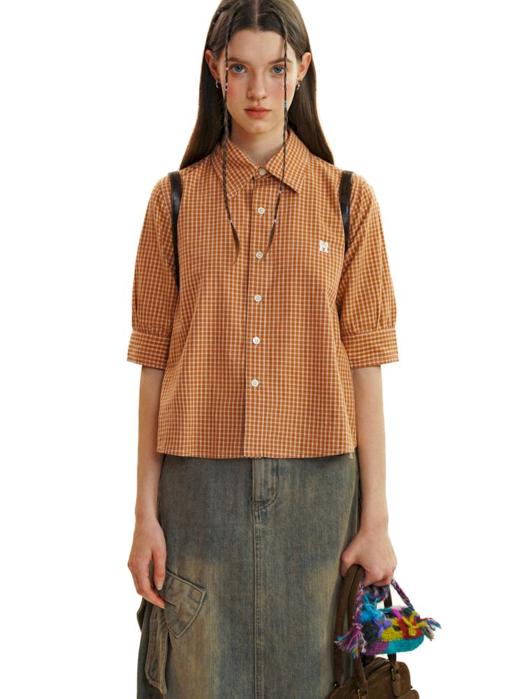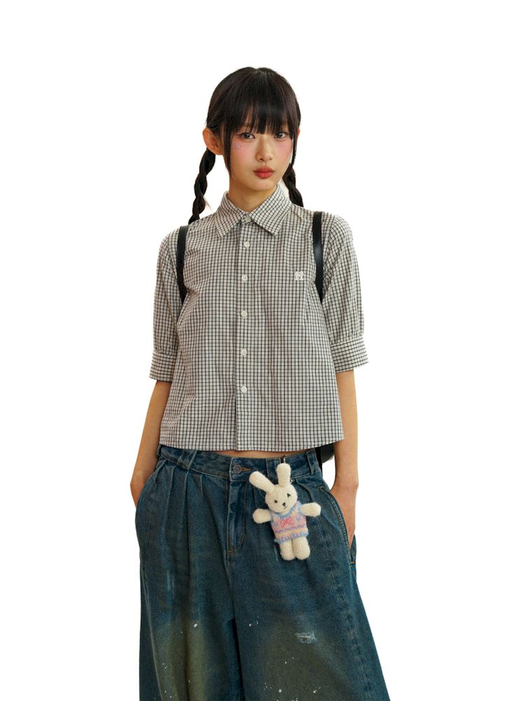 College Style Checkered Short Sleeve Shirt【s0000008581】