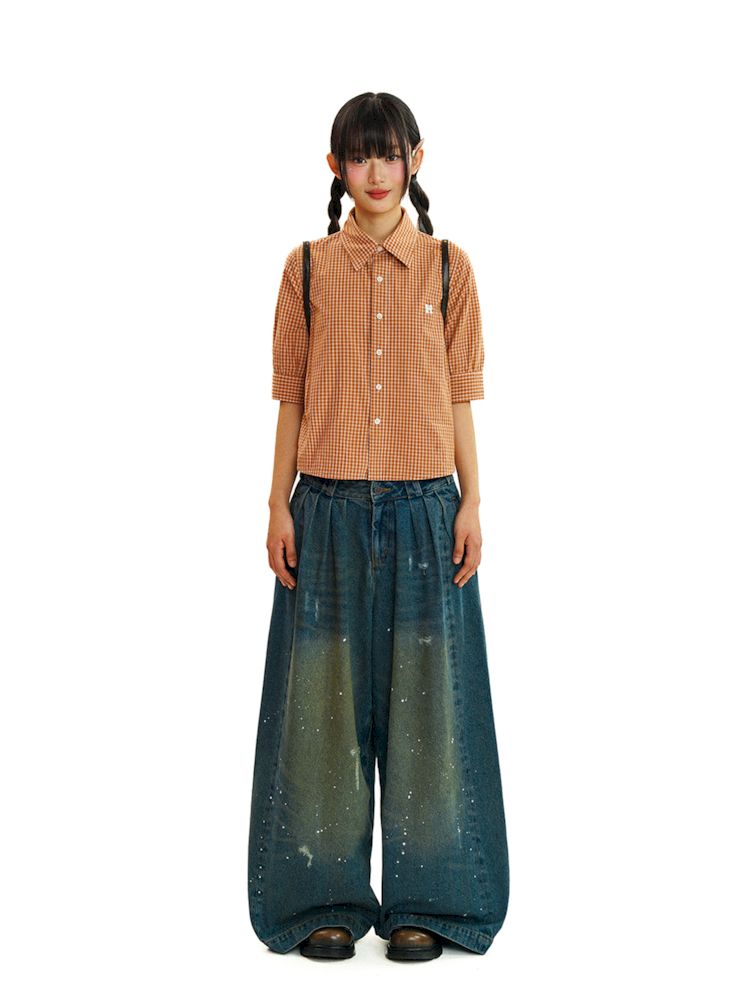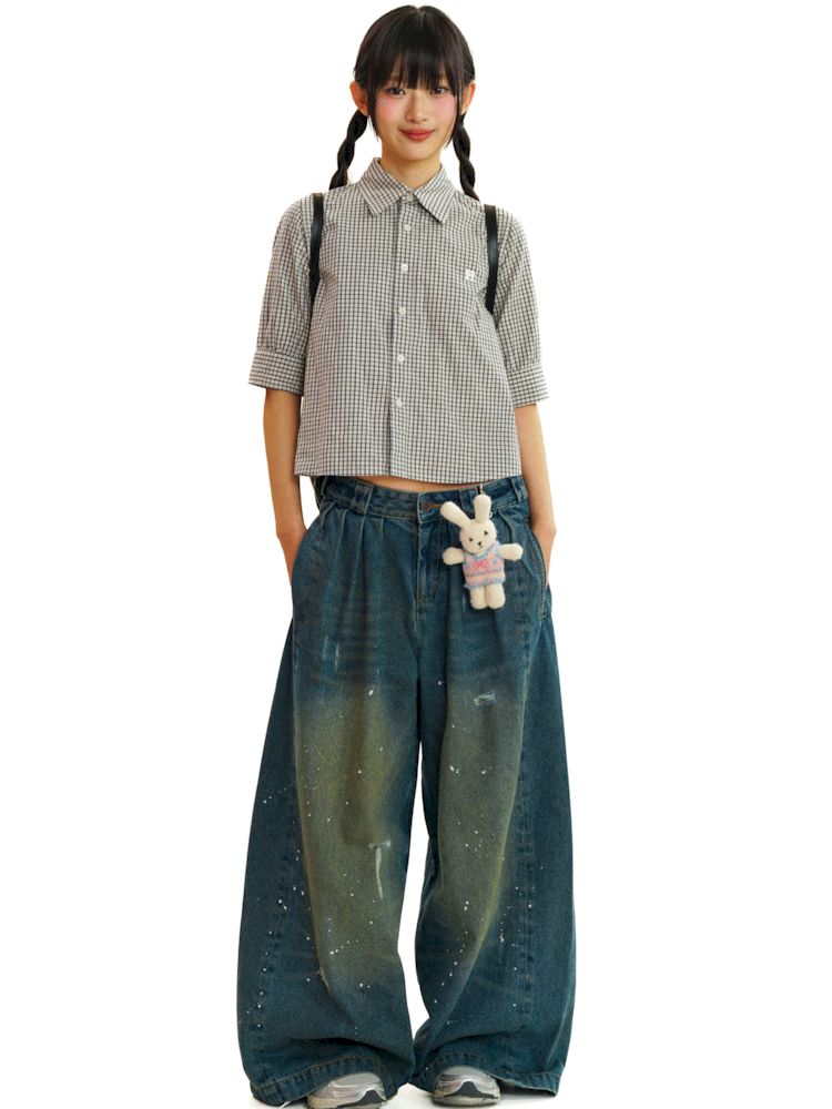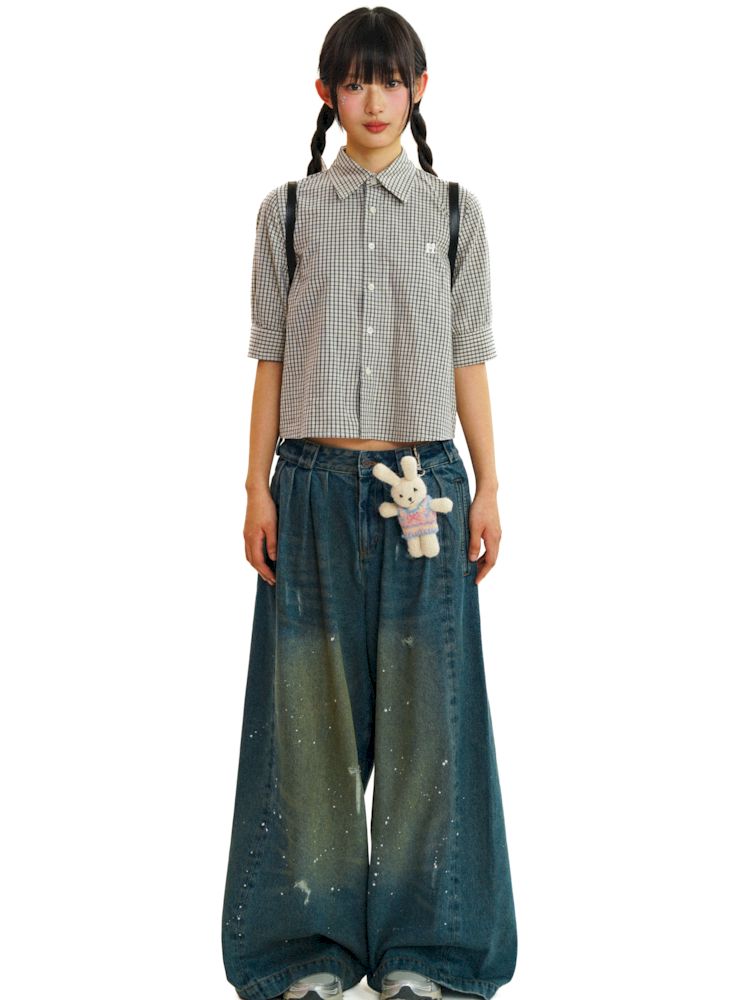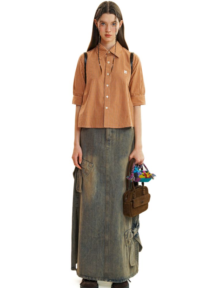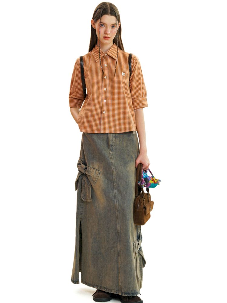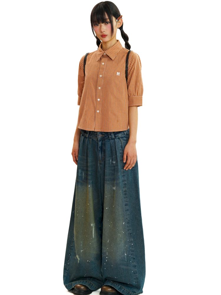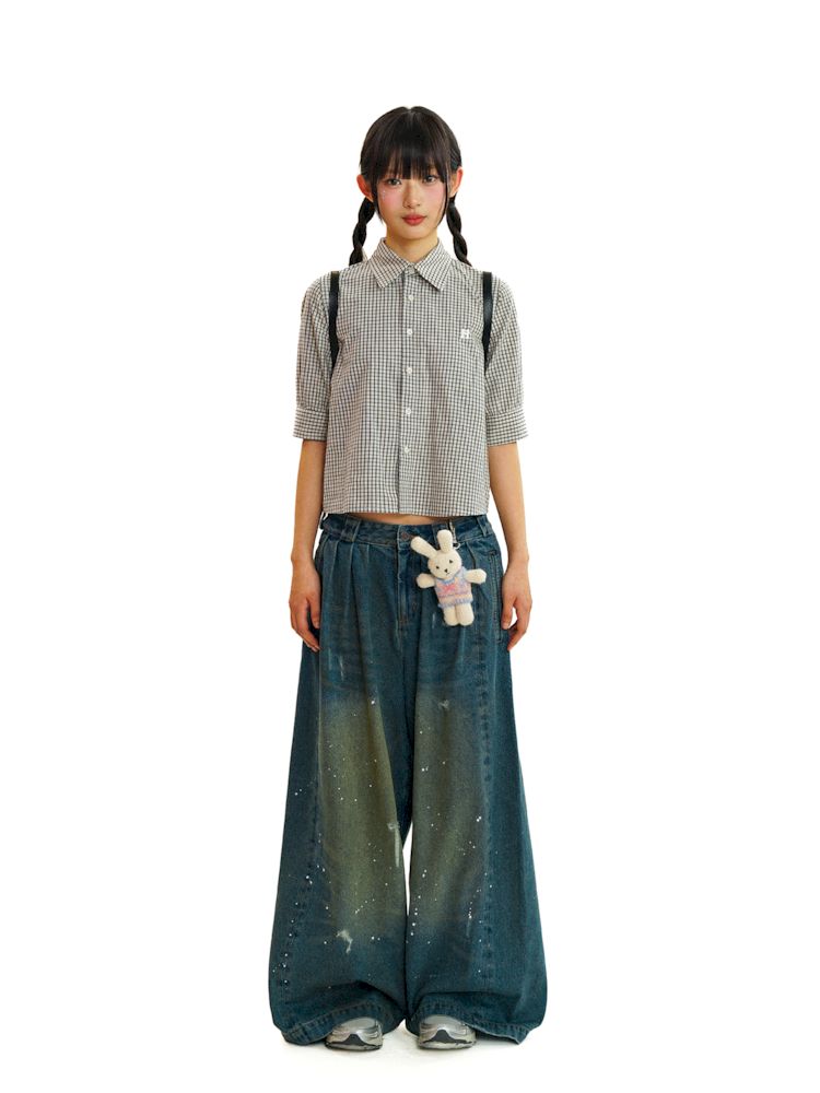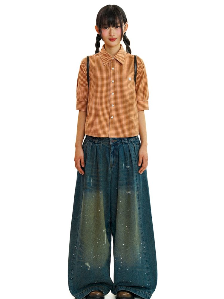 College Style Checkered Short Sleeve Shirt【s0000008581】
