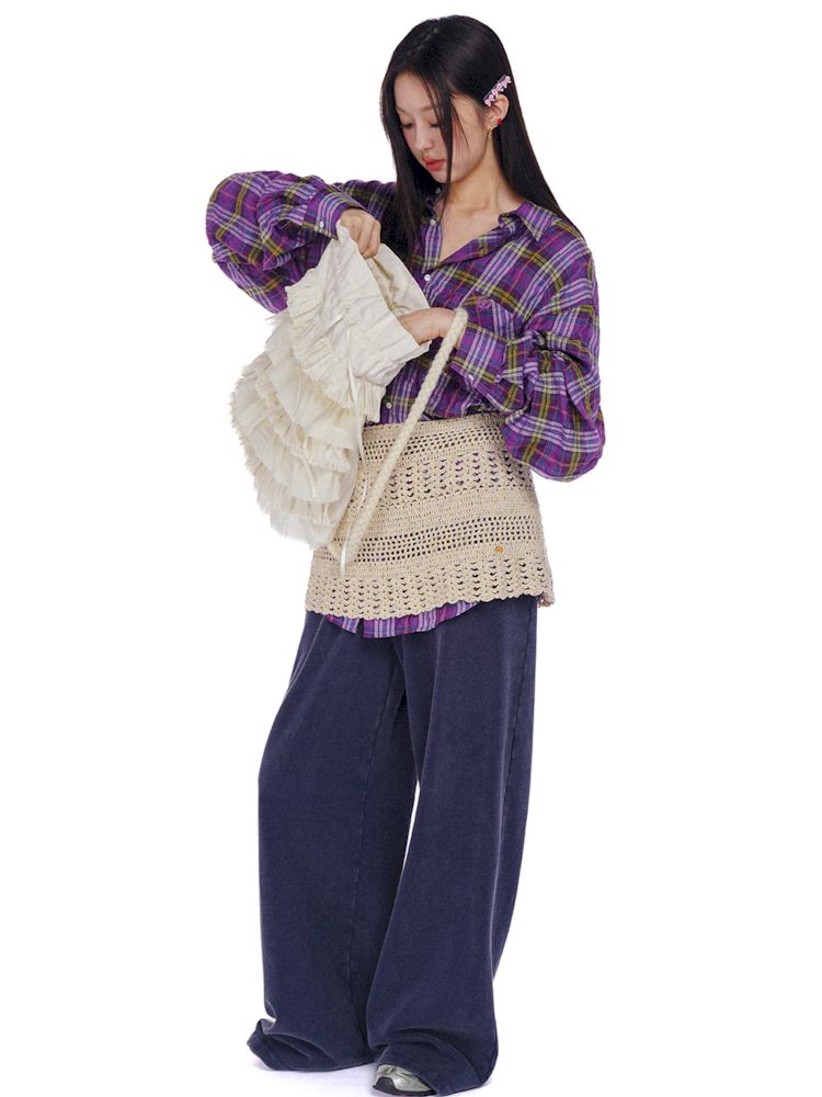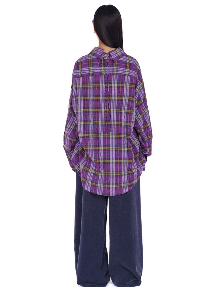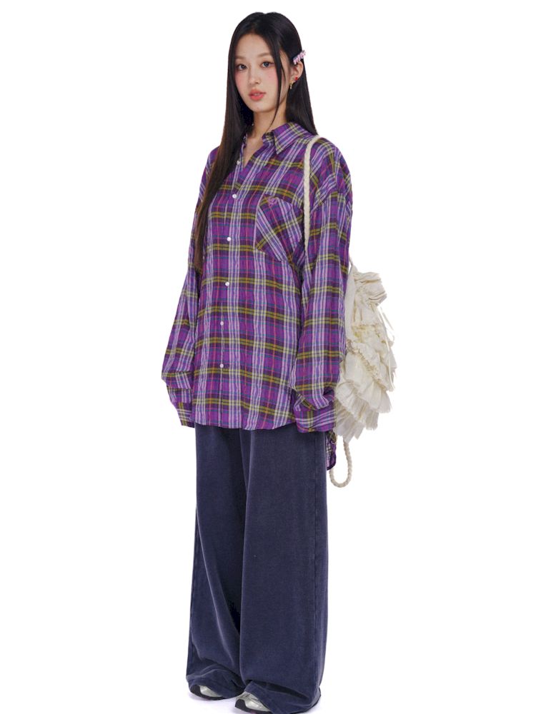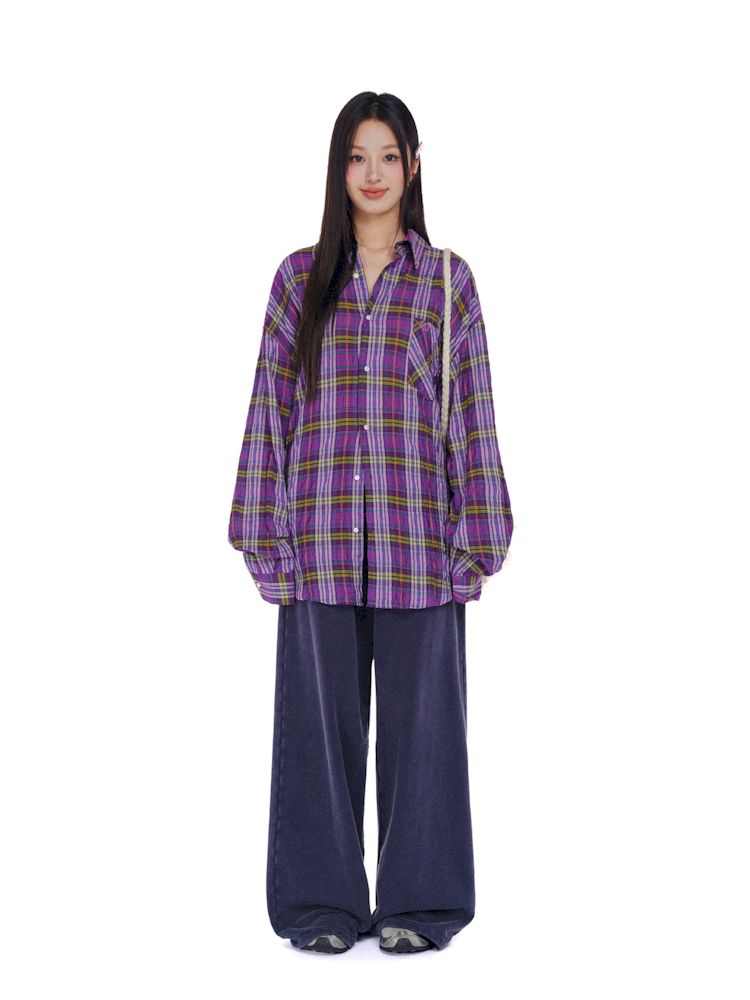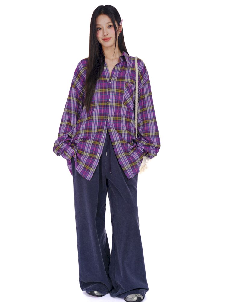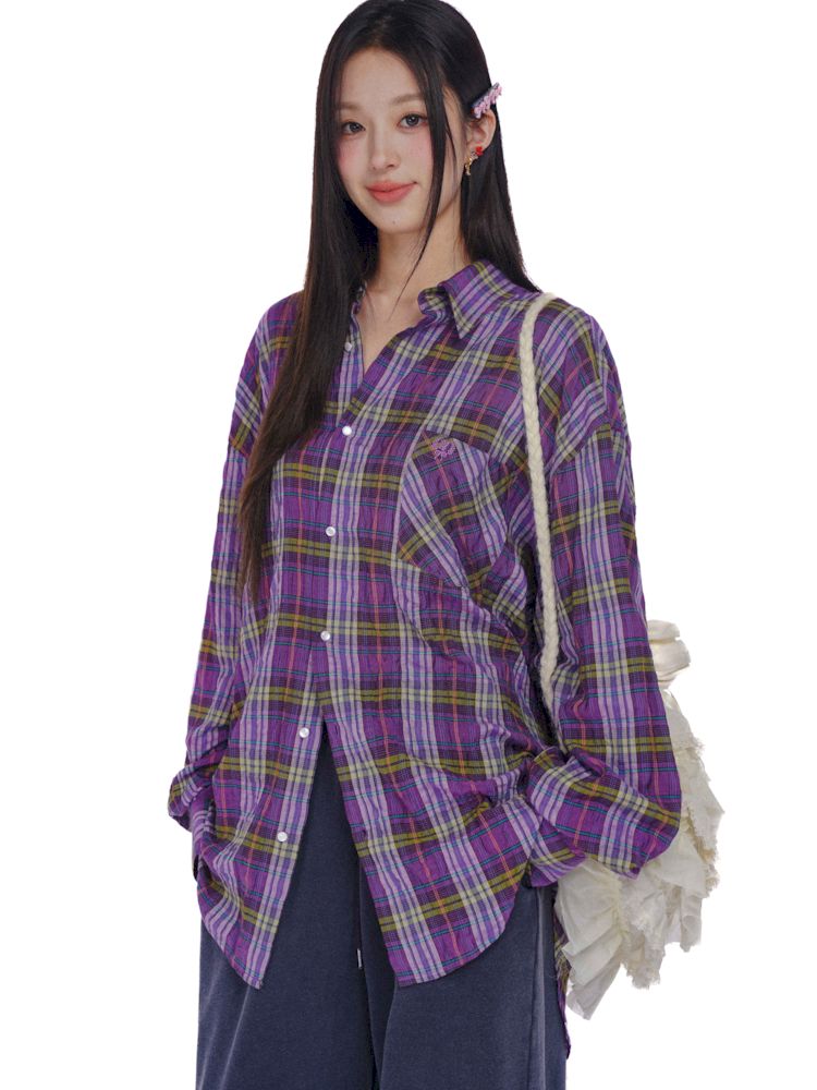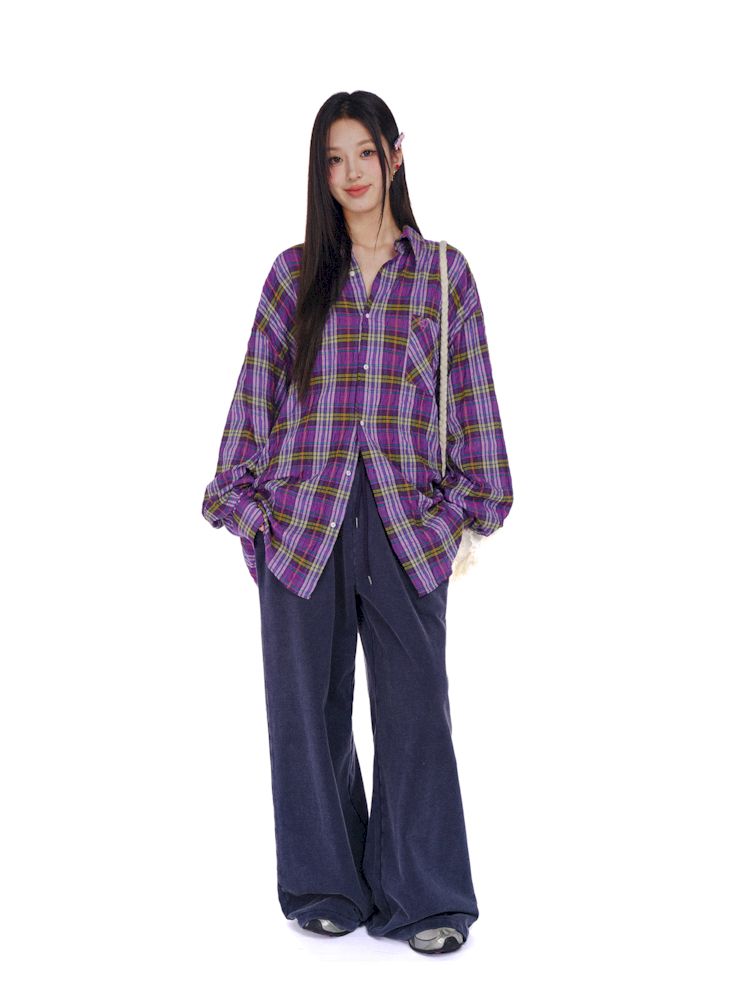 Lazy wind yellow and purple plaid shirt【s0000008591】