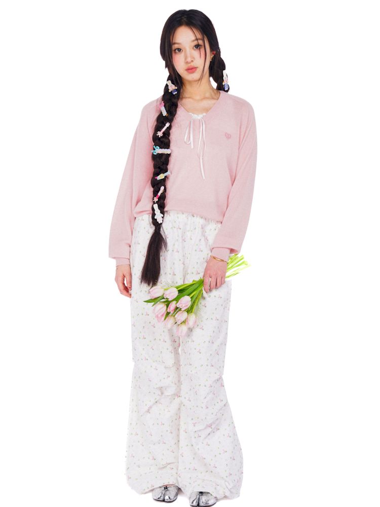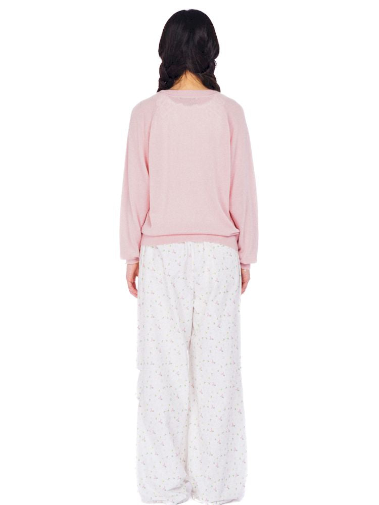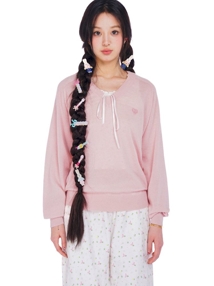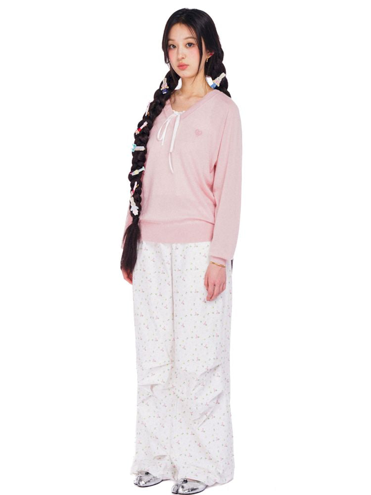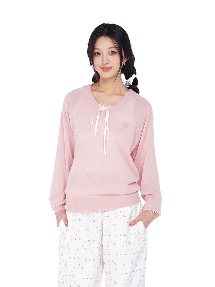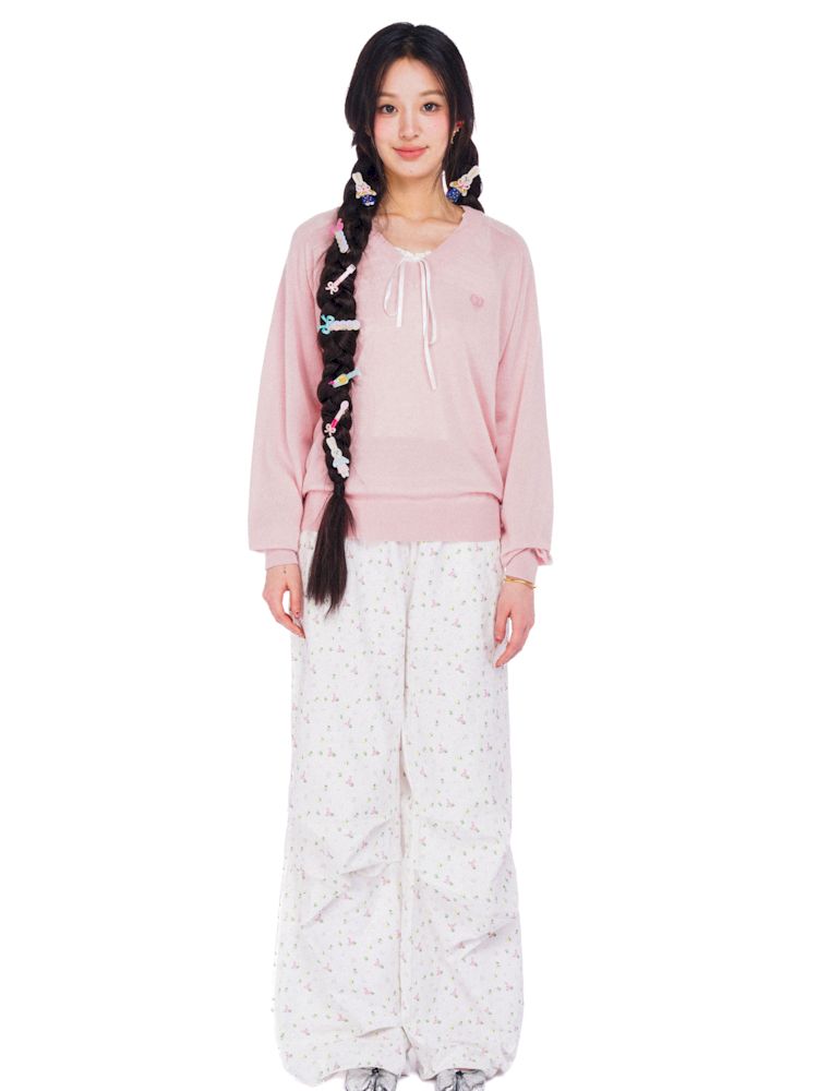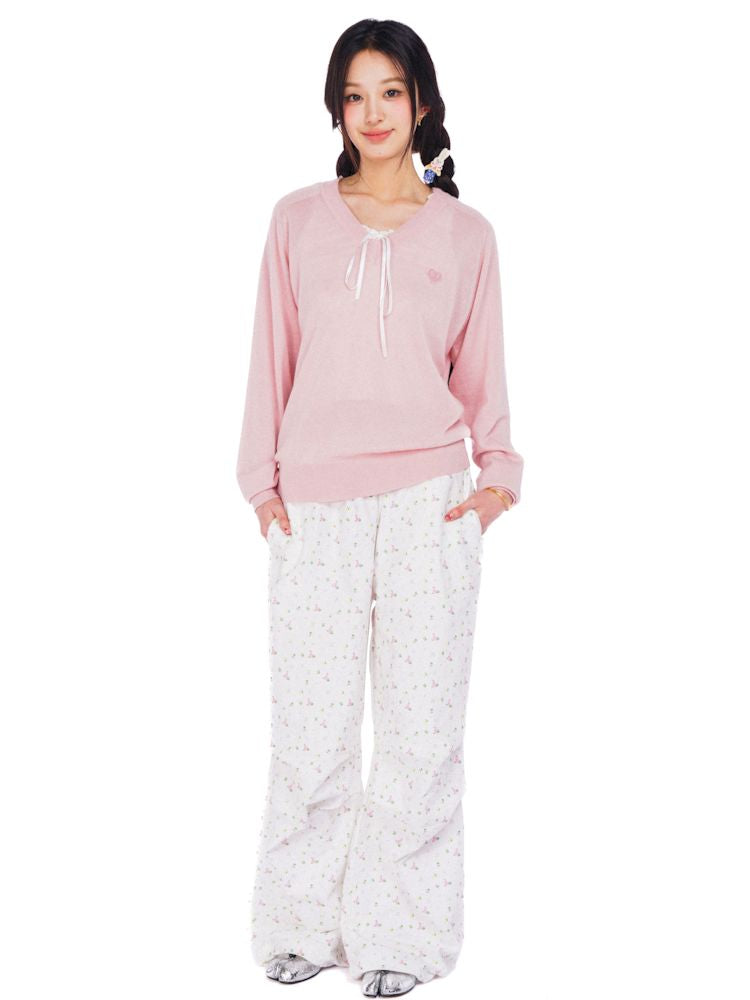 Wheat ears embroidery label soft V-neck loose long-sleeved jumper【s0000008614】