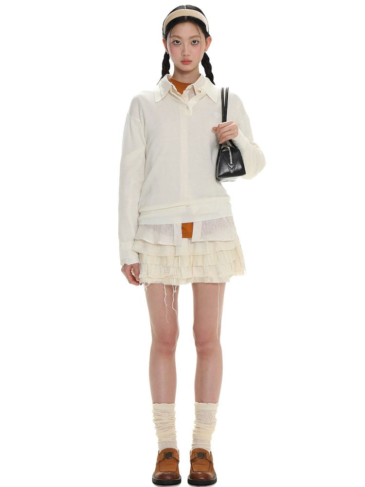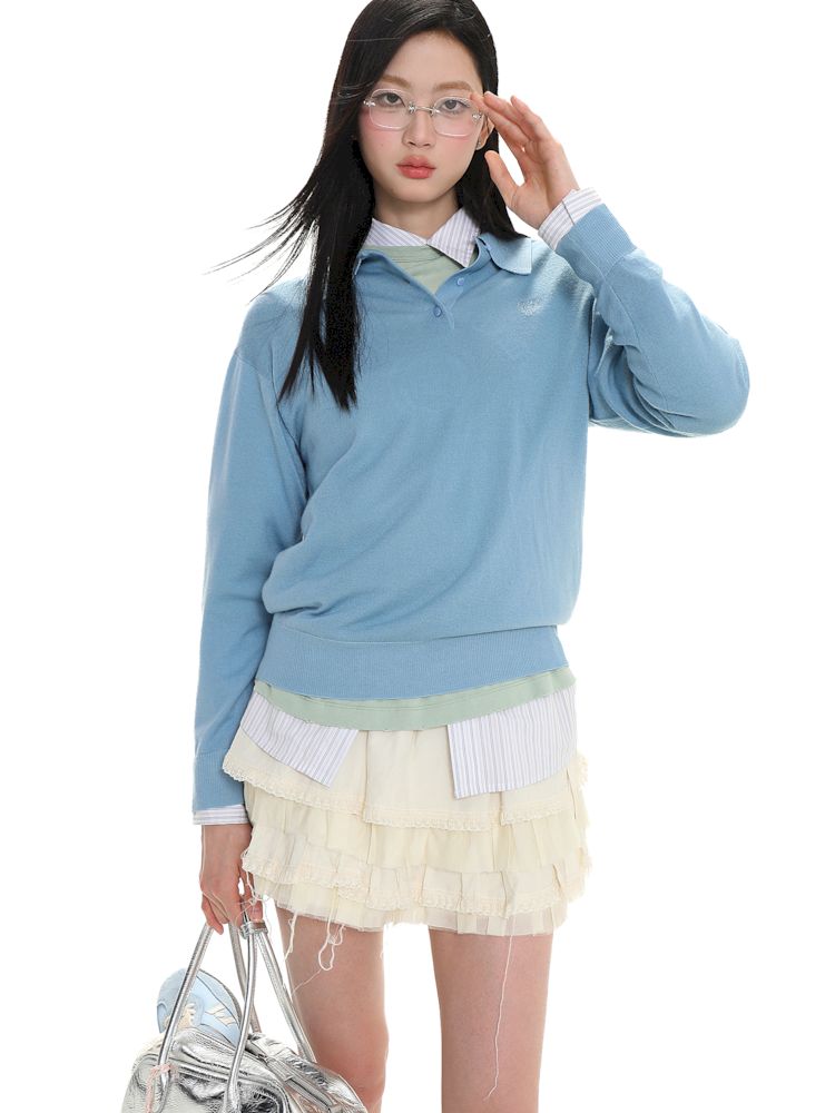 Polo collar long-sleeved jumper【s0000008615】