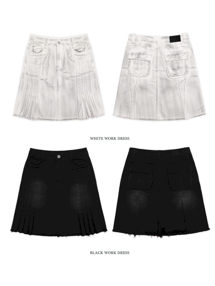 Crafted Pleated Skirt Straight Denim Workwear Pants【s0000008624】