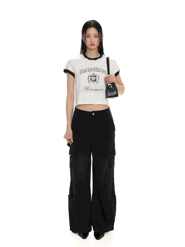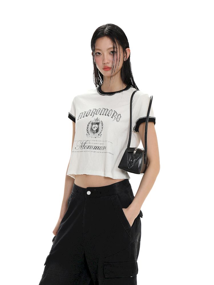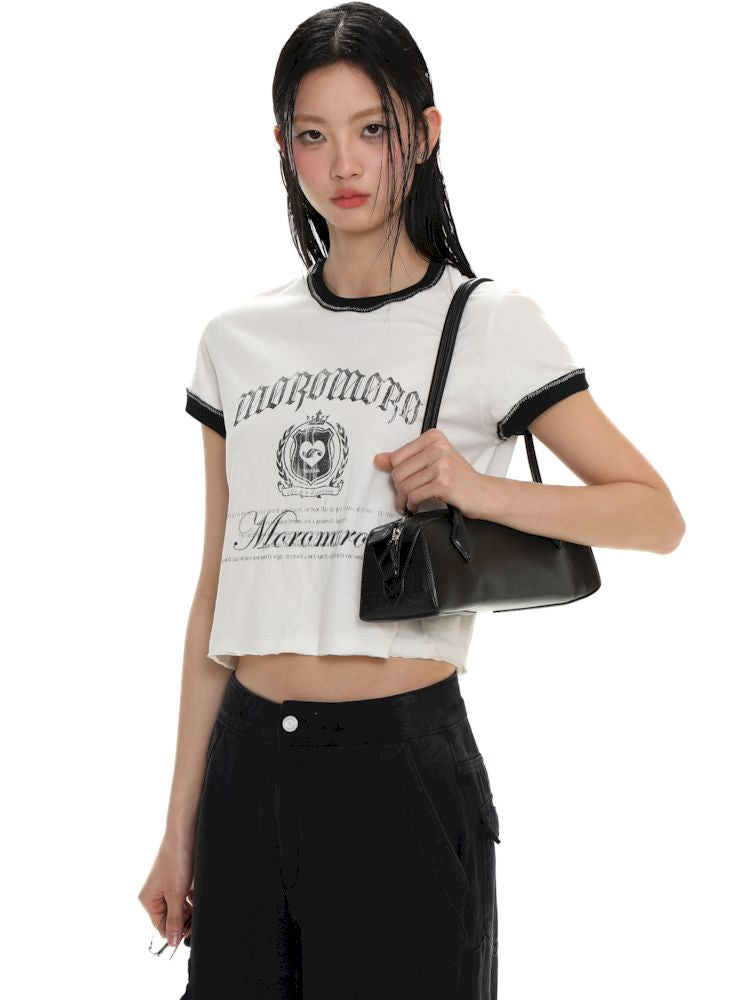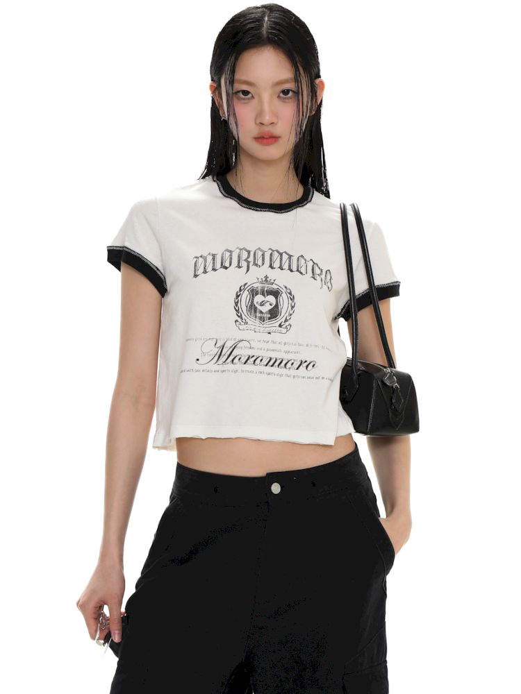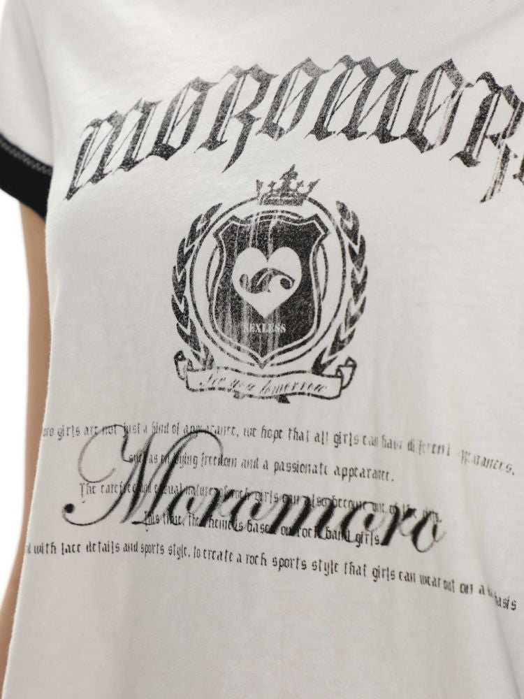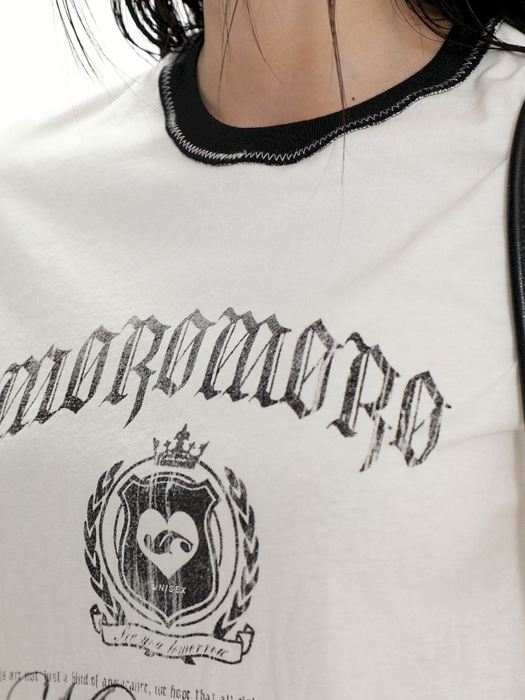 Round Neck Badge Printed Short Sleeve T-Shirt【s0000008625】