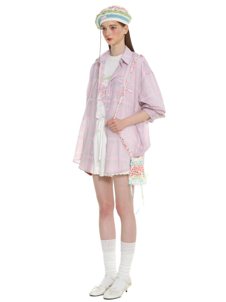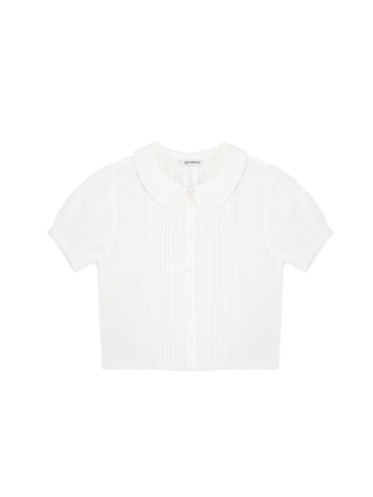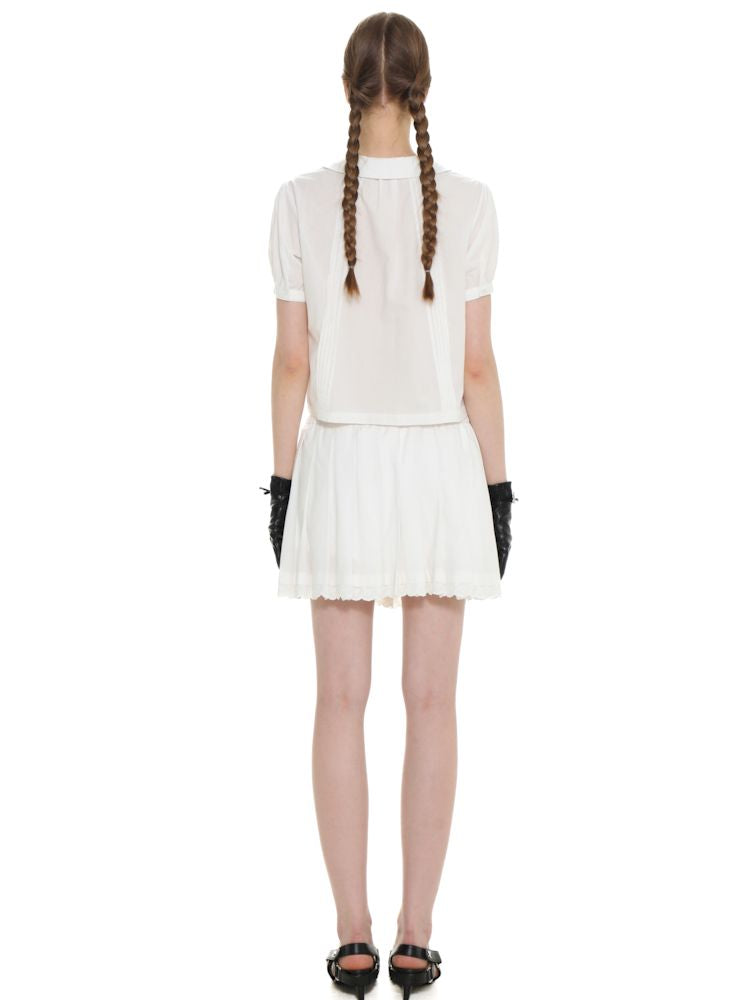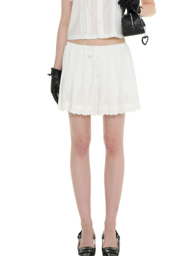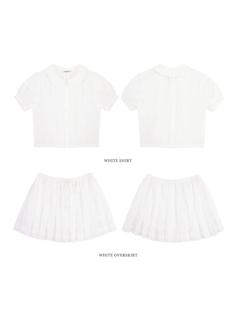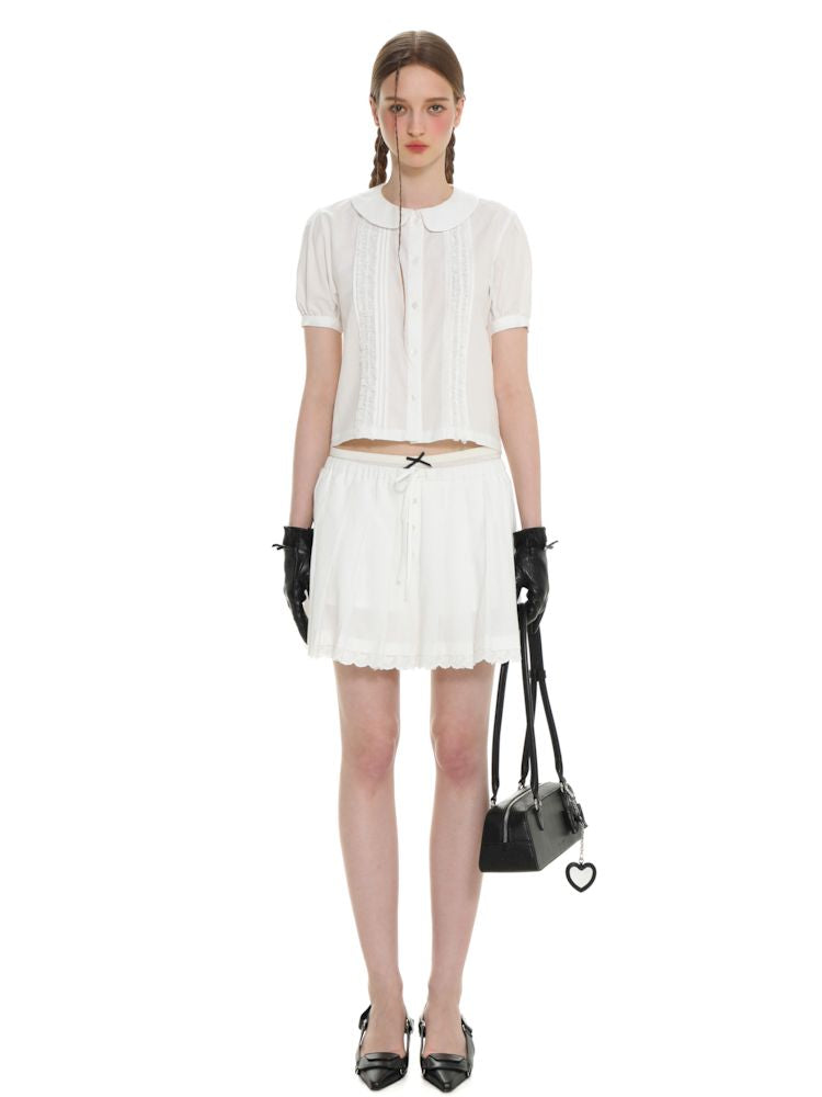 Doll Collar Lace Short Sleeve Shirt With Shell Button Placket Drawstring Pleated Short Skirt【s0000008633】