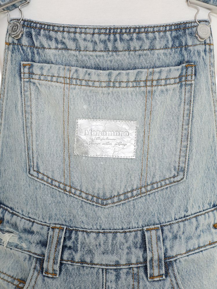 Silver pleated leather label casual straight denim back pants【s0000008646】