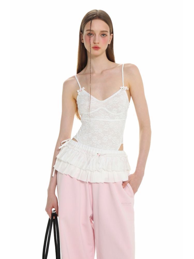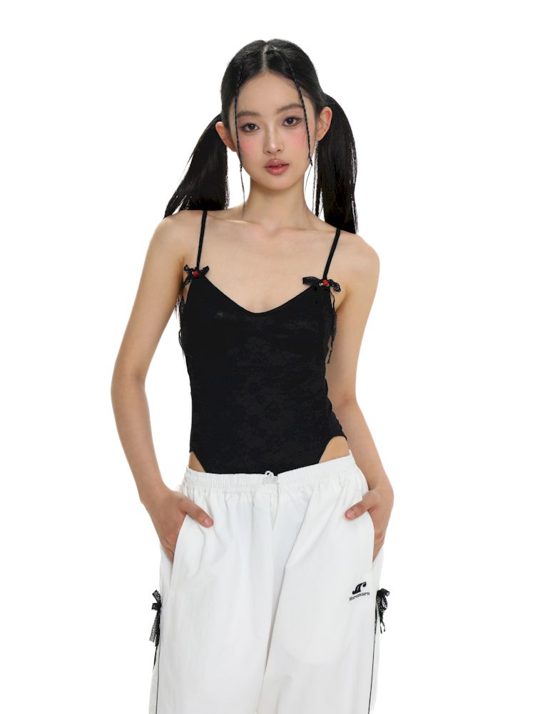 Lace Tie Bow Slim Sleeveless Top【s0000008648】