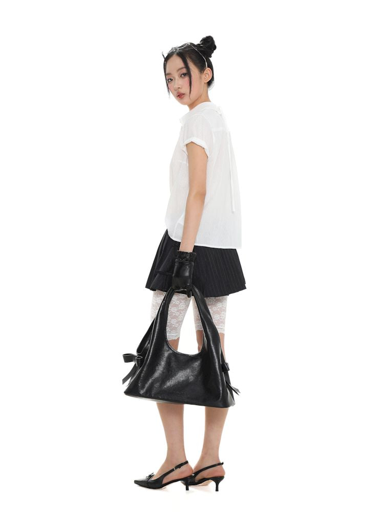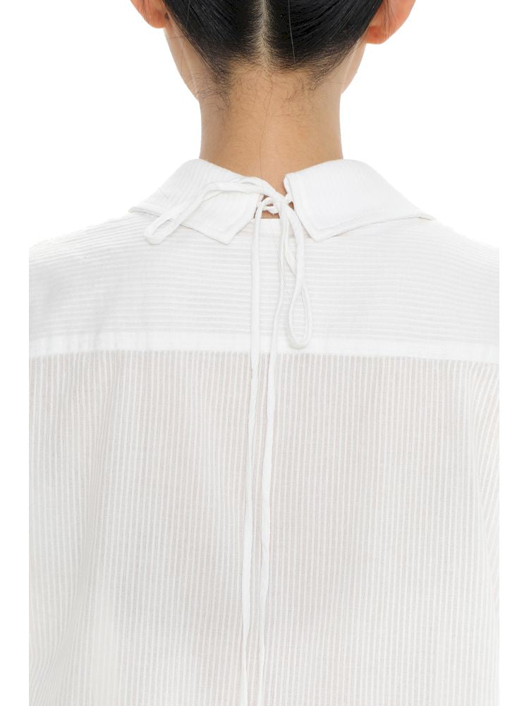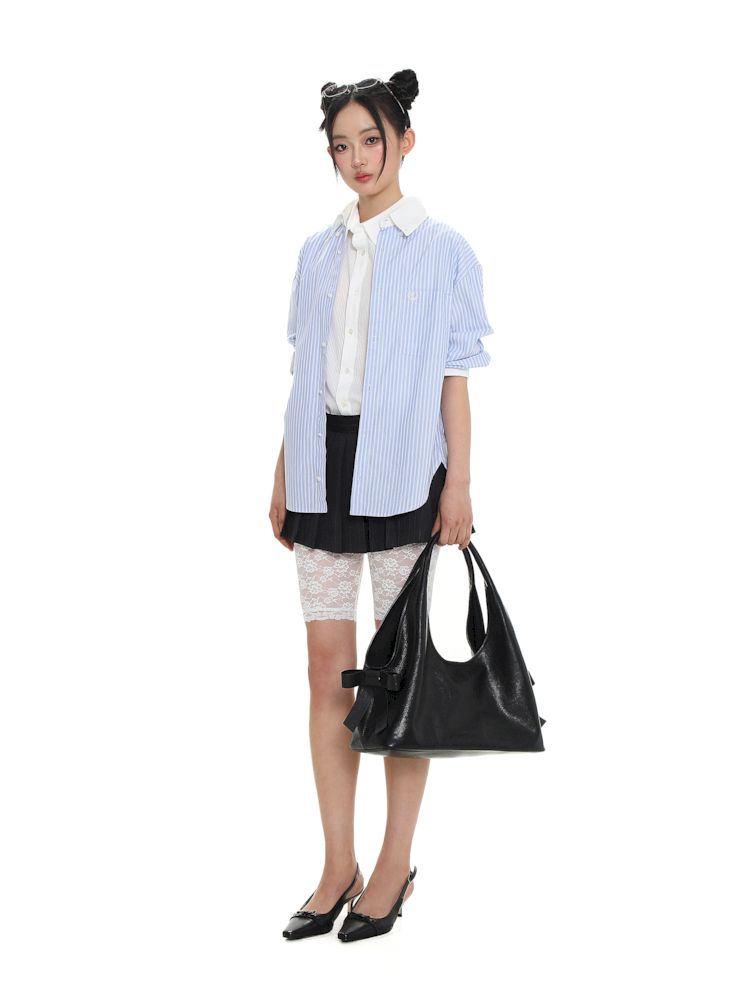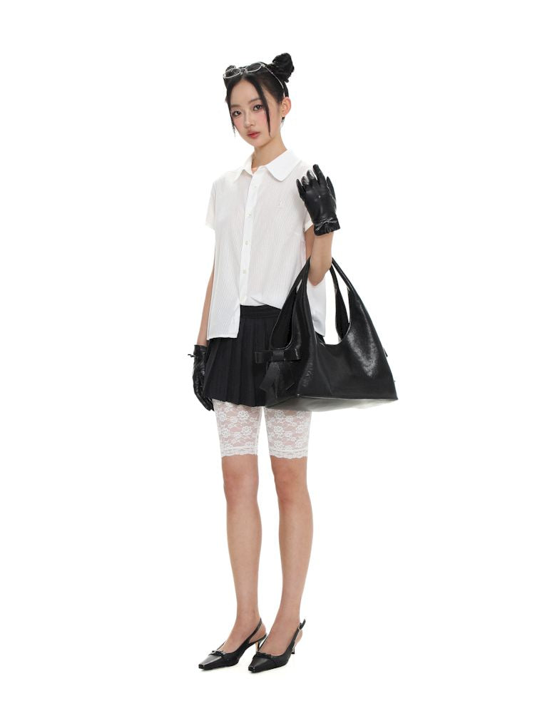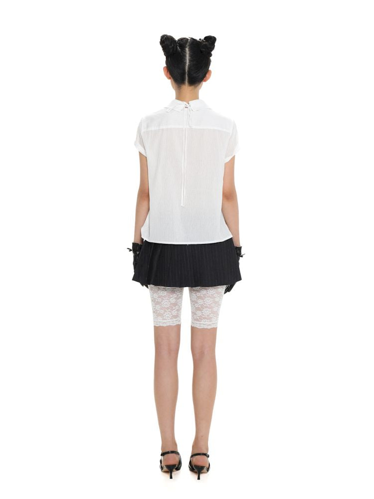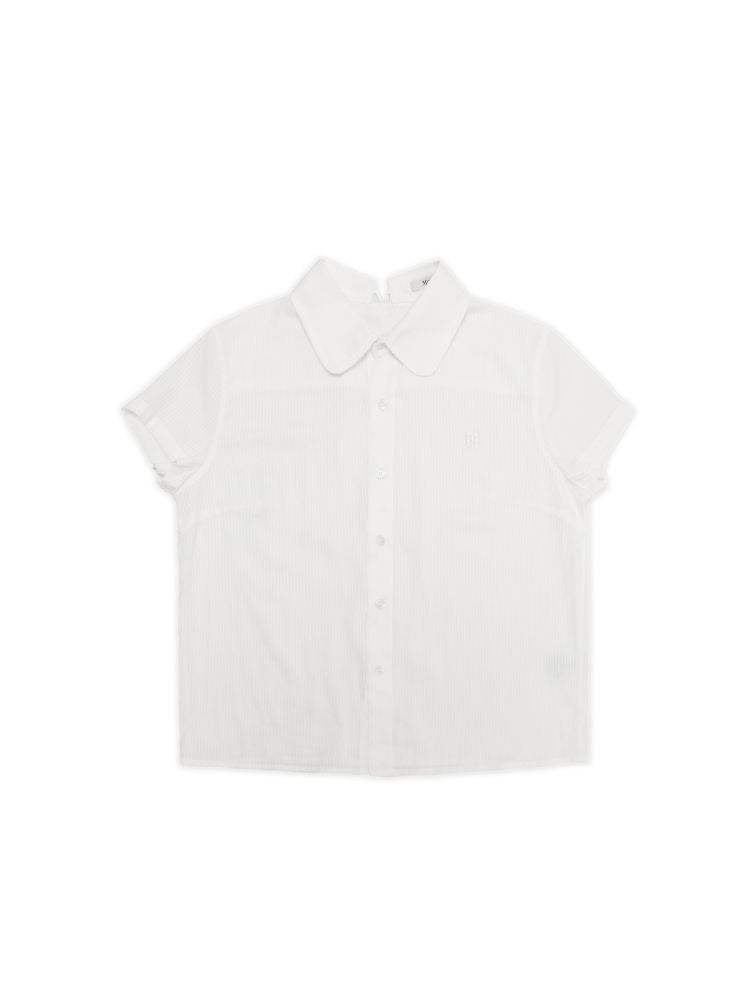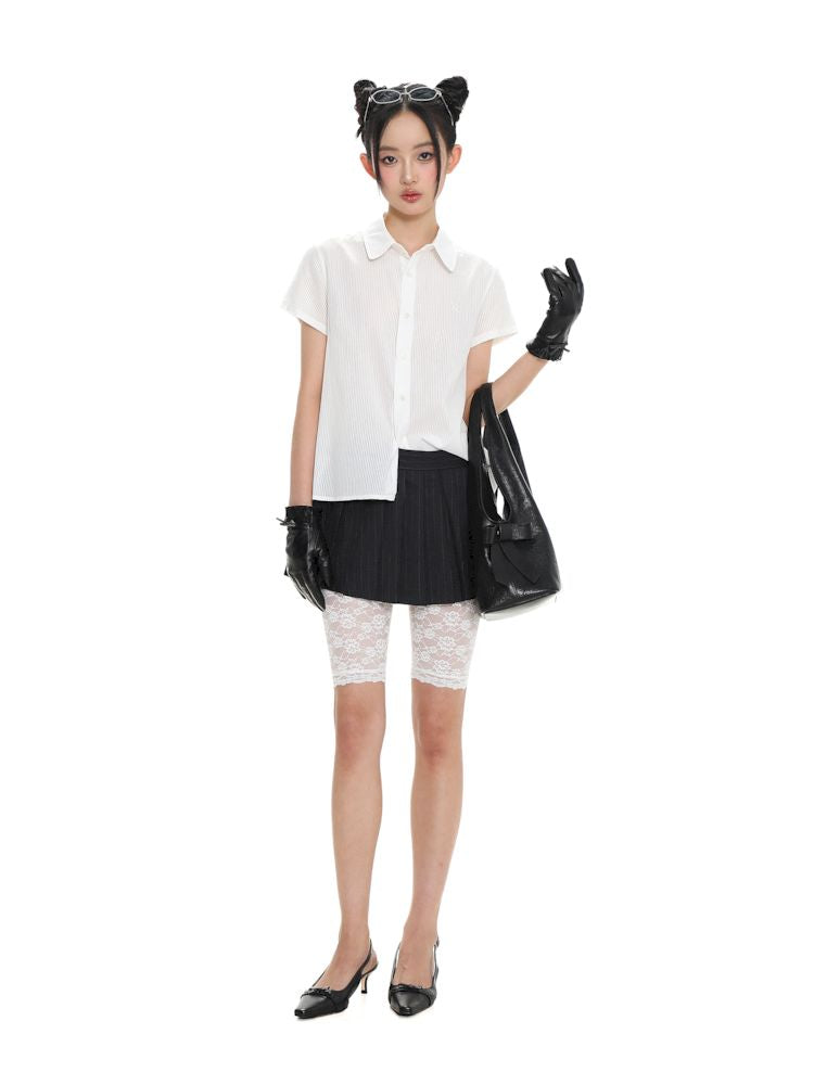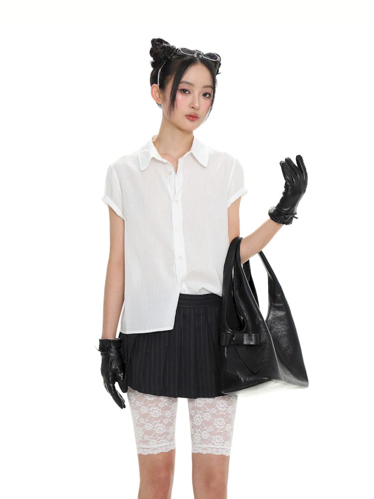 Stripe Embroidery Label Lapel Tie Short Sleeve Shirt【s0000008651】