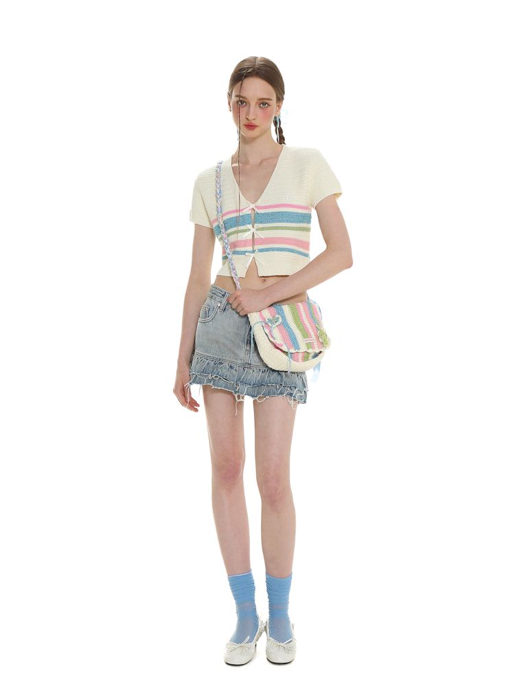 Stripe Hand Crochet Knitted Bag【s0000008662】