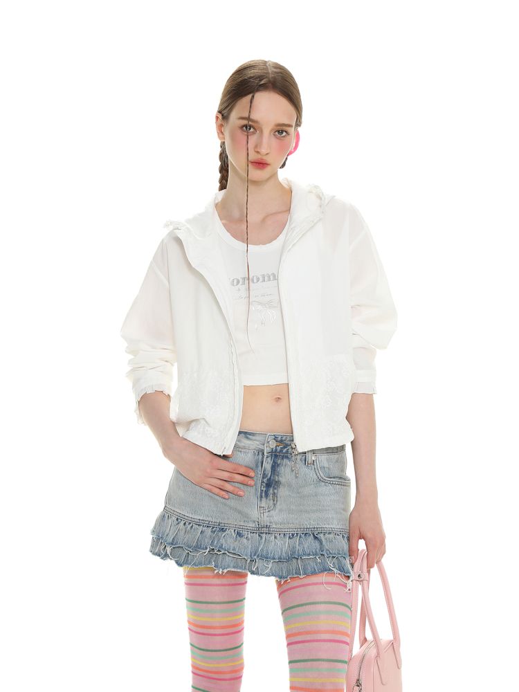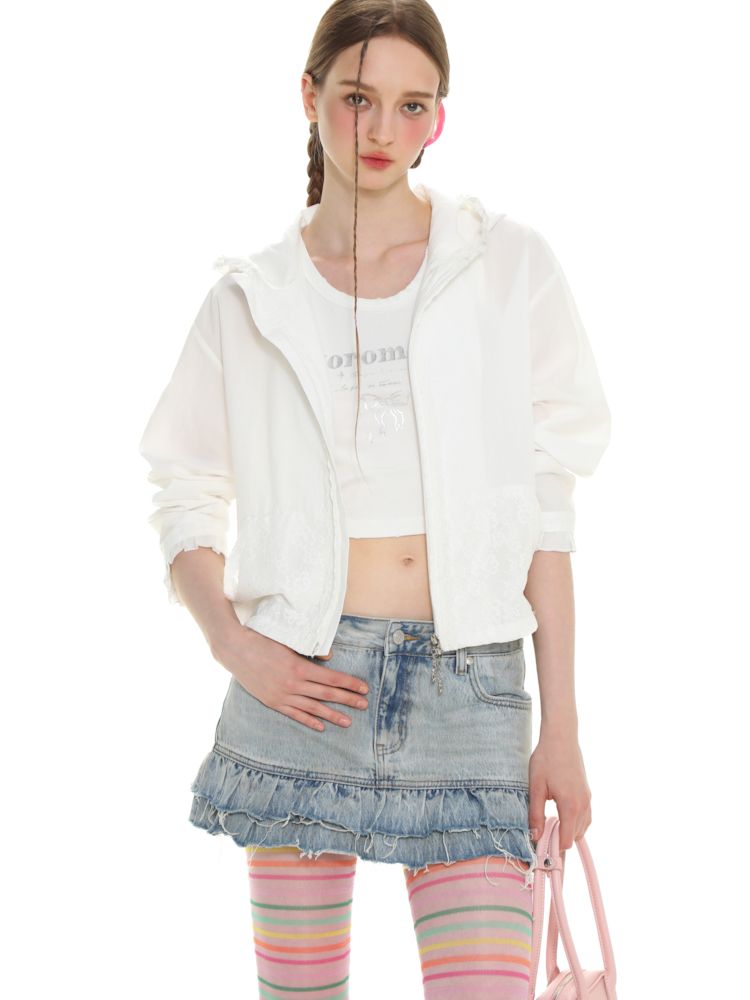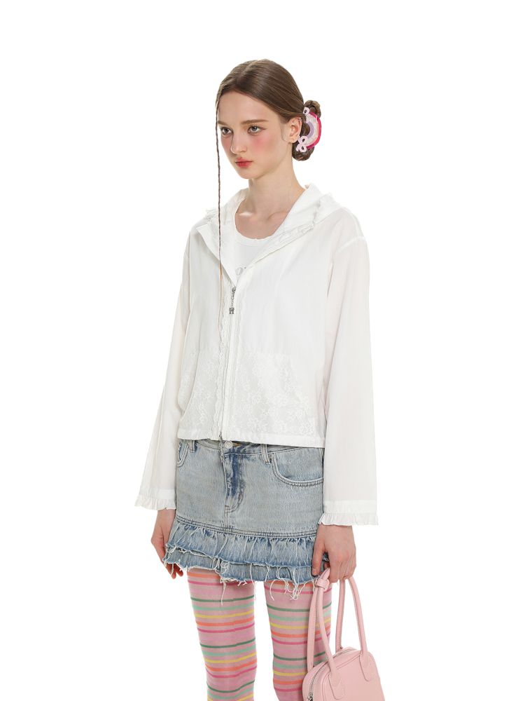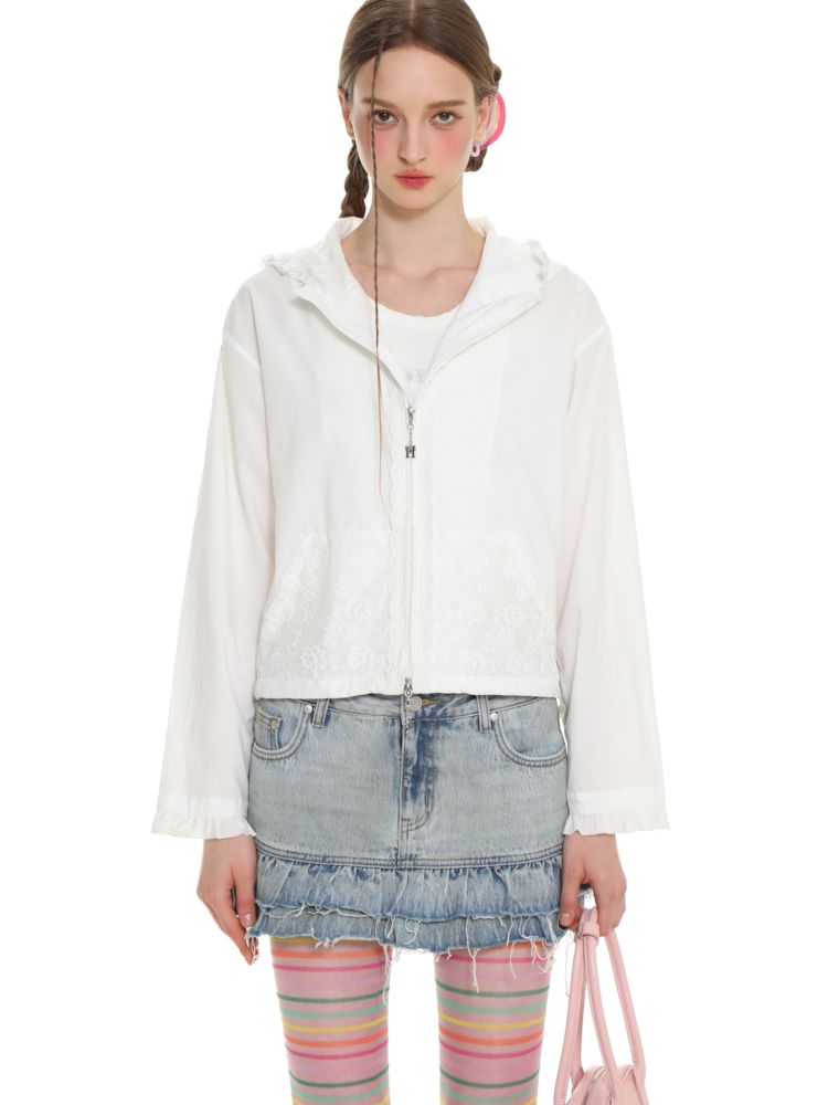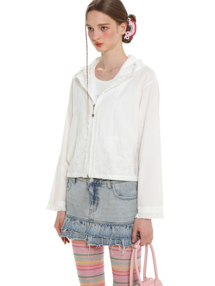 Insert Pocket Lace Zip Cardigan Jacket【s0000008664】
