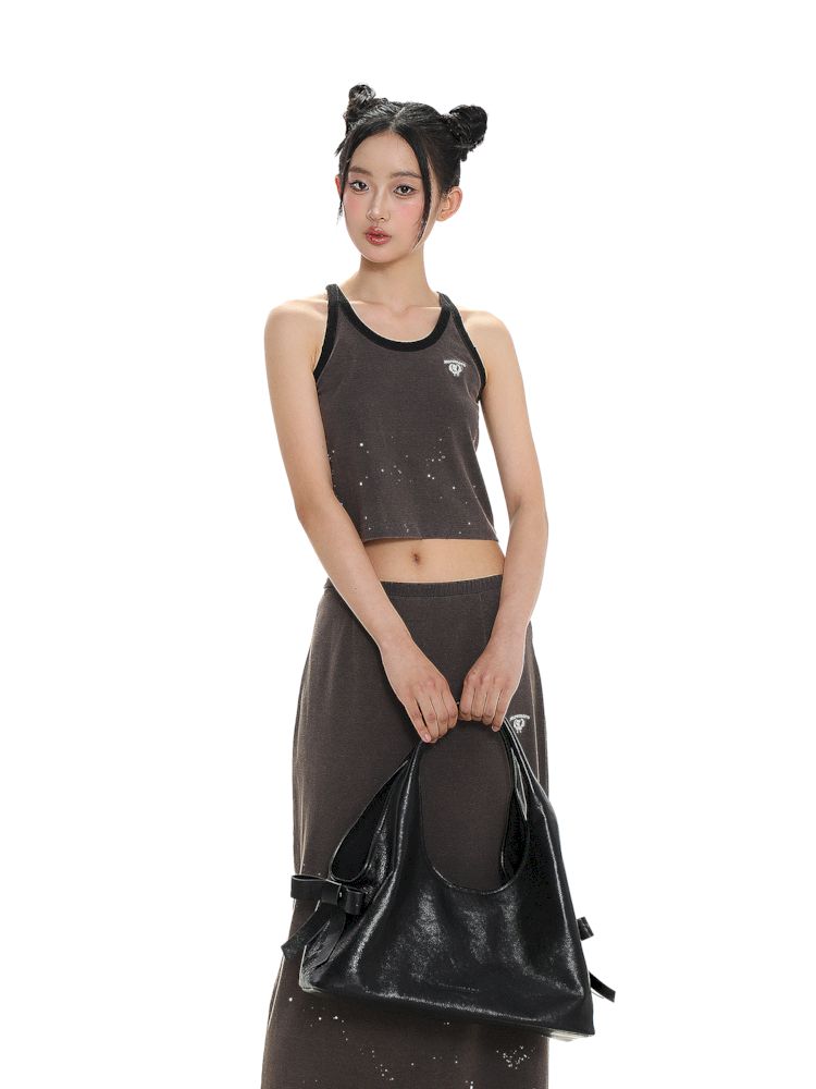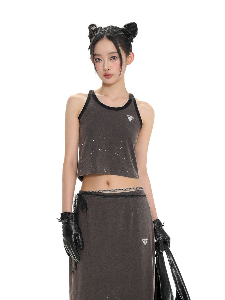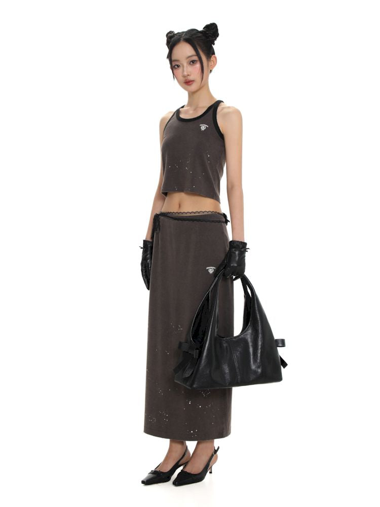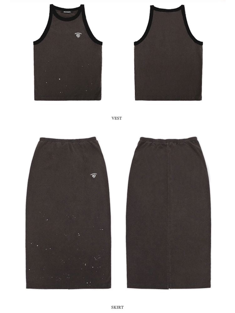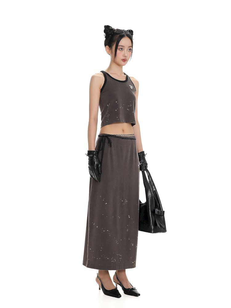Flip Dot Embroidery Sleeveless Camisole Vest Long Skirt Set【s0000008673】