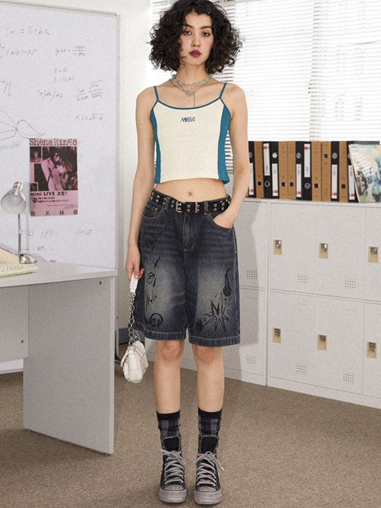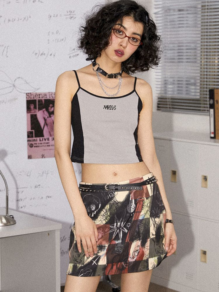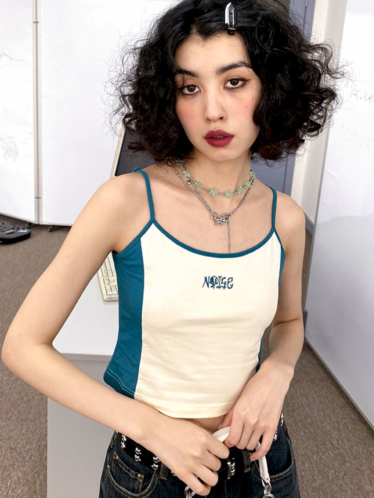 Embroidery Colorblocking Short Camisole Tank【s0000008840】