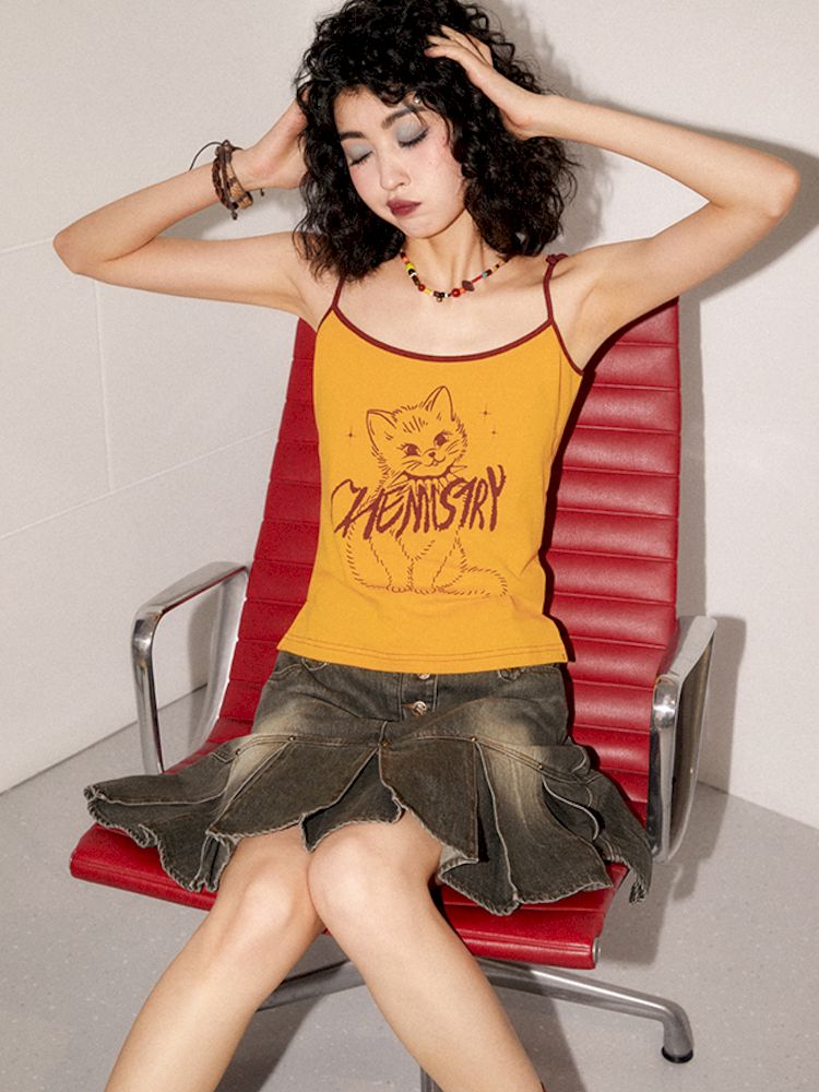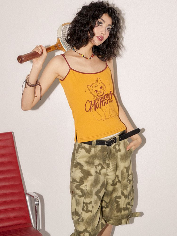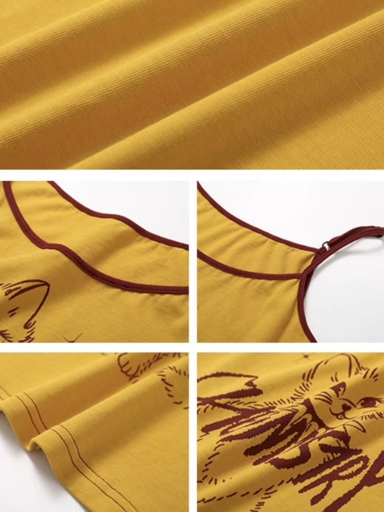 Round Neck Vintage Kitten Print Camisole【s0000008854】