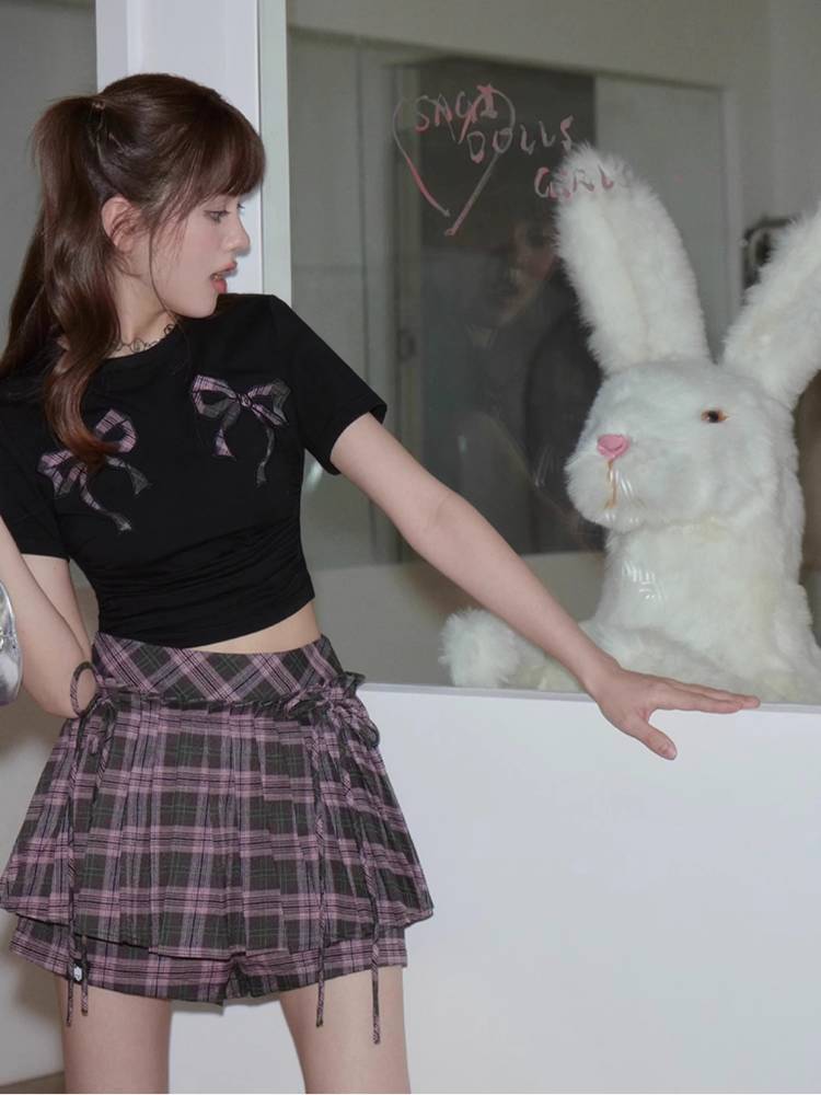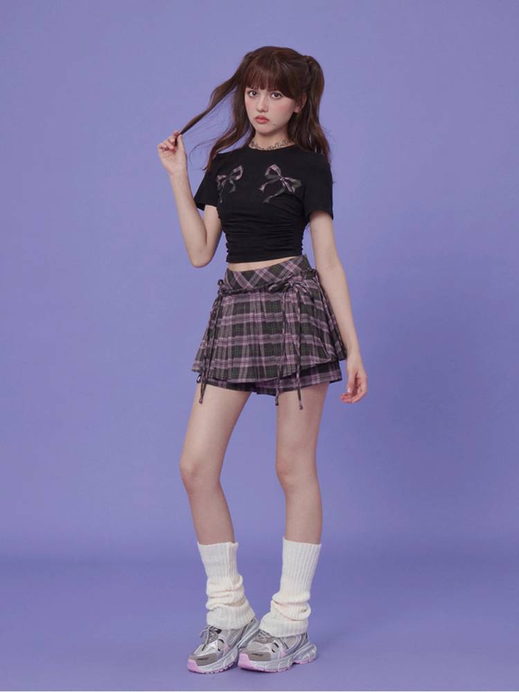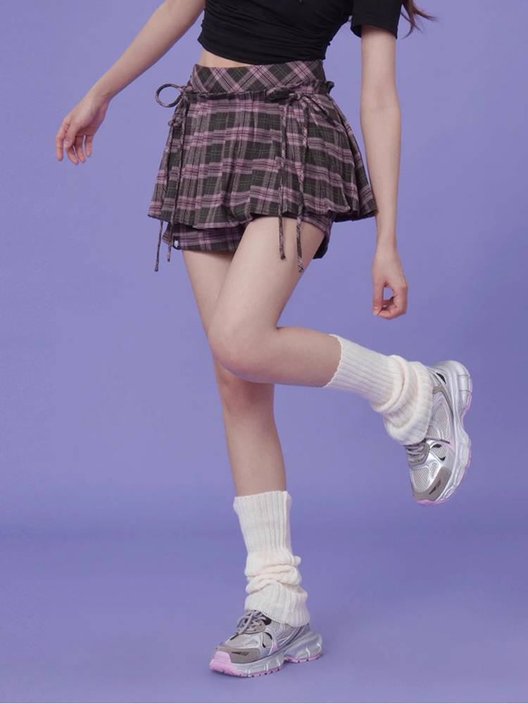 Plaid Ribbon Pleated Culottes【s0000008887】