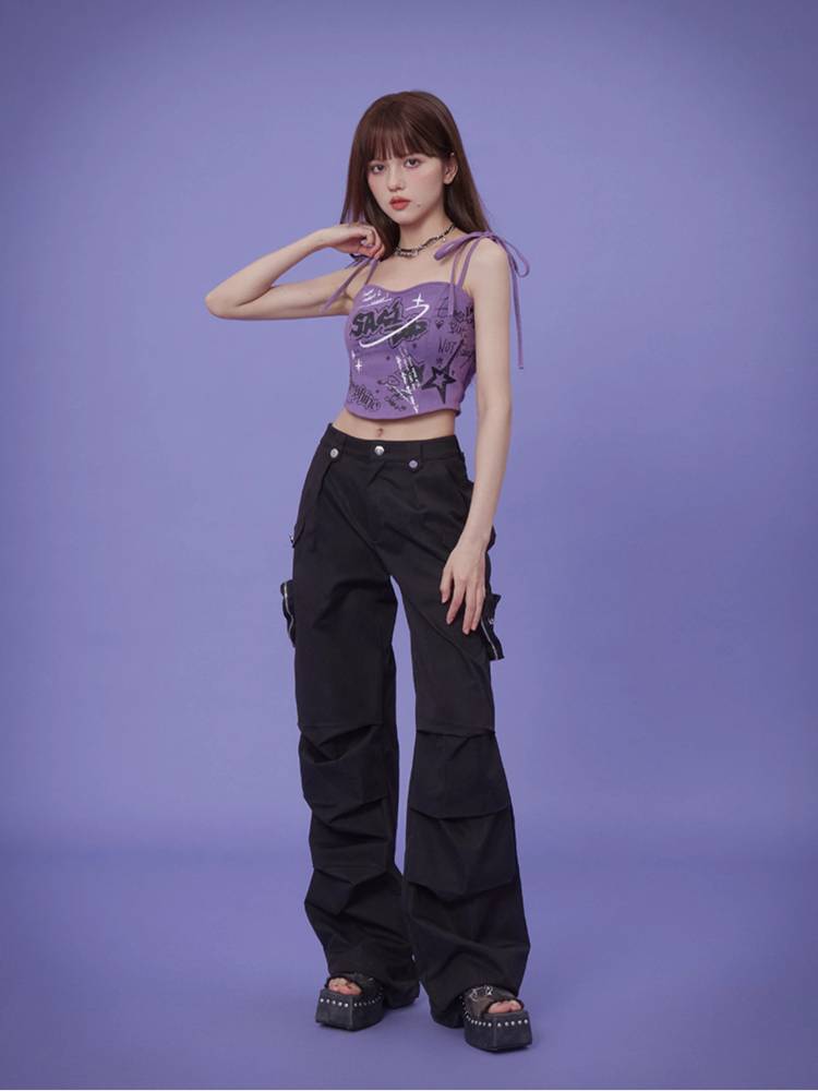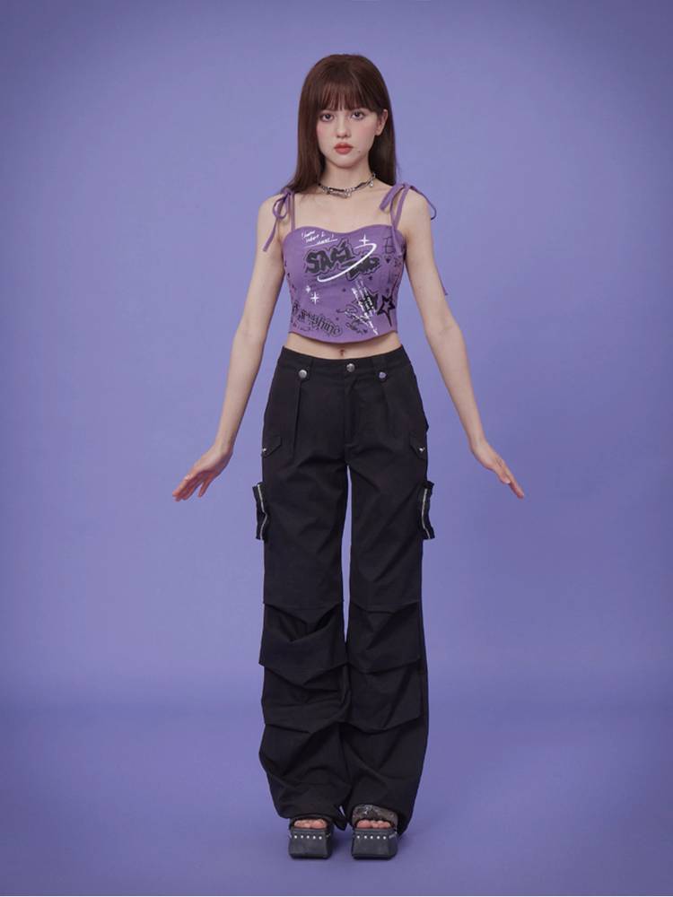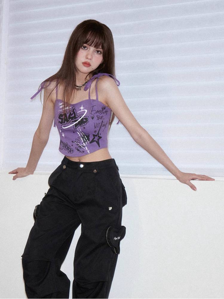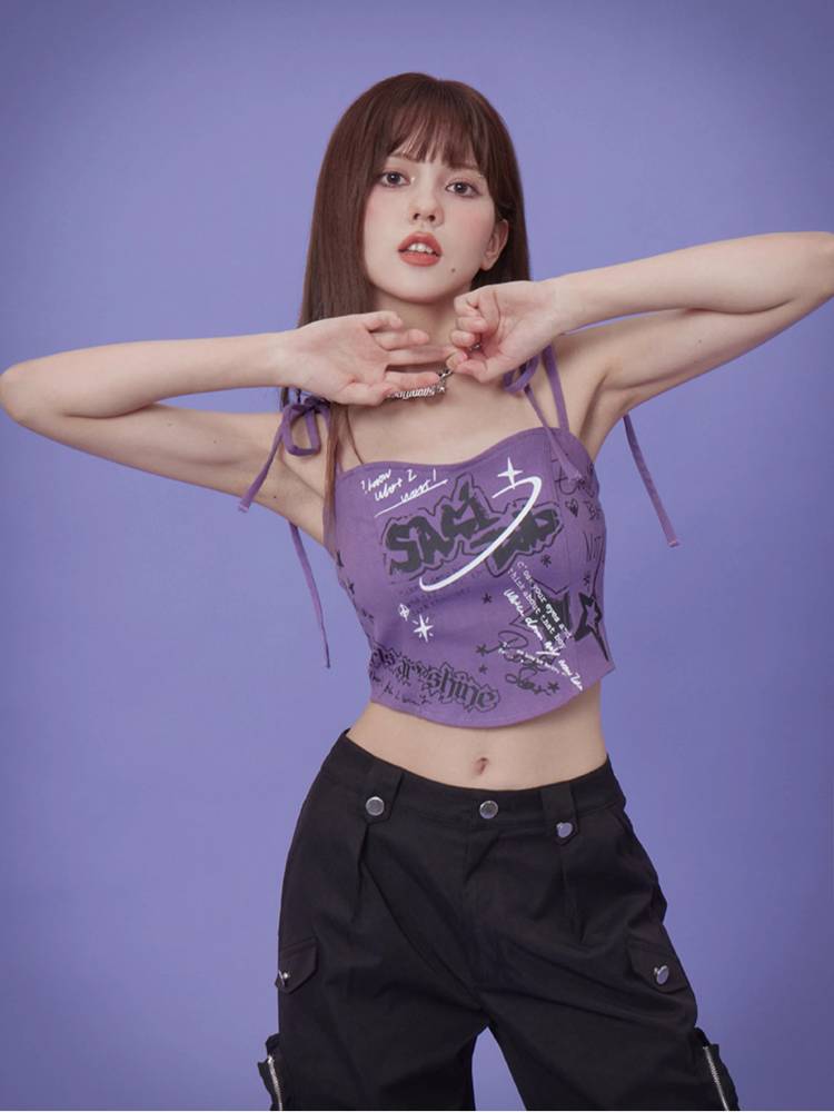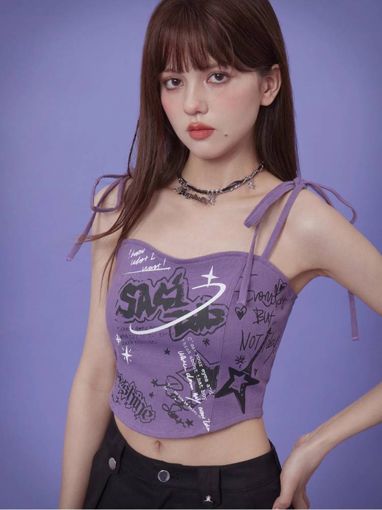 Suspenders graffiti print camisole【s0000008897】