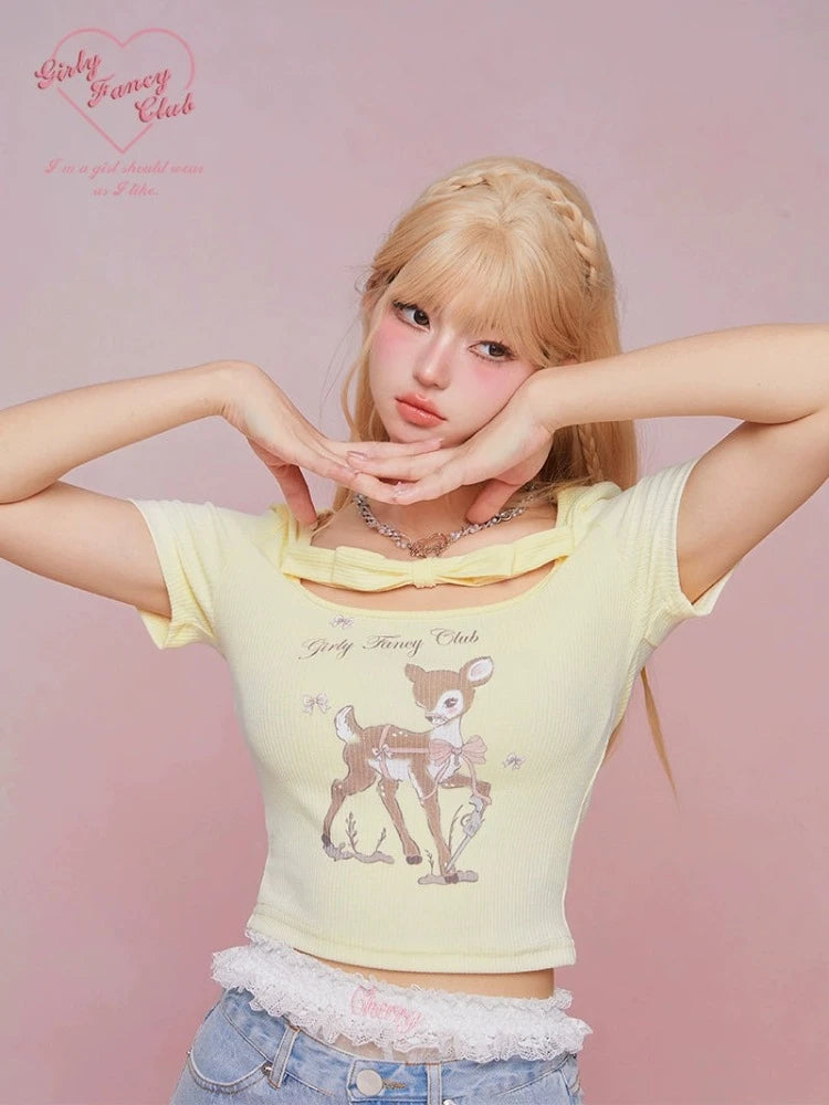 U-neck ribbon short-sleeve T-shirt【s0000008940】
