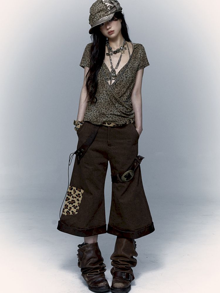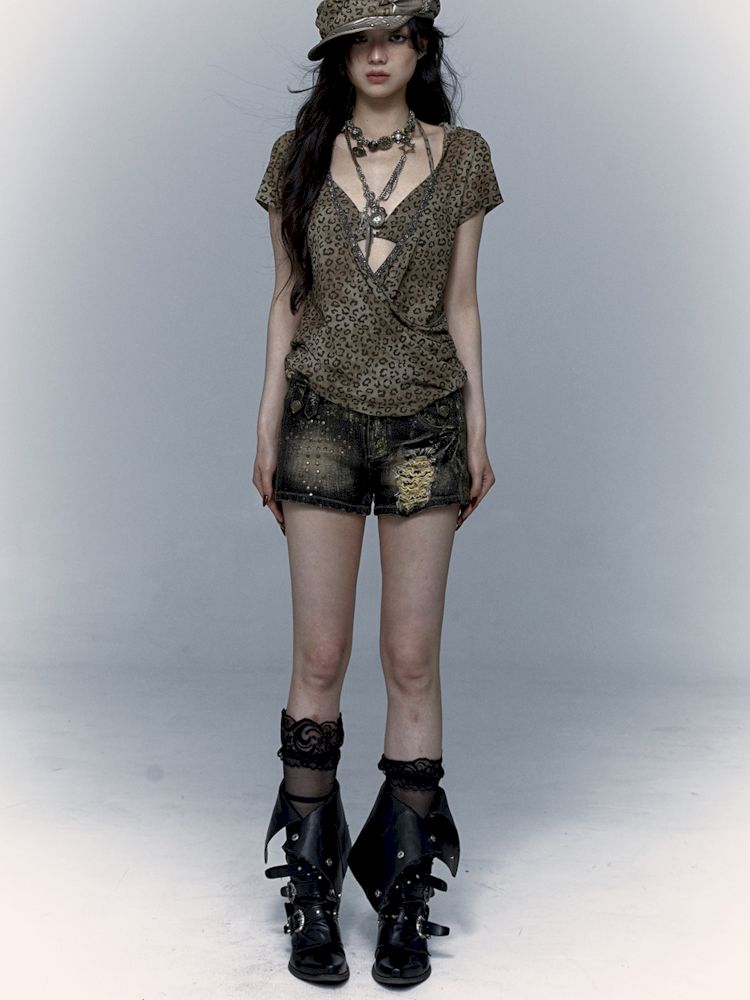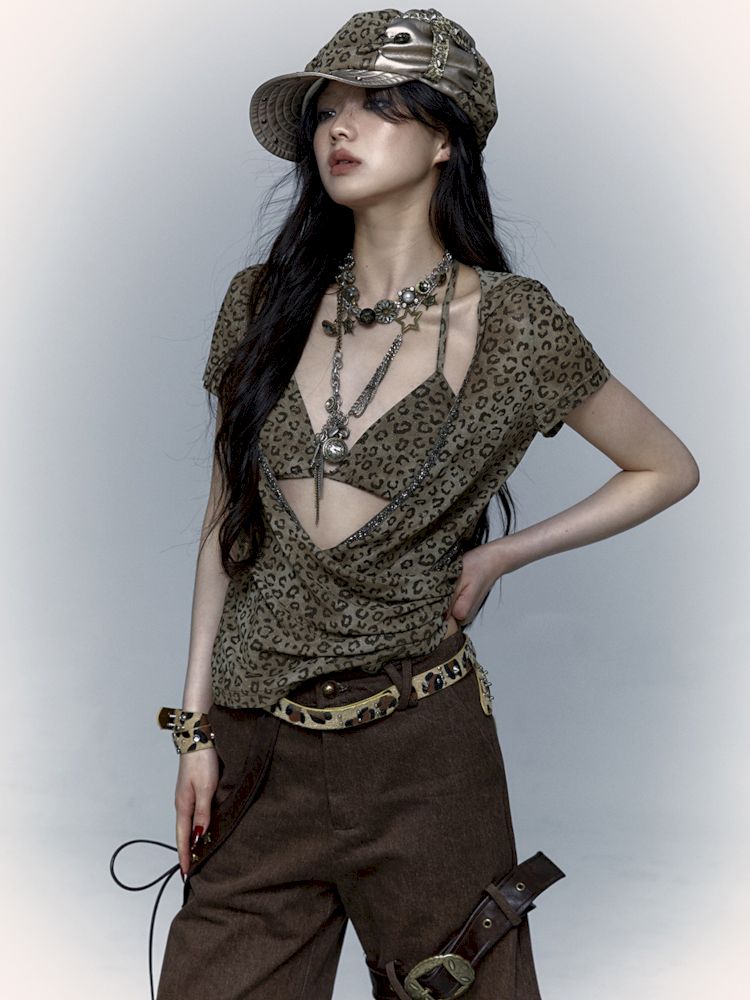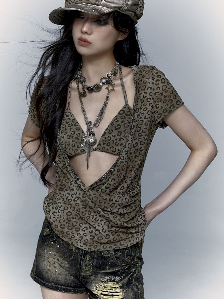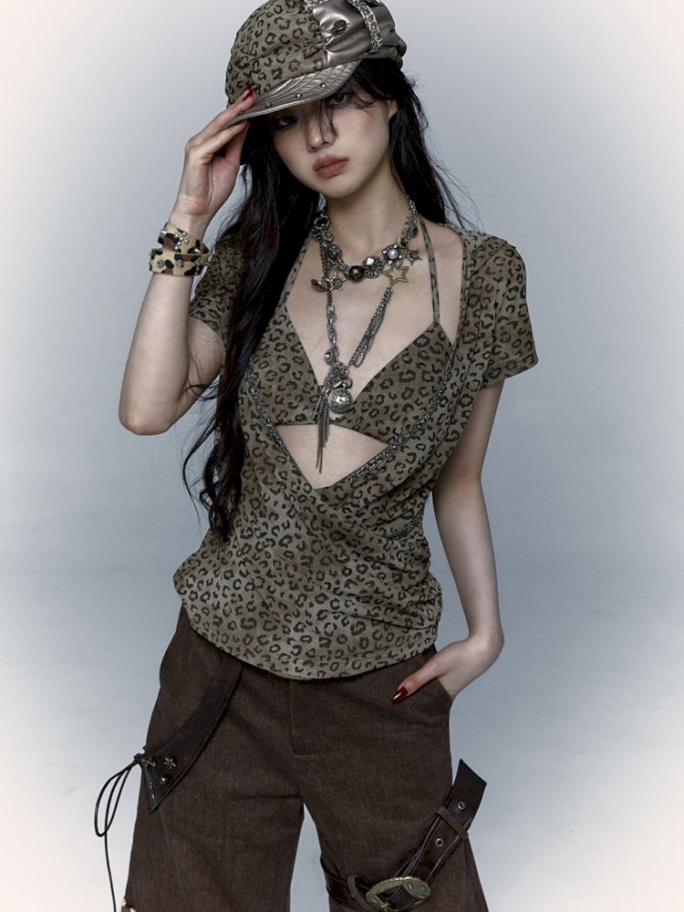 Metallic Leopard Mesh Hooded Hottie Short Sleeve T-Shirt【s0000008998】