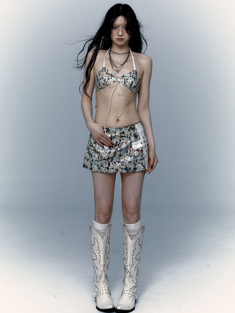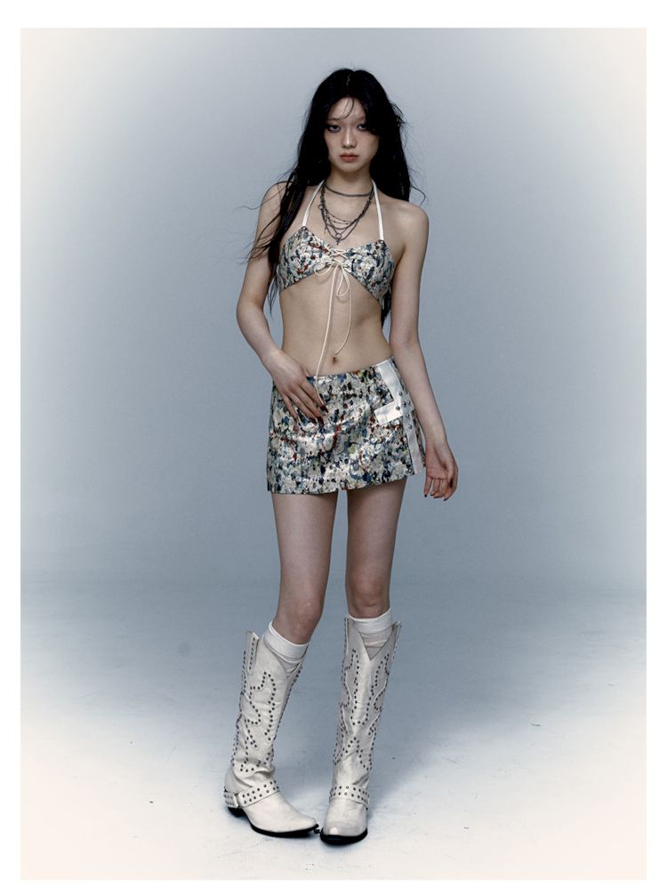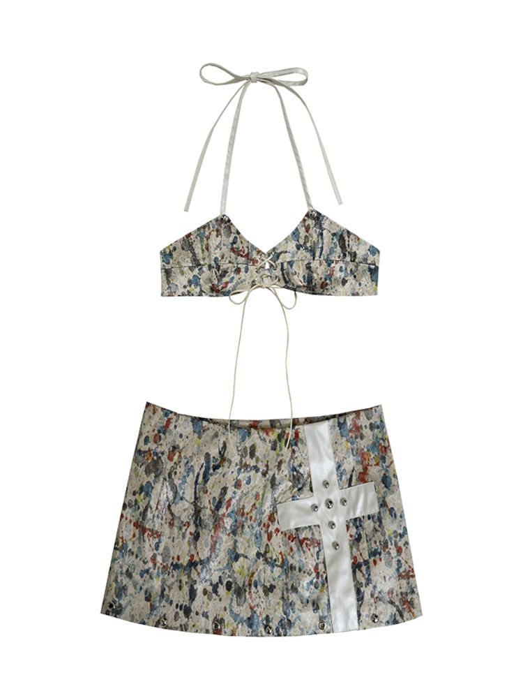 Summer Bikini Beach Holiday Patchwork Skirt Corset Set【s0000009004】