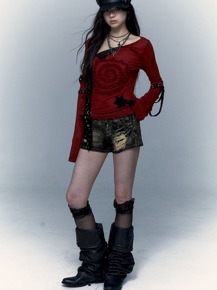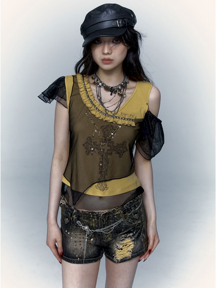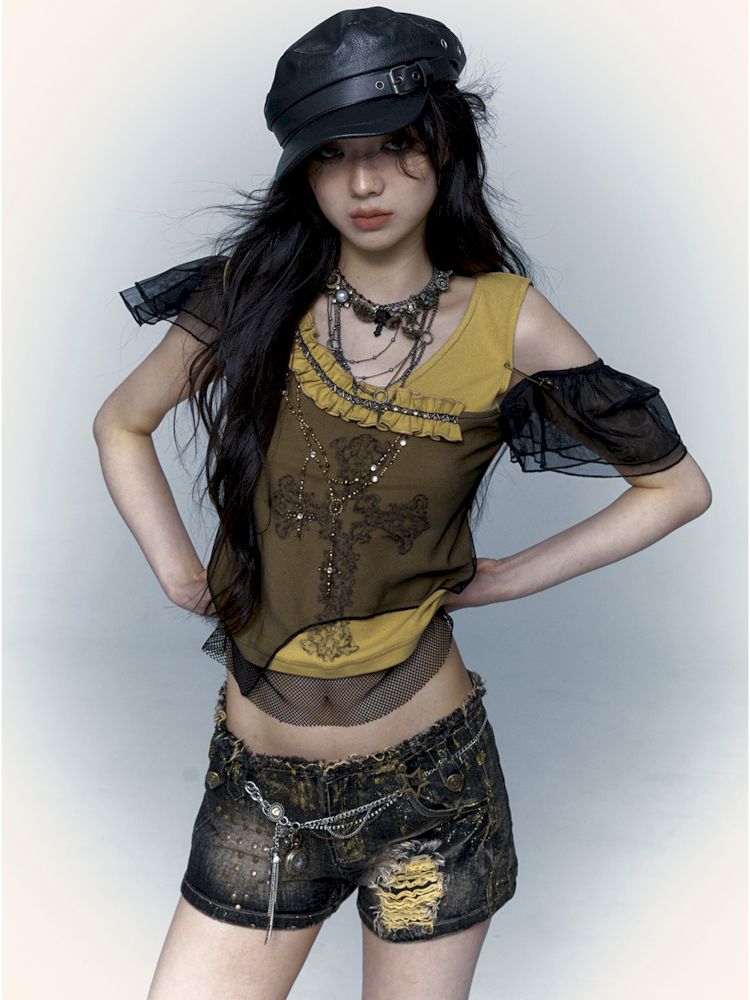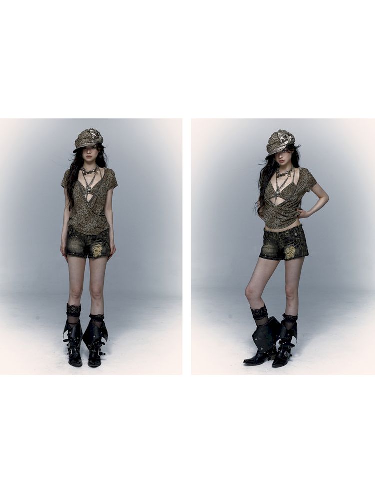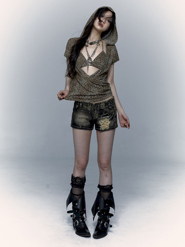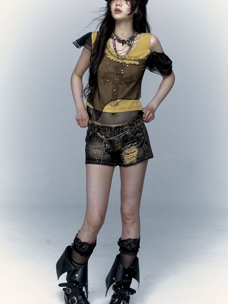 Washed Aged Jeans Black Super Shorts【s0000009008】