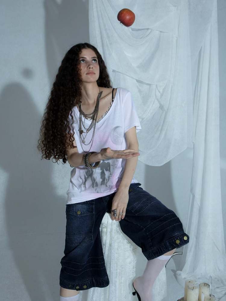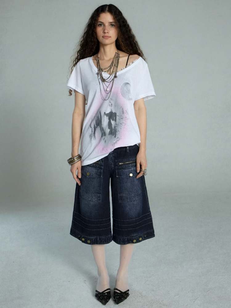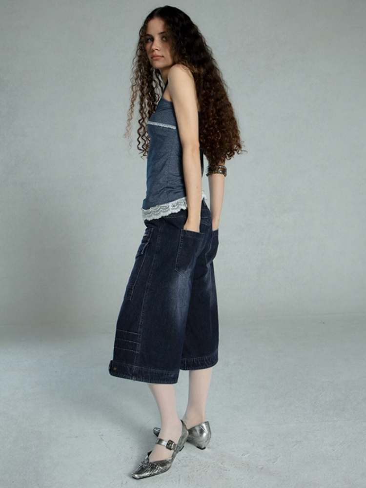 Damage Processing Big Pocket Cropped Denim Pants【s0000009014】