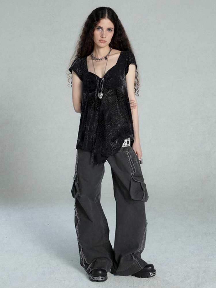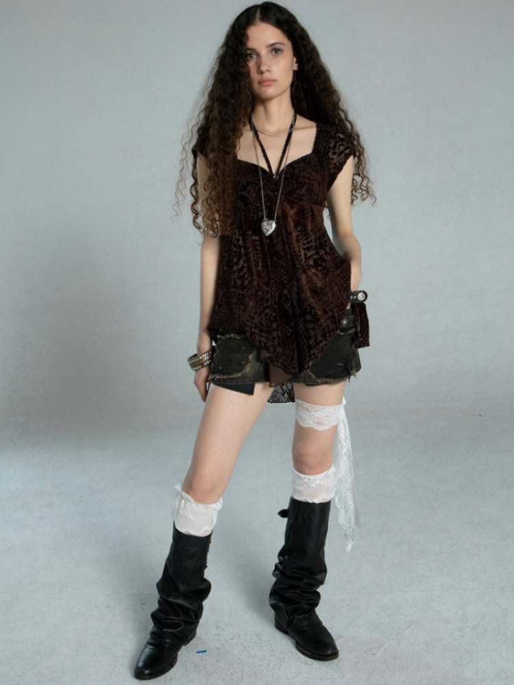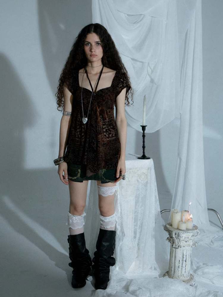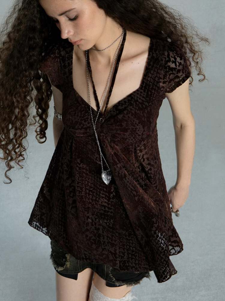 High Waist Square Collar Puff Sleeve Tops【s0000009018】