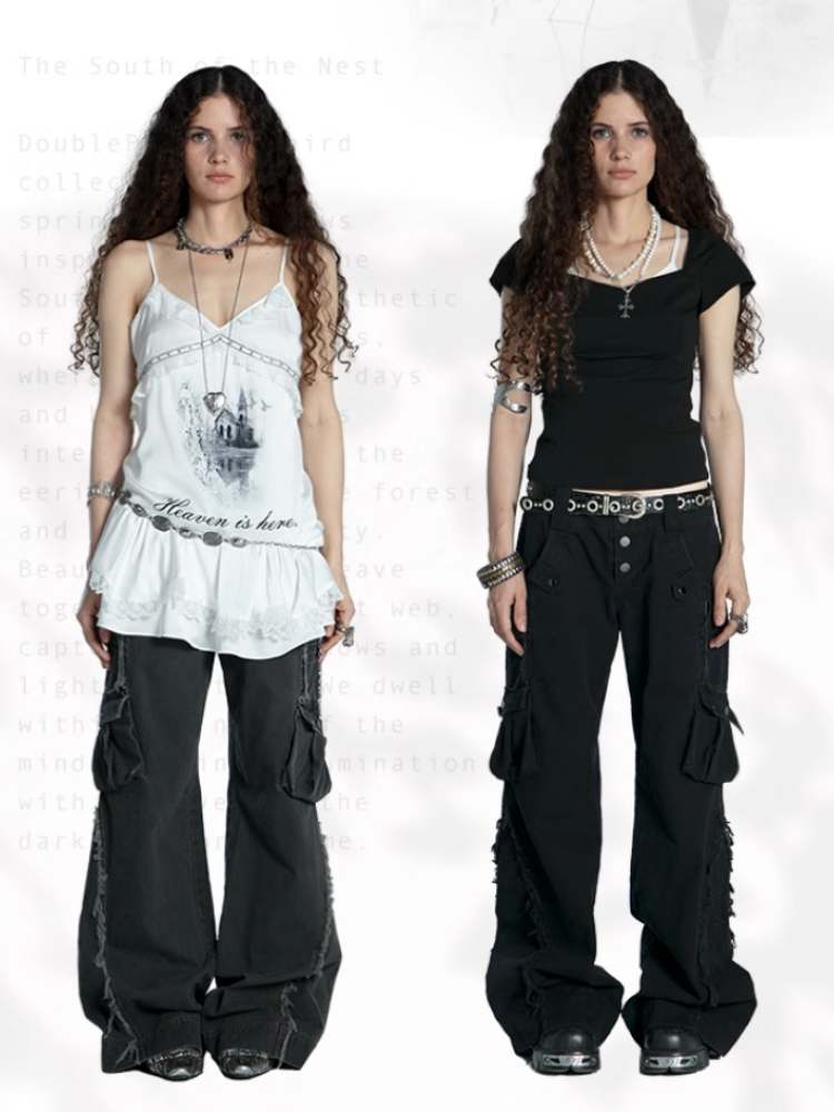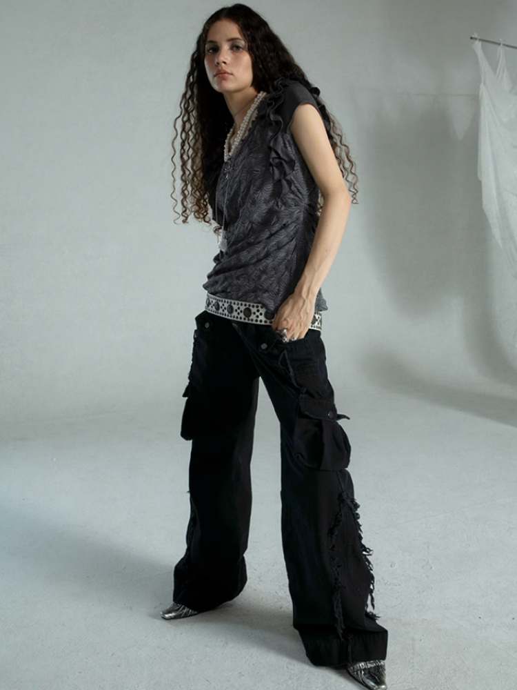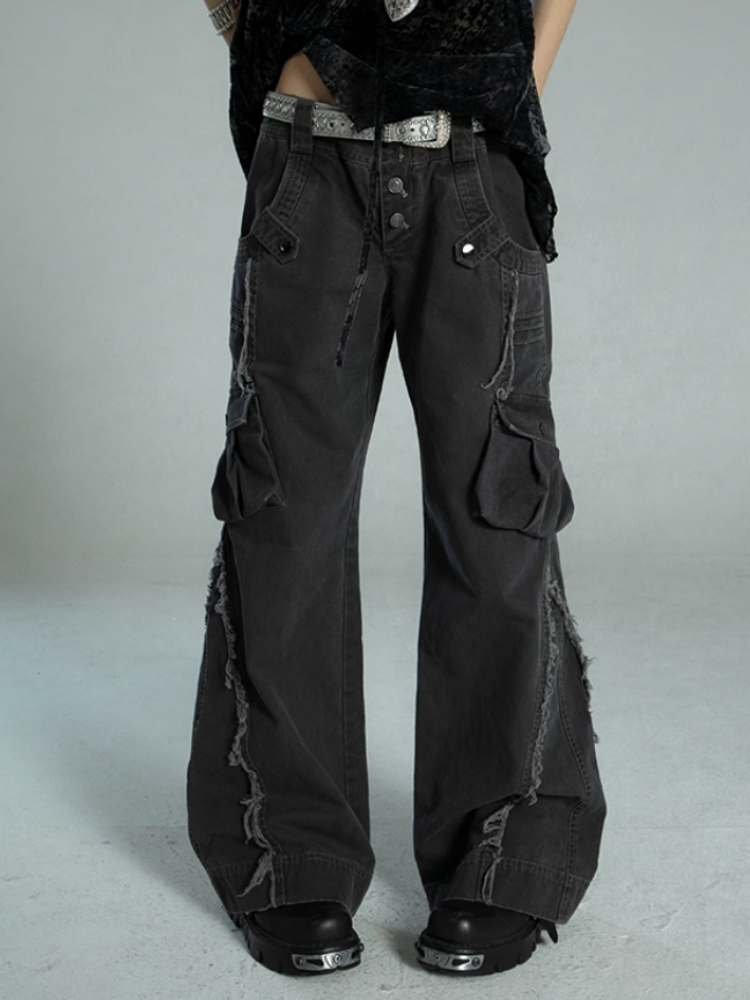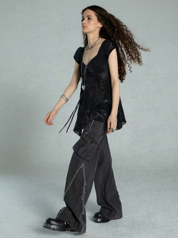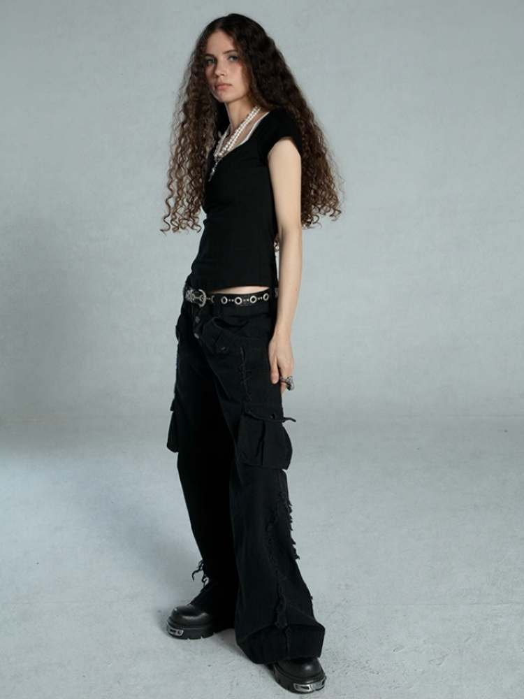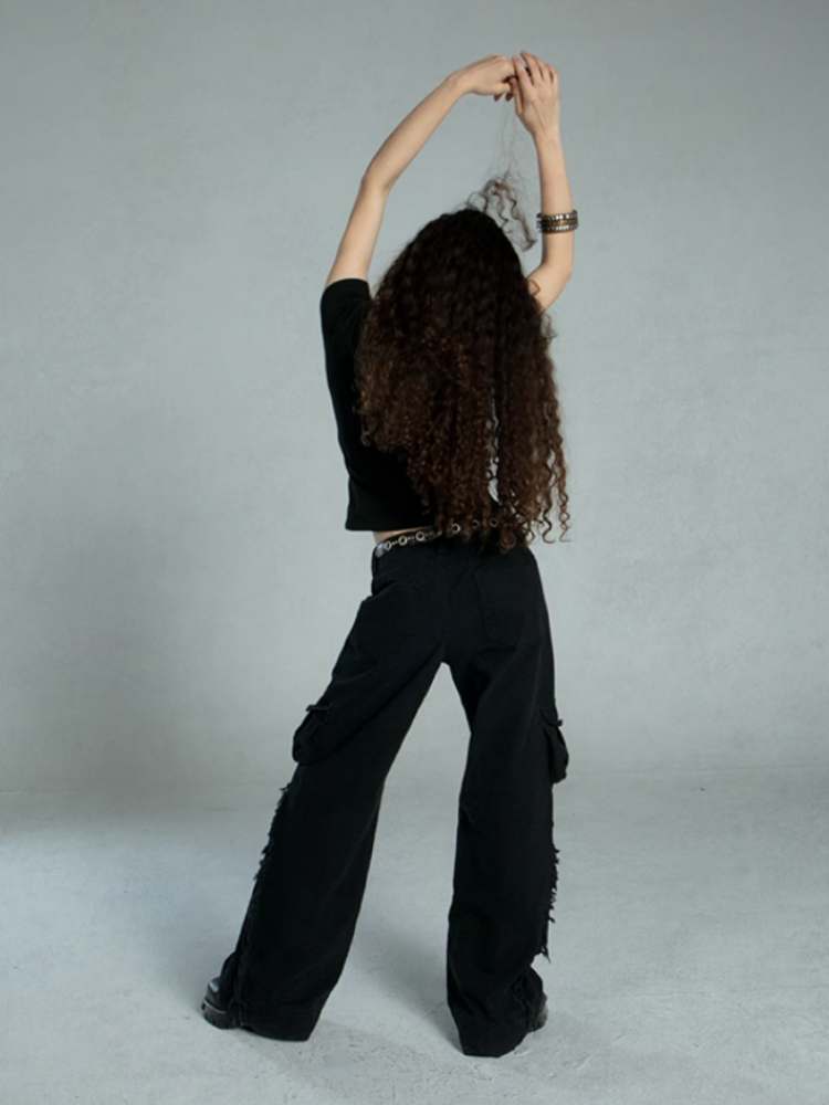 Straight Loose Washed Distressed Trumpet Mop Pants【s0000009022】
