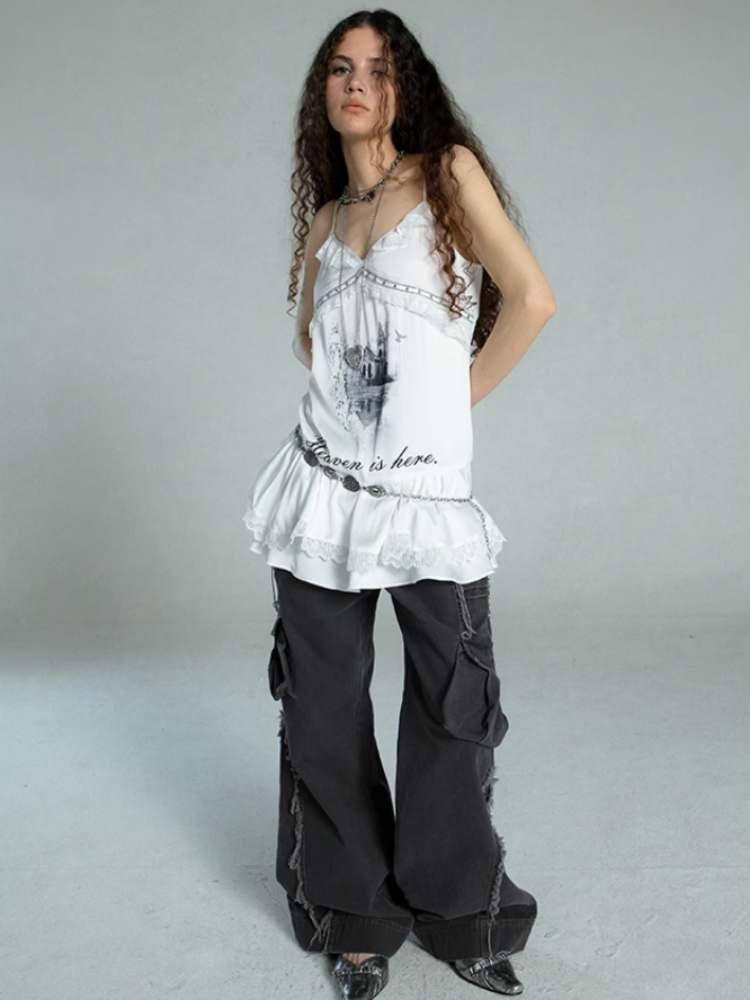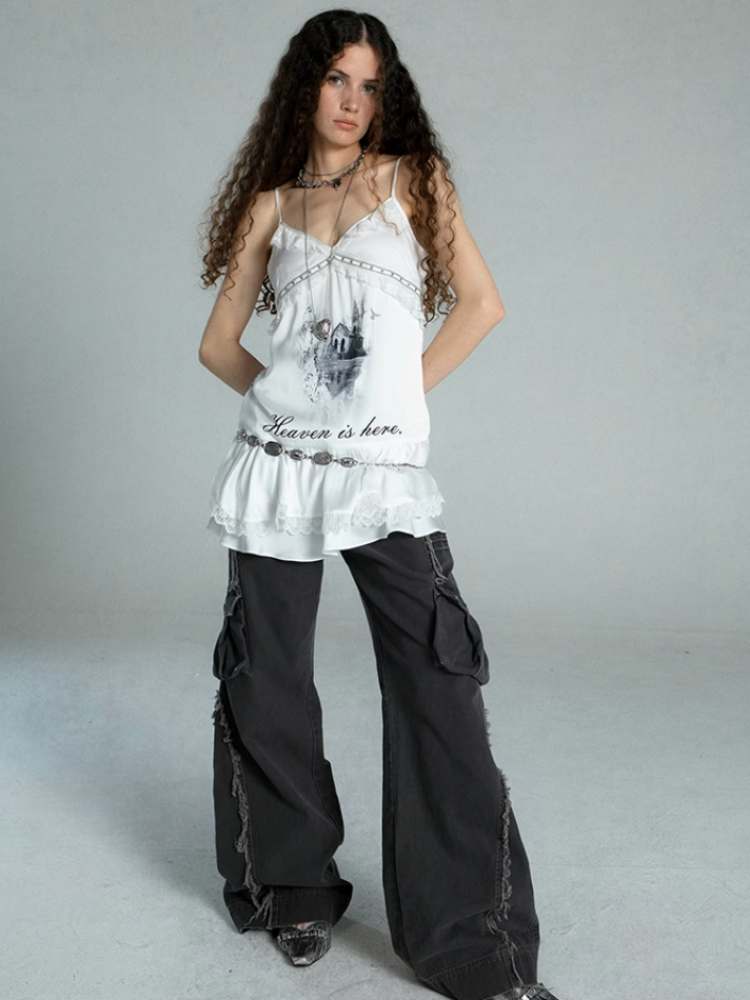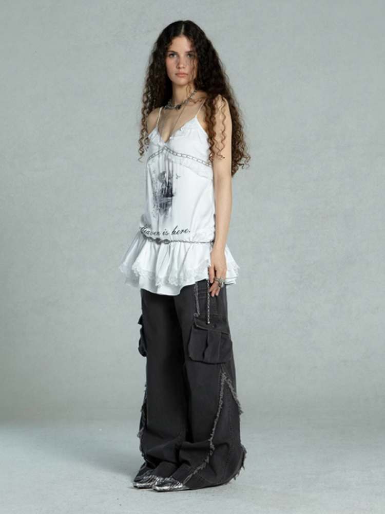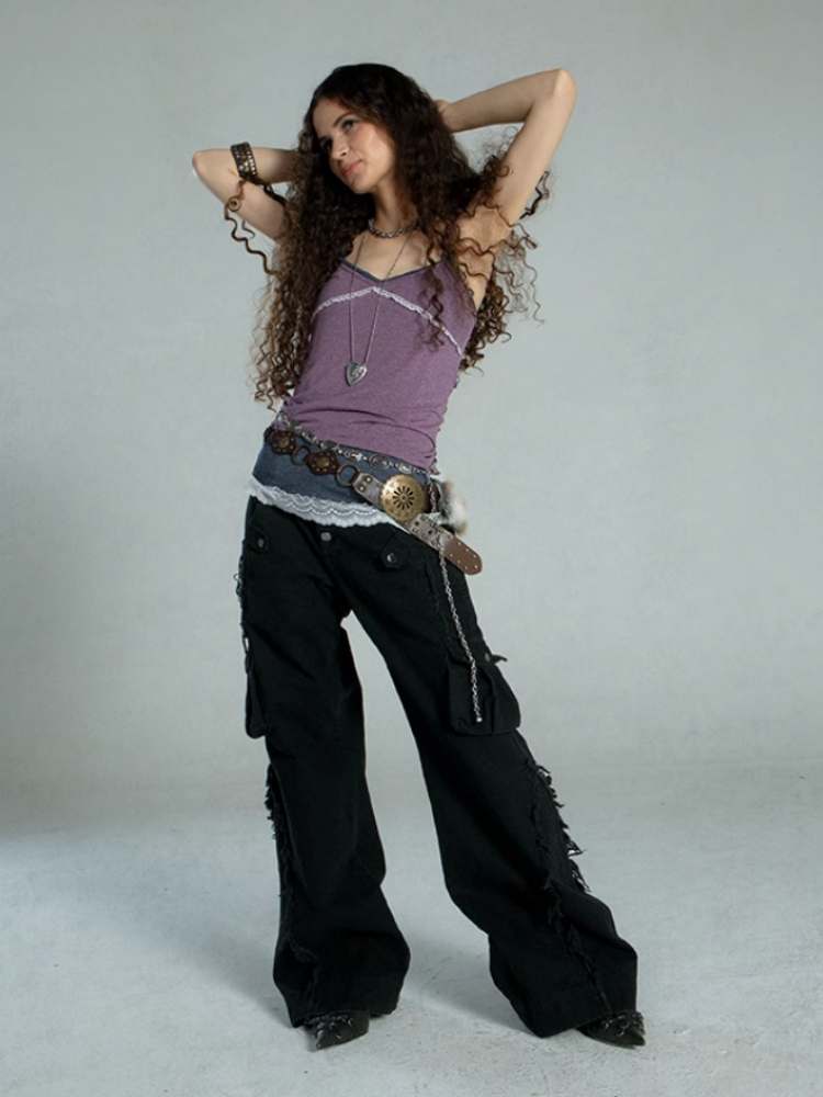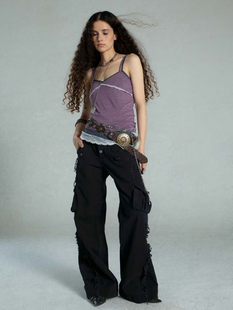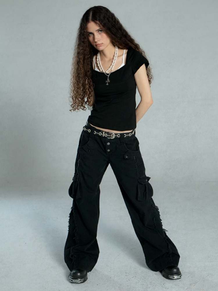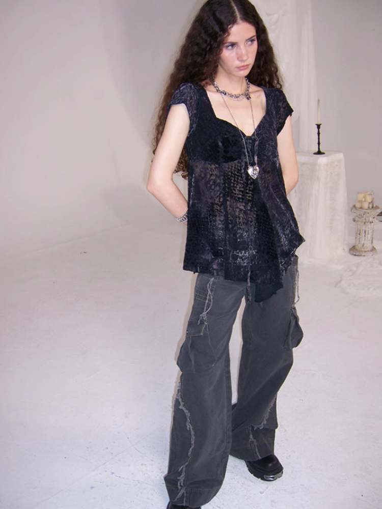 Straight Loose Washed Distressed Trumpet Mop Pants【s0000009022】