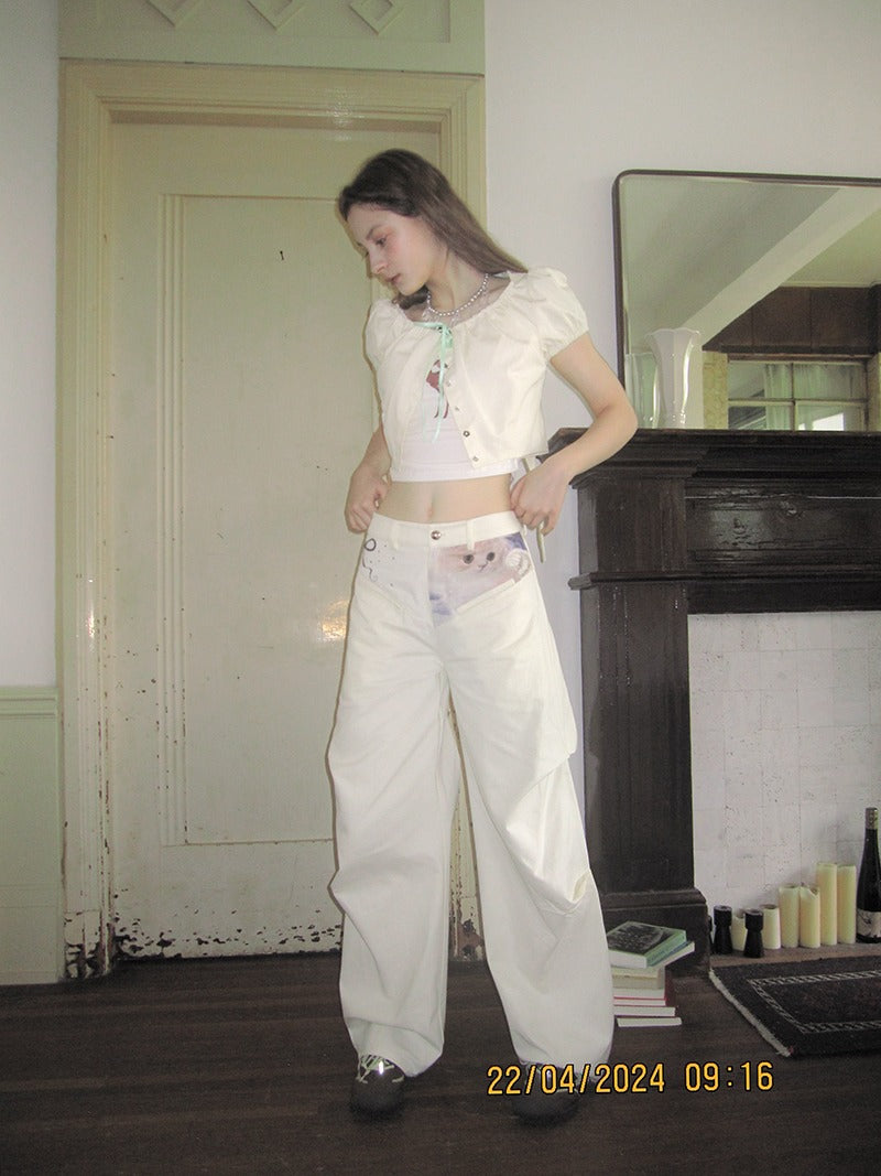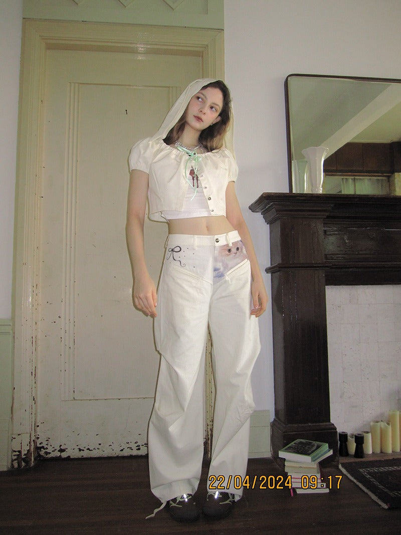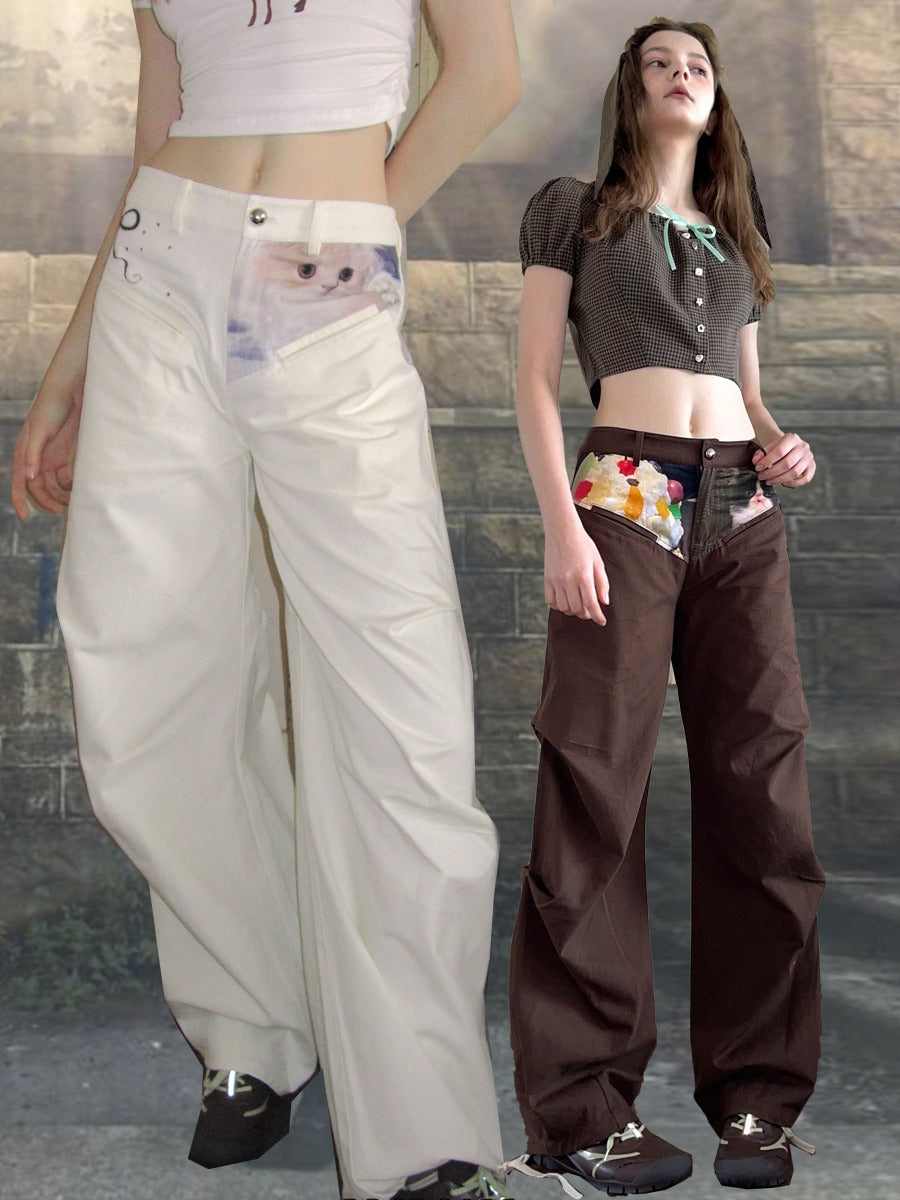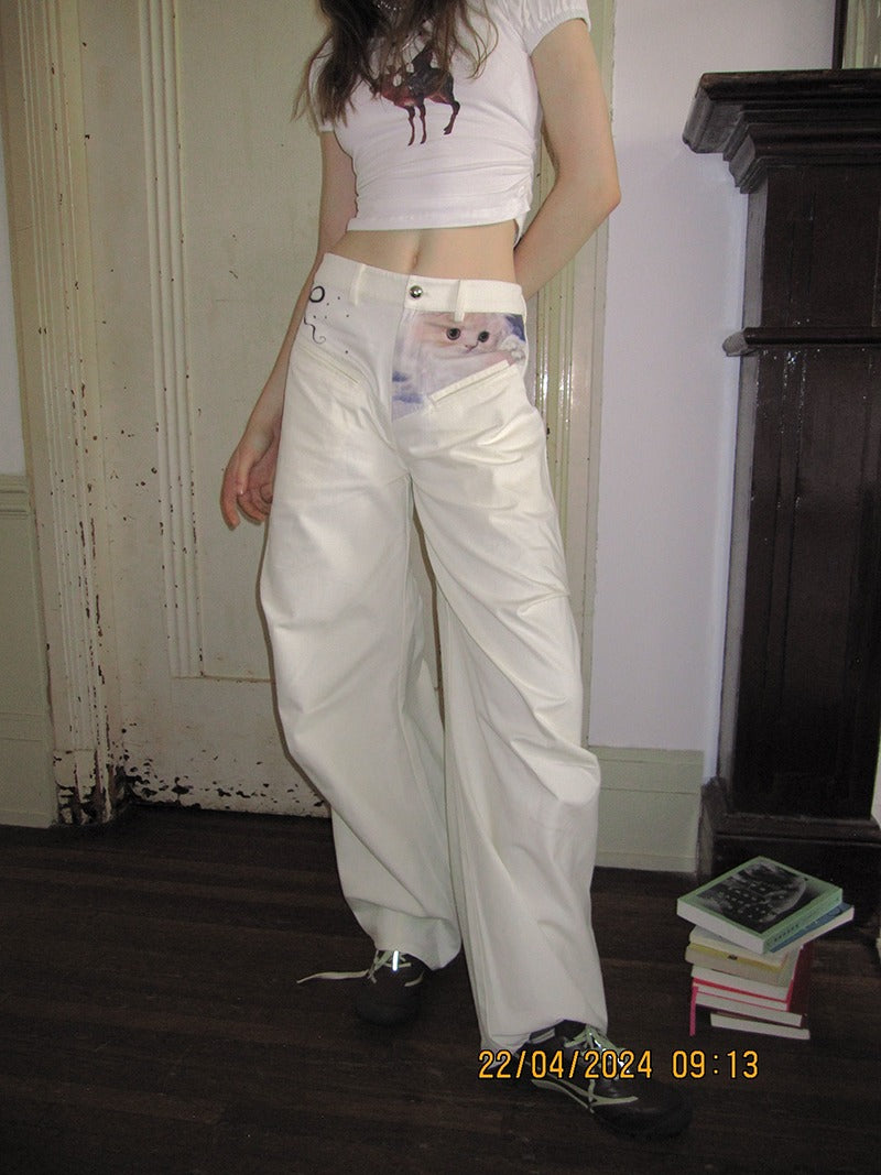 Cute Cat Print Low Waist Casual Wide Leg Pants【s0000009030】