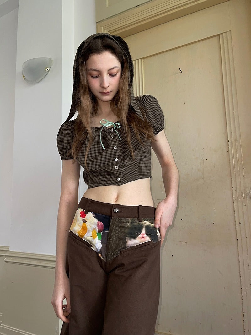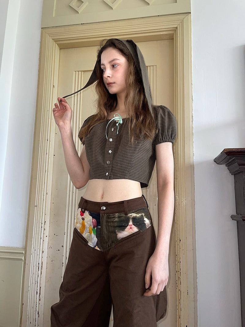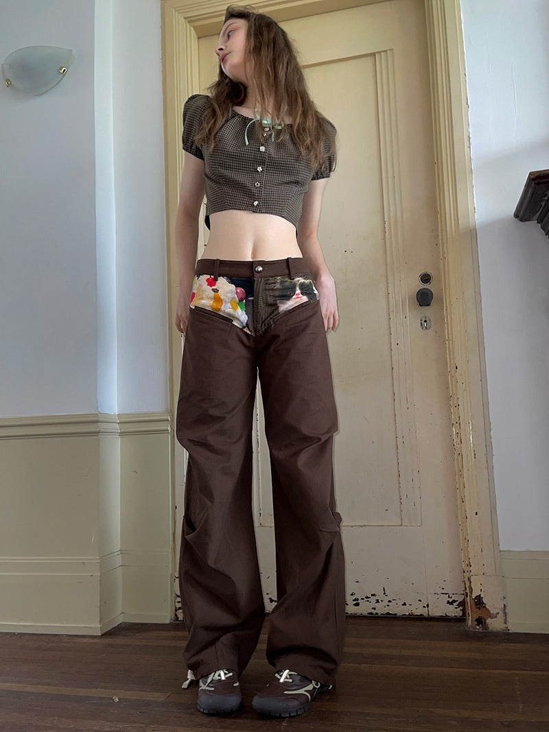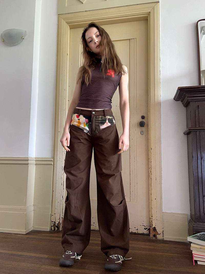Cute Cat Print Low Waist Casual Wide Leg Pants【s0000009030】