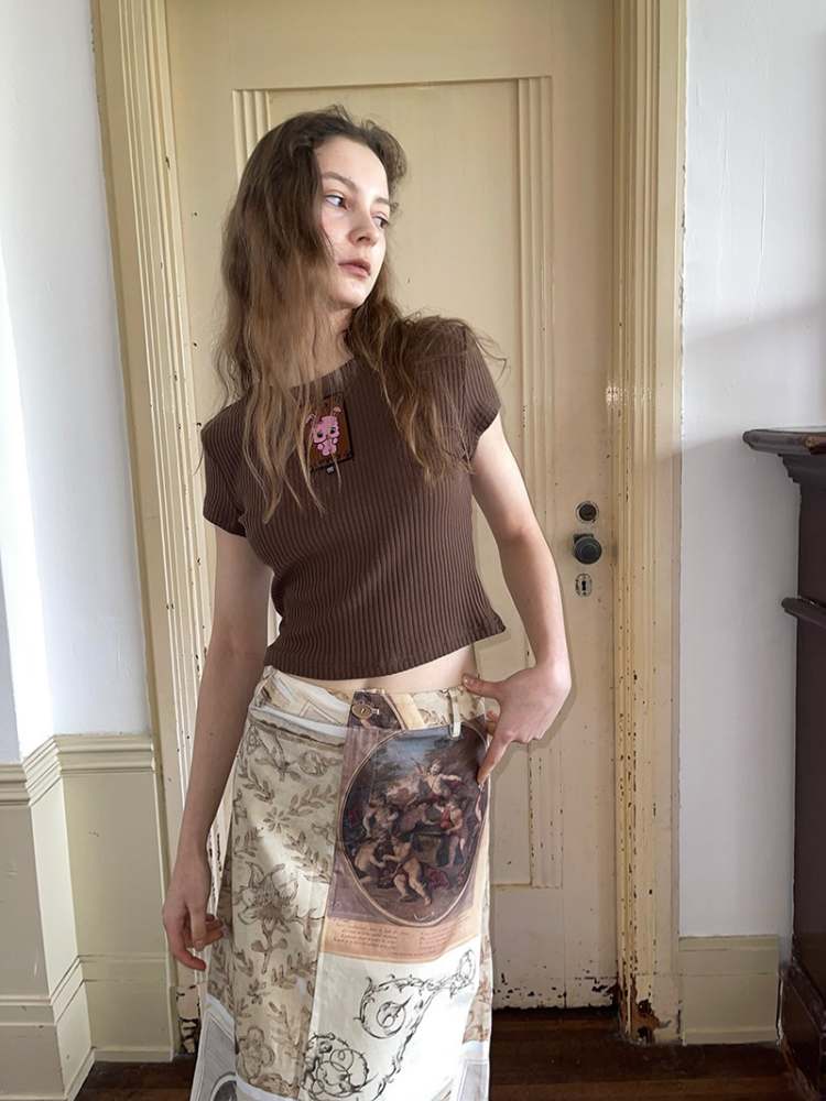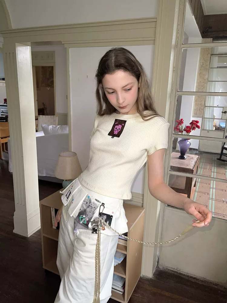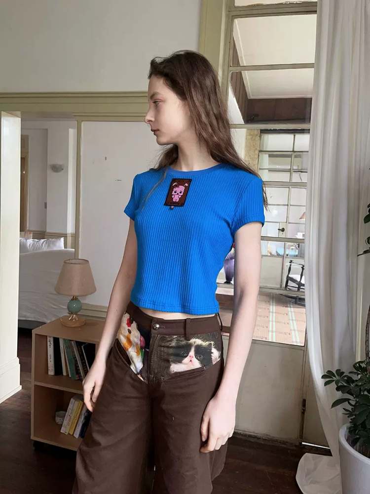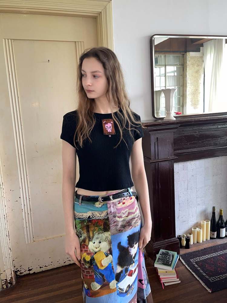 Rabbit Jacquard Cropped T-Shirt 【s0000009031】