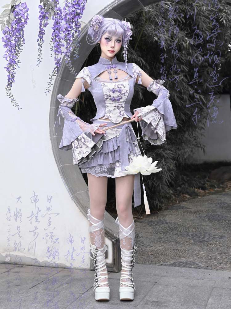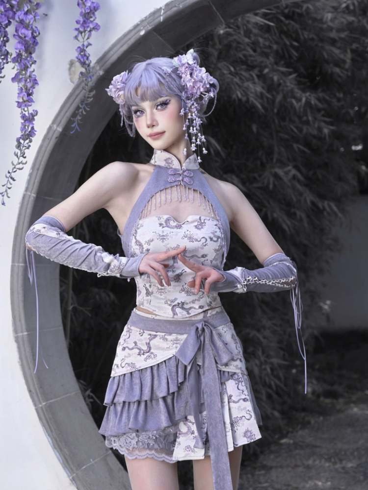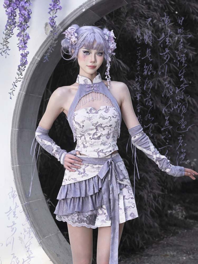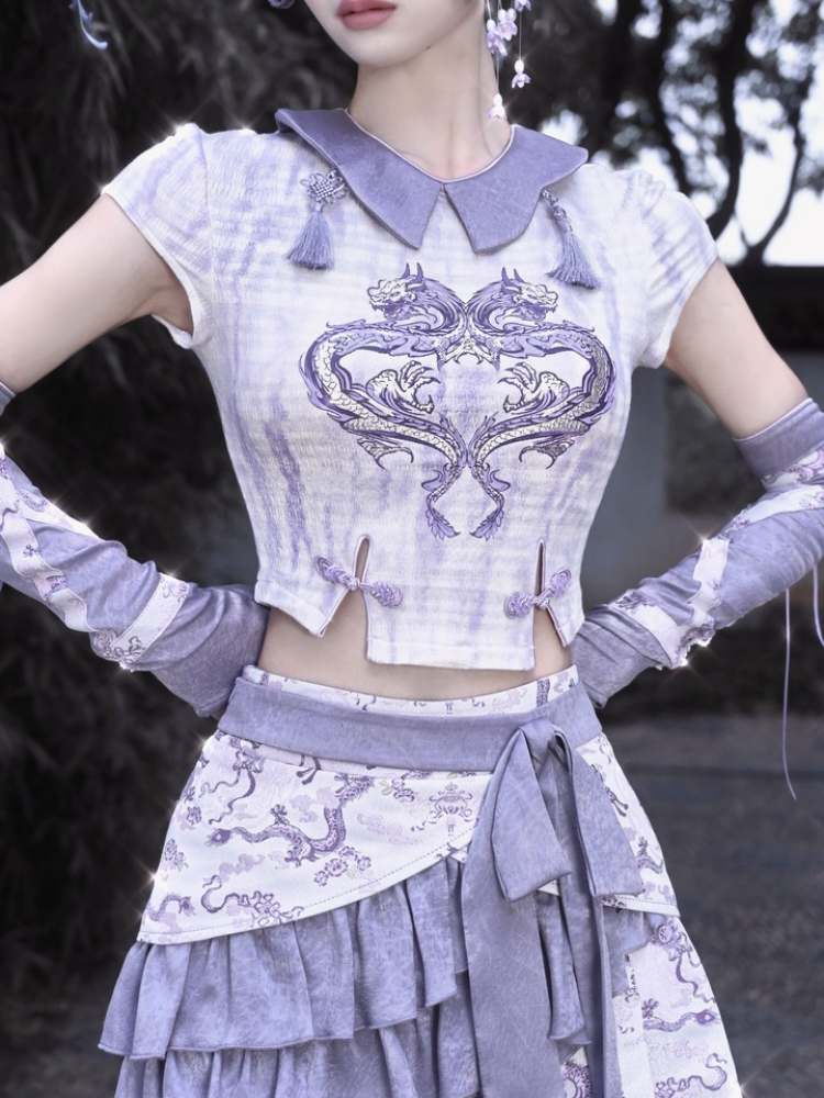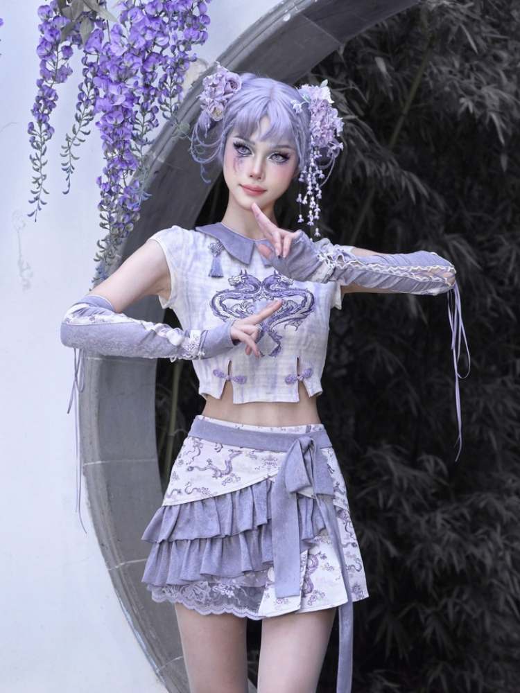 Dragon Pattern Chinese Style Layered Pleated Mini Skirt【s0000009036】