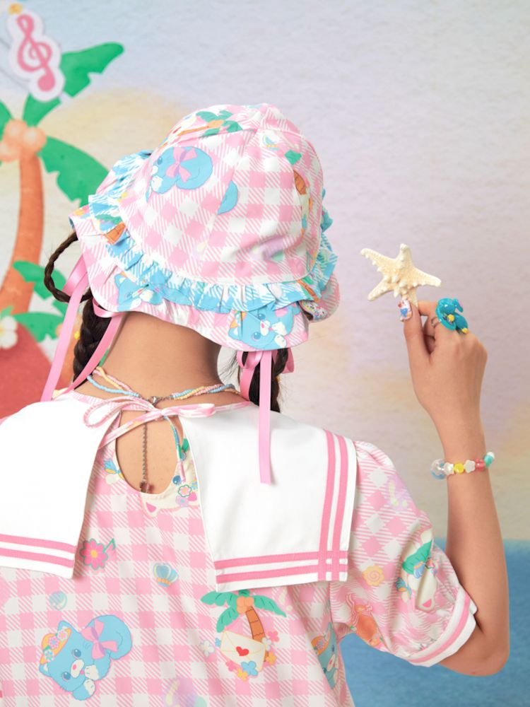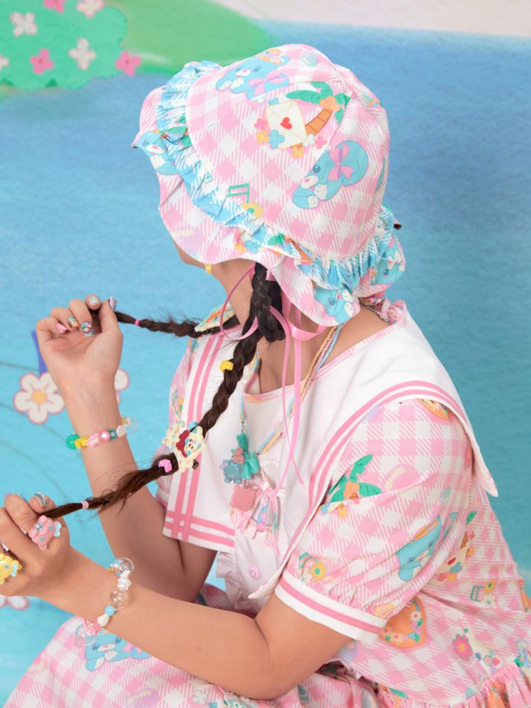 Plaid Cat Print Reversible Shade Fisherman's Hat【s0000009064】
