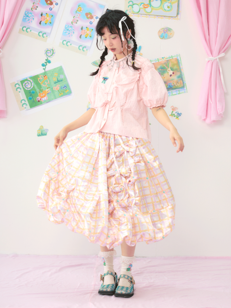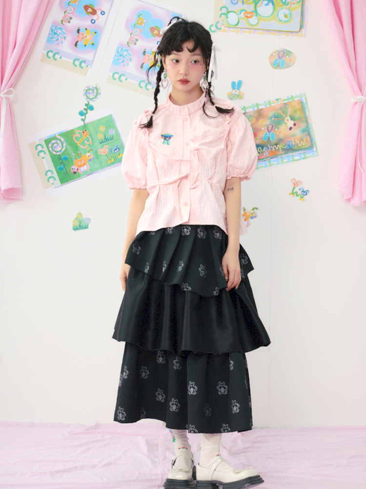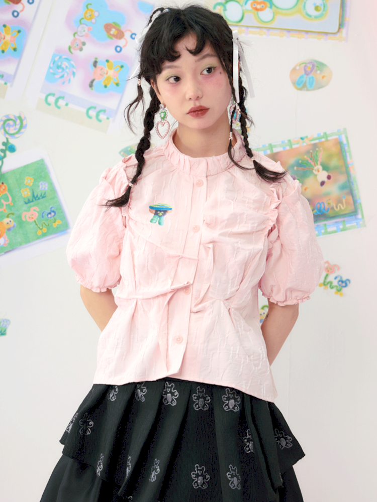 Colourful Illustration Cute Pink Short Sleeve Shirt【s0000009079】