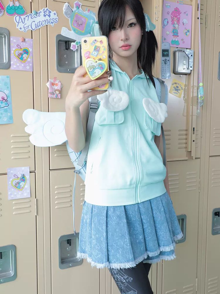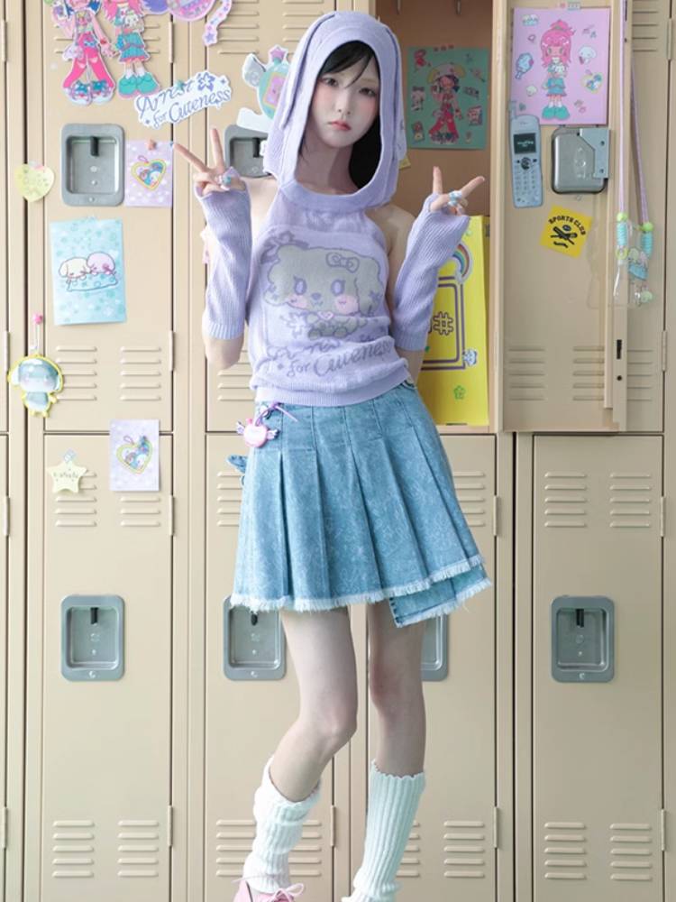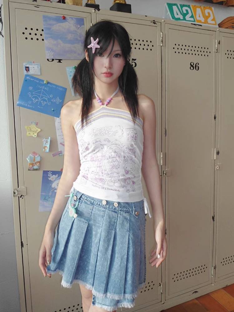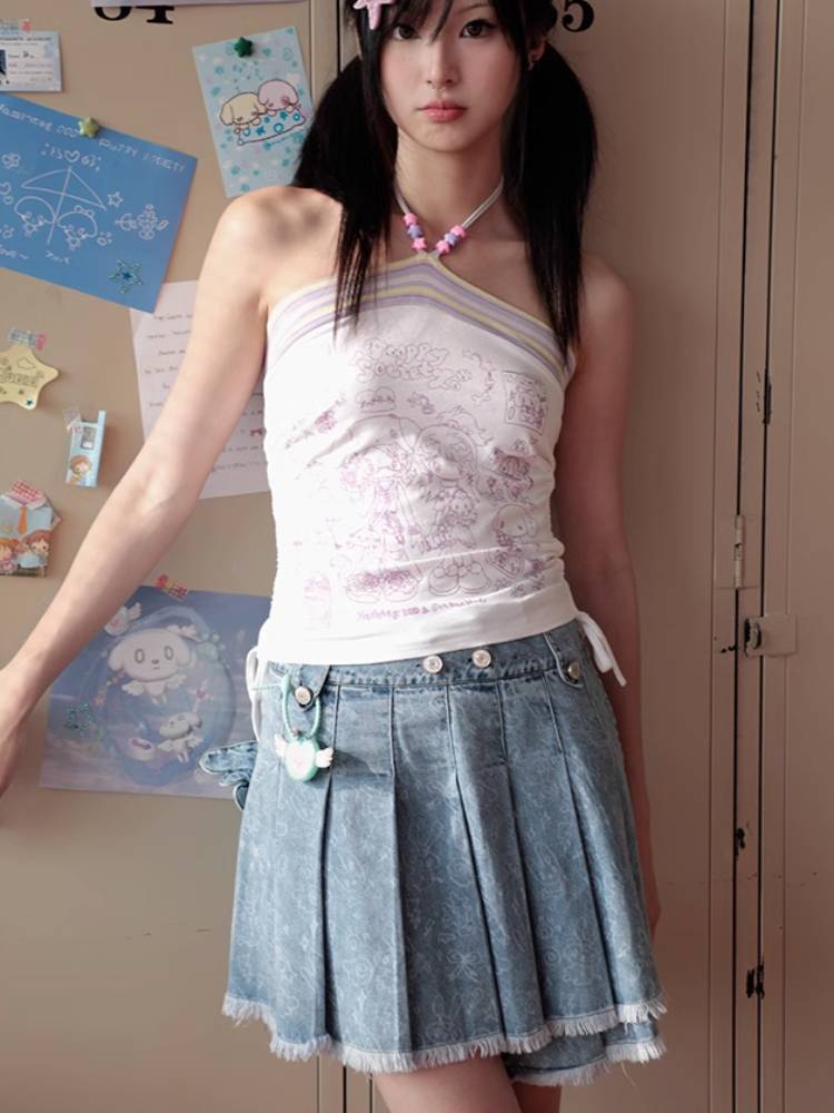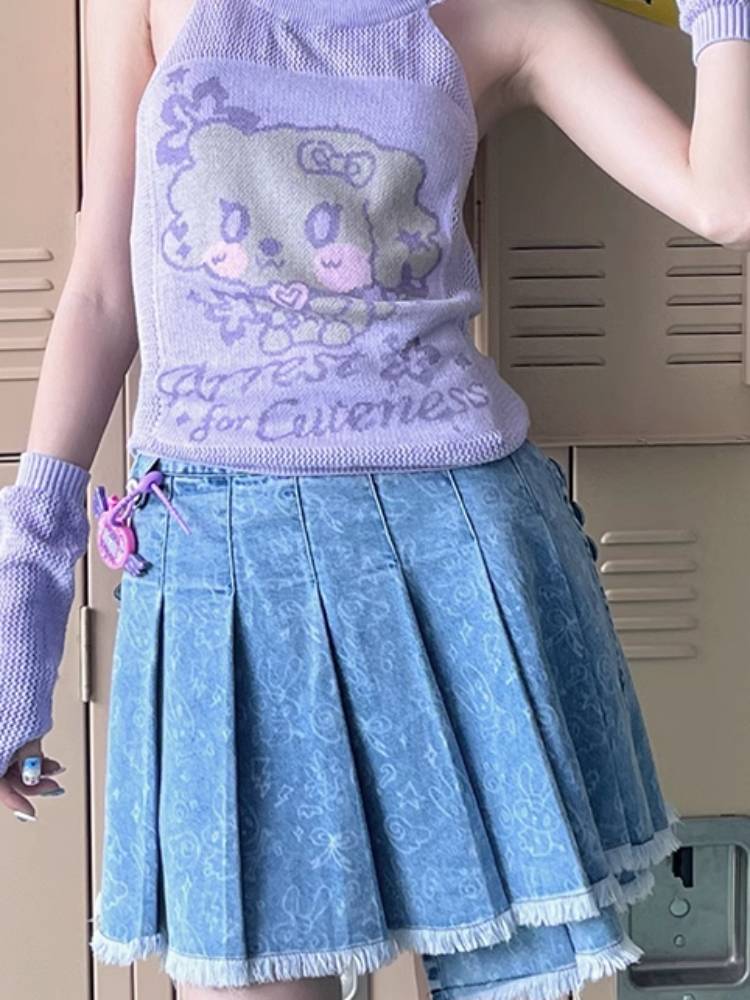 Pleated short denim skirt【s0000009106】